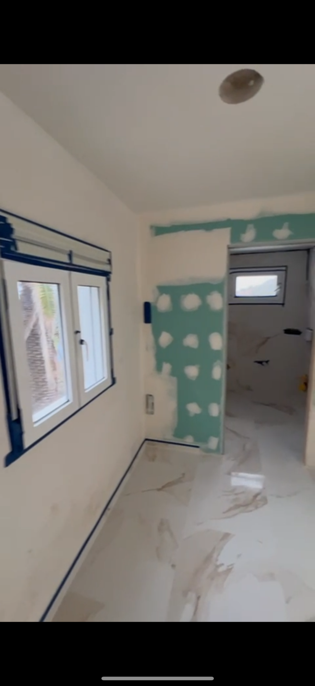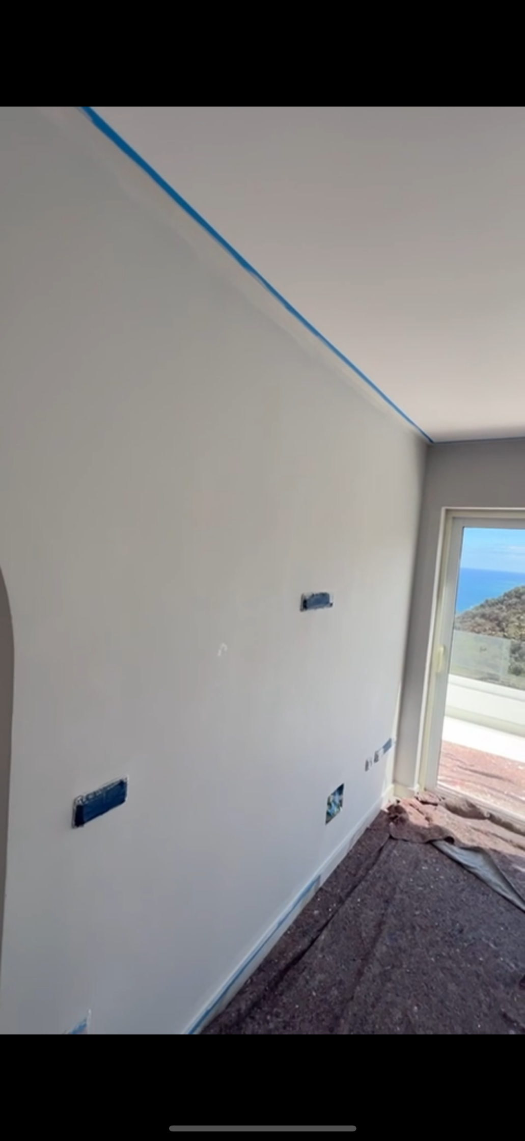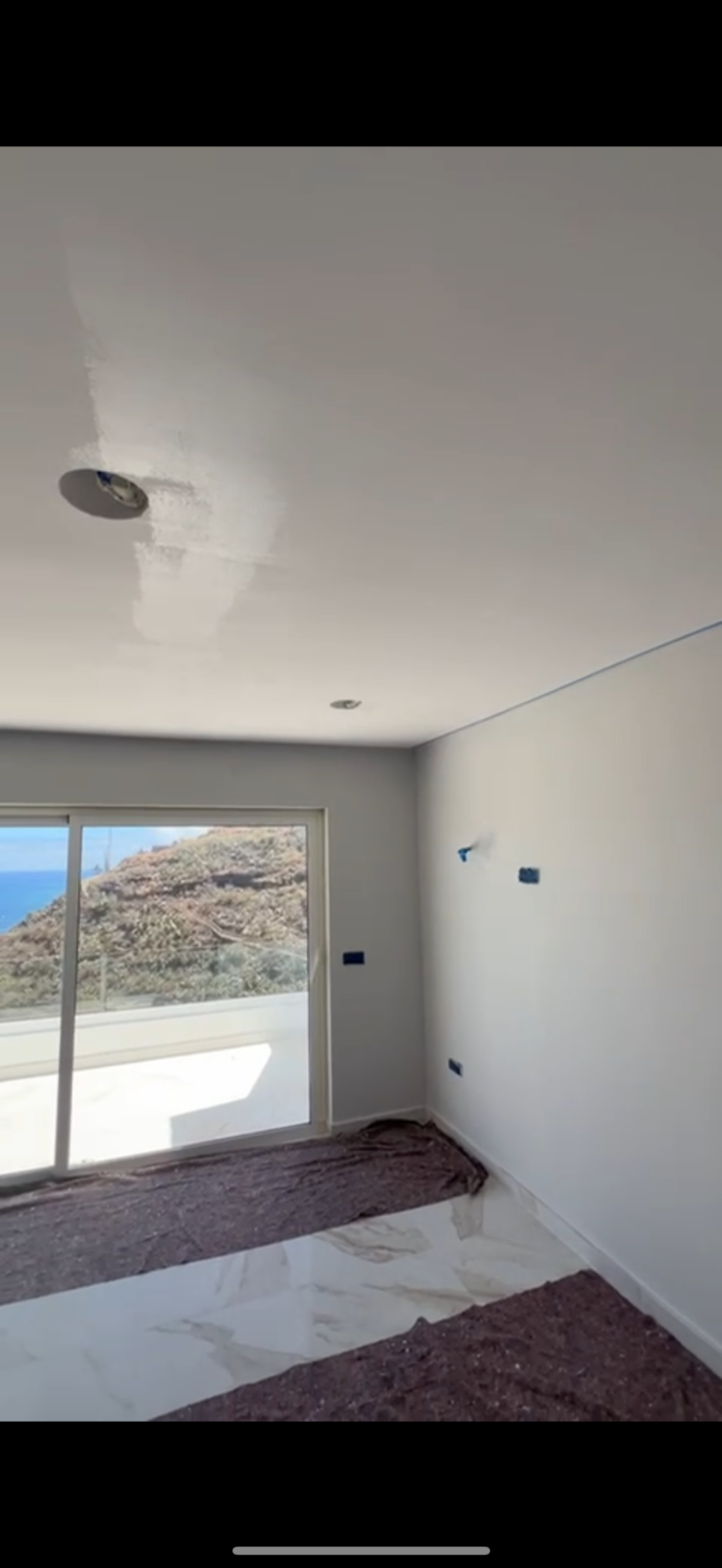 Pintado de interior de vivienda de yeso nuevo, lijado del soporte, aplicado de una capa de Procofix y dos capas de blanco en techos y dos capas de color sideral S-500