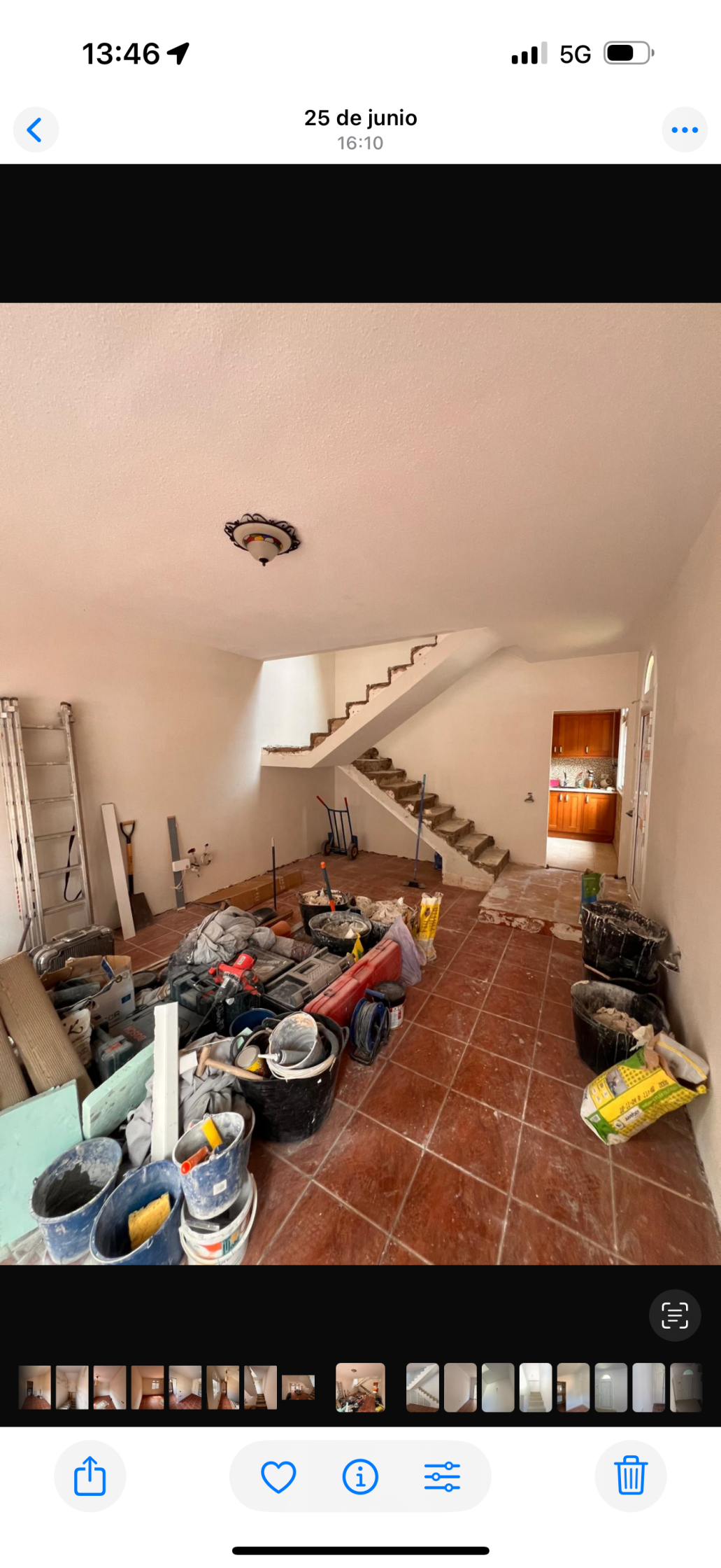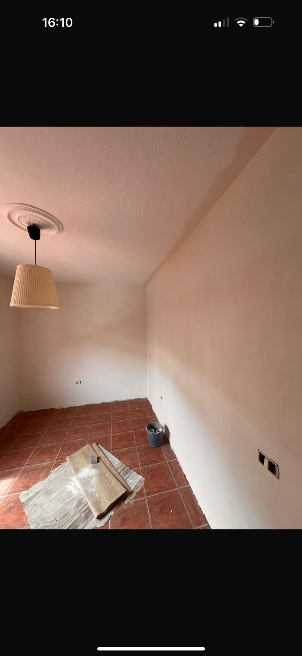 Pintado de vivienda de yeso nuevo. Lijado del soporte, retoque de gotelé en techos, aplicación de una capa de procofix y dos capas de pintura blanca sideral S-500.