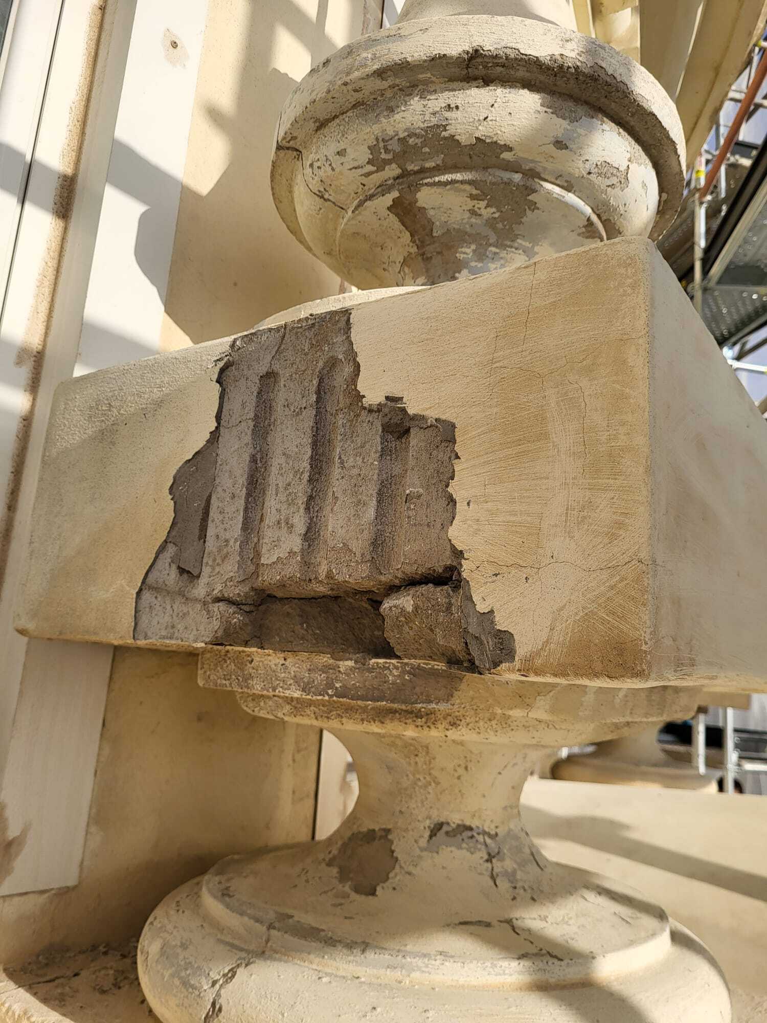 Se han tenido que reconstruir balcones, molduras, y demás elementos ornamentales hasta conseguir devolverle su aspecto imponente e histórico, tal y como se merece.
