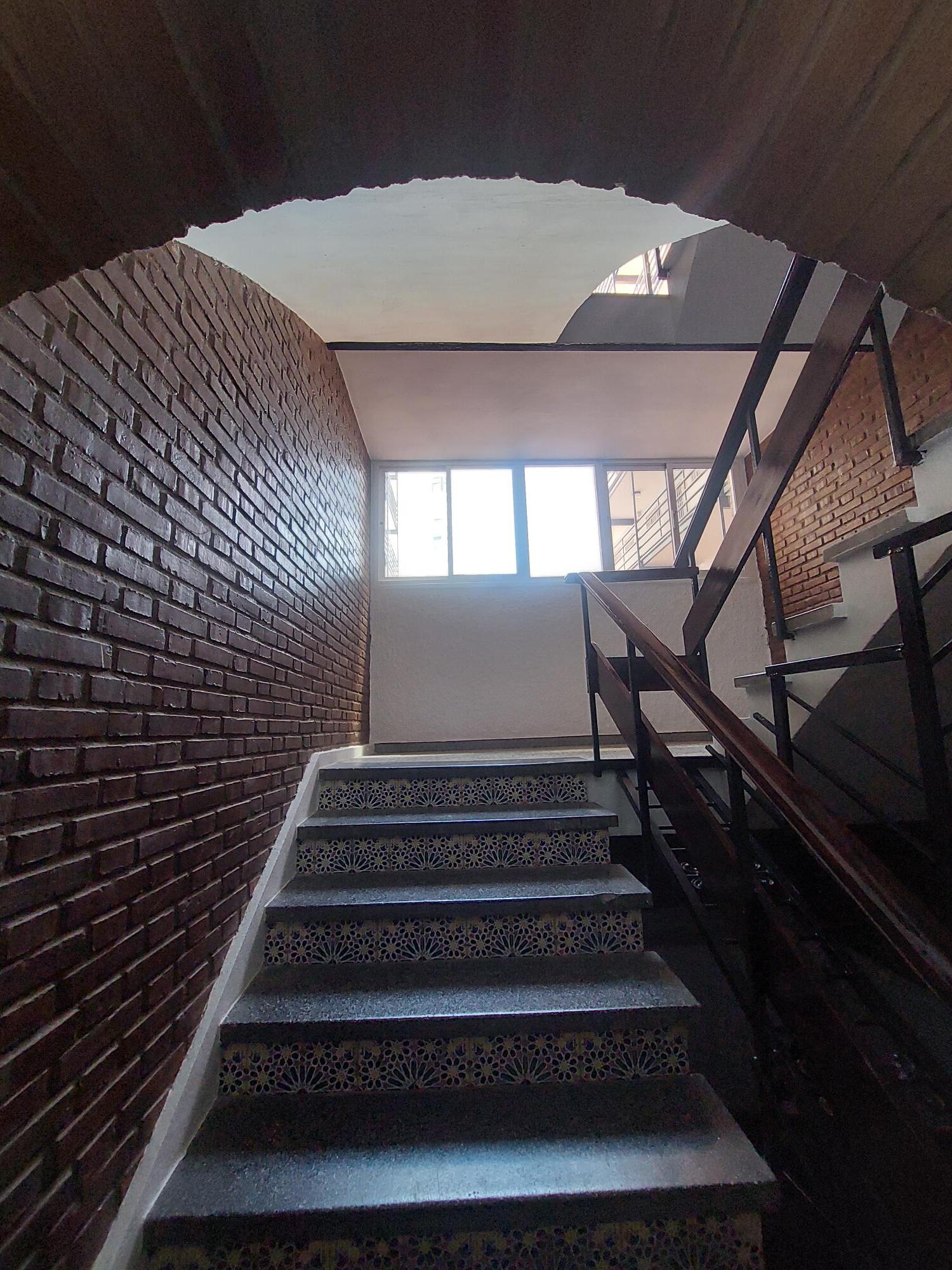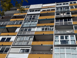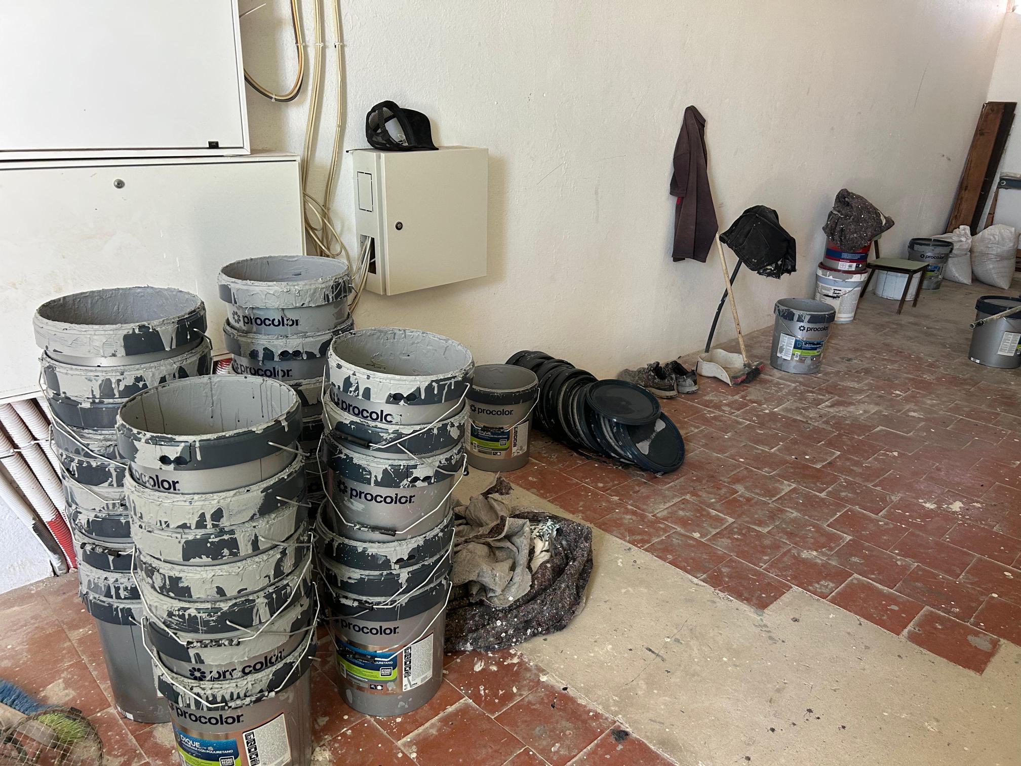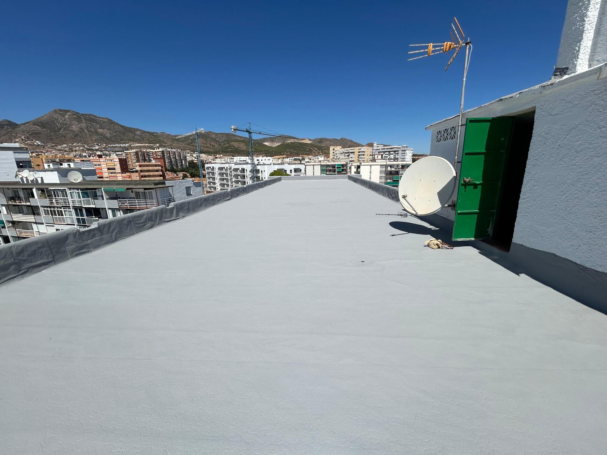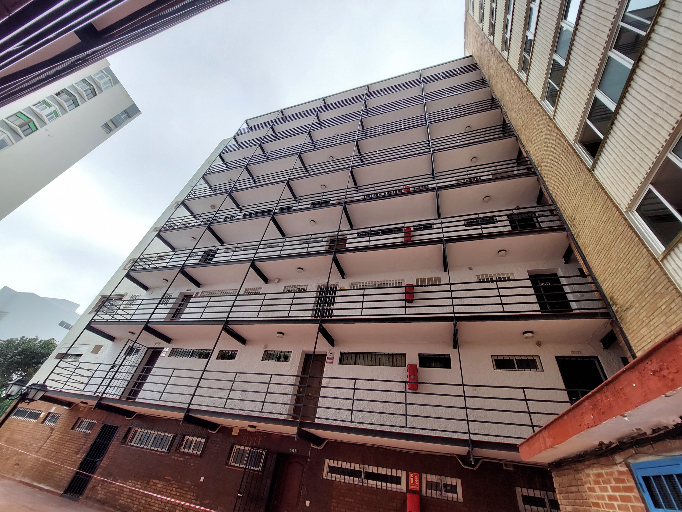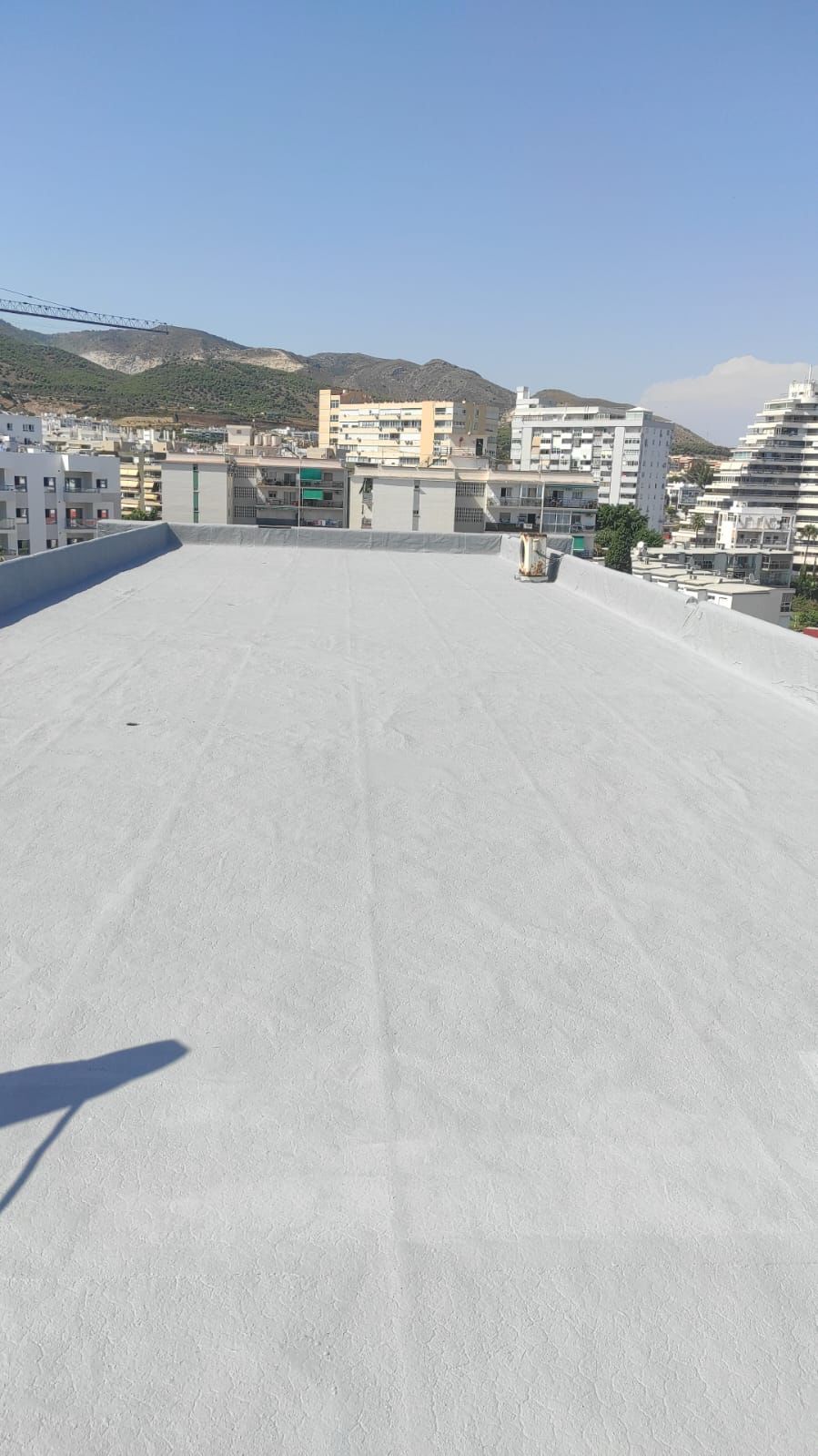 Mediante Prescripción de PROCOLOR y la DF, se realiza esta rehabilitación, Integral de Paramentos exteriores Hidrolimpieza, saneado de Fisuras, con masillas fibradas, pasivación de Forjados, recuperación de volúmenes con Morteros fibrados, PROCOFIX, y 2 manos de PROCOTEX LISO B.MED, en techos de hormigón, ACRILFIX y 2 Manos de PROCOTEX EXTRALISO B.MED, Ladrillo visto, DIQUE FLUIDO HIDROFUGANTE a saturación, elementos férricos con PROCOFER EXP BR NEGRO, zonas comunes interior COMODIN y en cubiertas, Sistema DIQUE MEMBRANA POL; BLANCO.