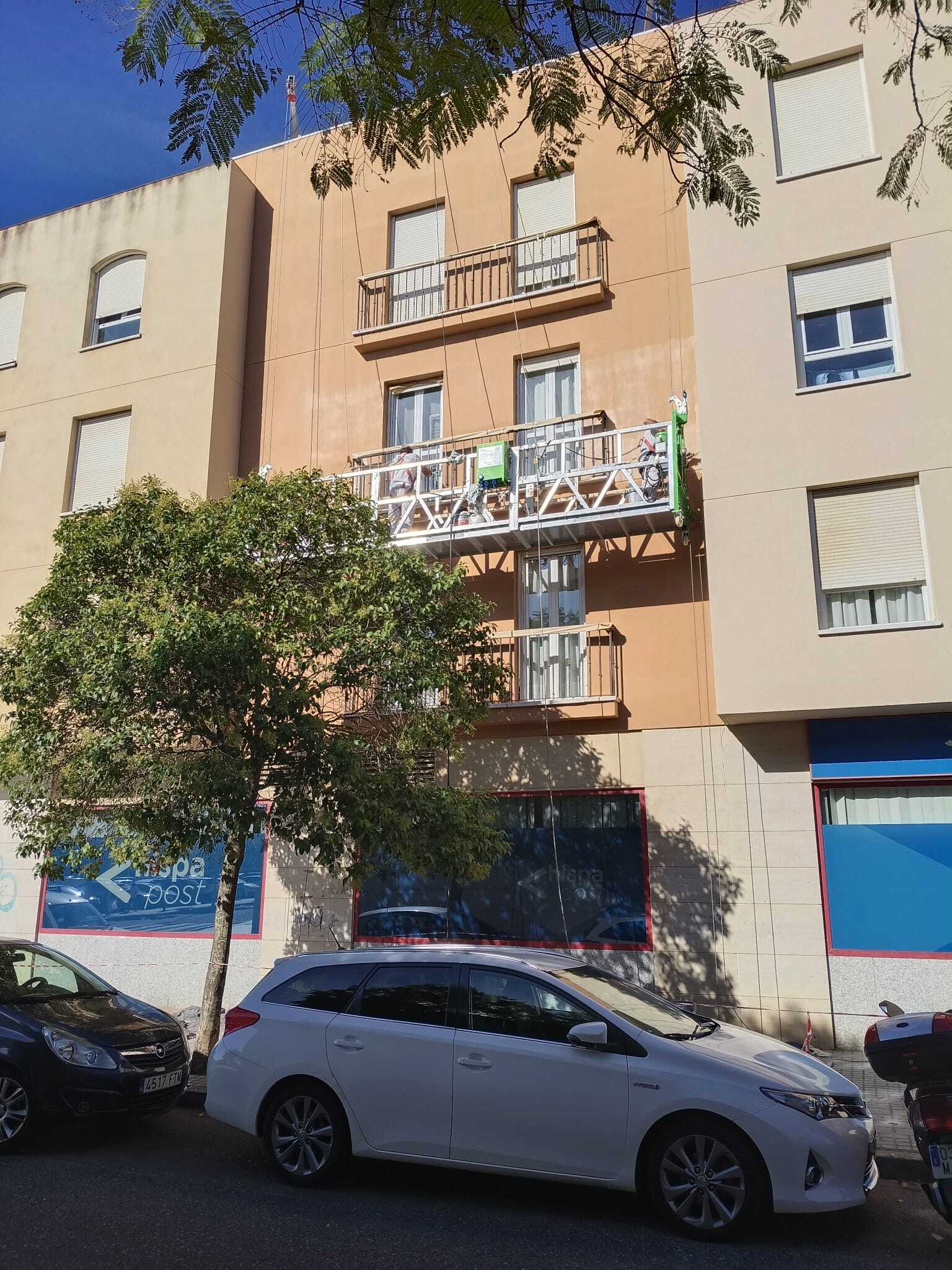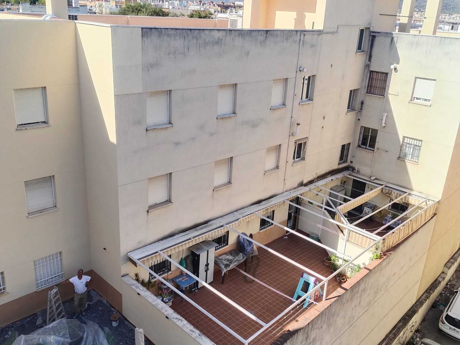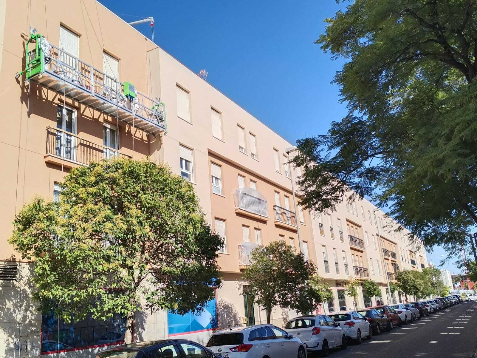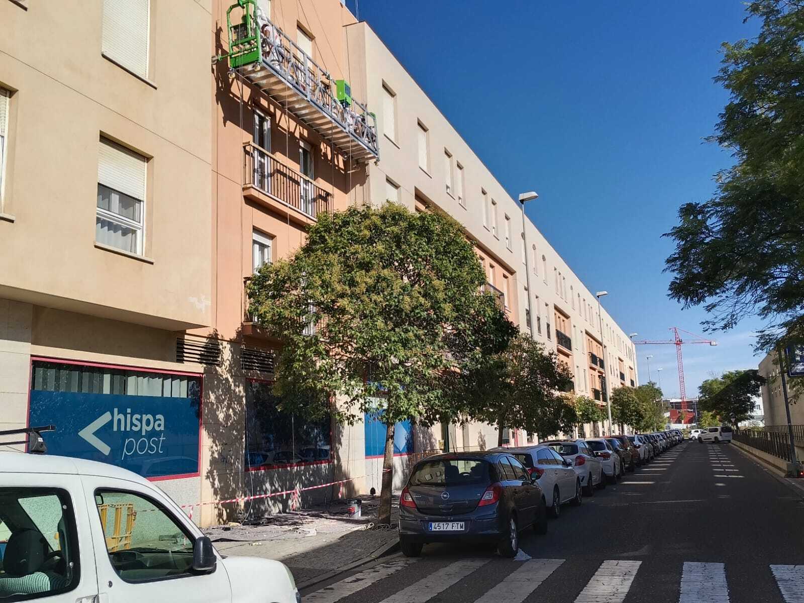 Rehabilitación de esta mancomunidad, en pleno centro de Córdoba, frente a la estación del AVE, en entorno urbano, se acomete este proyecto, combinando técnicas de altura, para zonas como los patios de luces y Andamios Colgantes , como medios auxiliares, se limpia con agua a presión todos los paramentos, se revoca dando la textura similar existente de mortero cotegram, alguna zona, afectada, con morteros R4, para dejar una superficie lisa, después sobre esta base portante, mano de ACRILFIX en dilución 30% para Saturar el poro, 2 Manos de PROCOTEX LISO COL. ARENA, PIEDRA y BLANCO MEDITERRANEO (Carta Colores RENOVA STDR). Este material y sistema, es el propio, por opacidad, grado de mate, para disimular reparaciones, y por sus excelentes cualidades excelentes de retención de color, y rendimiento.
