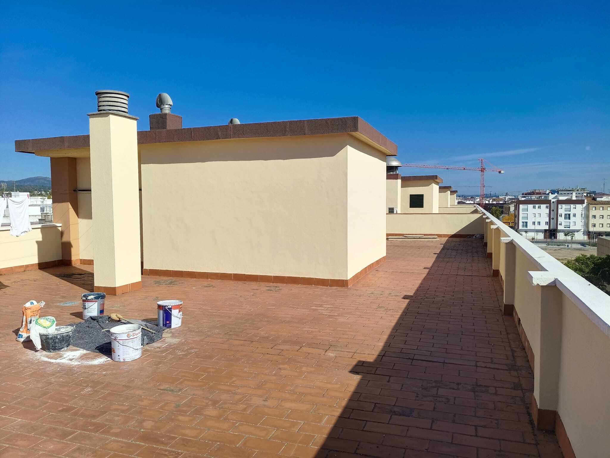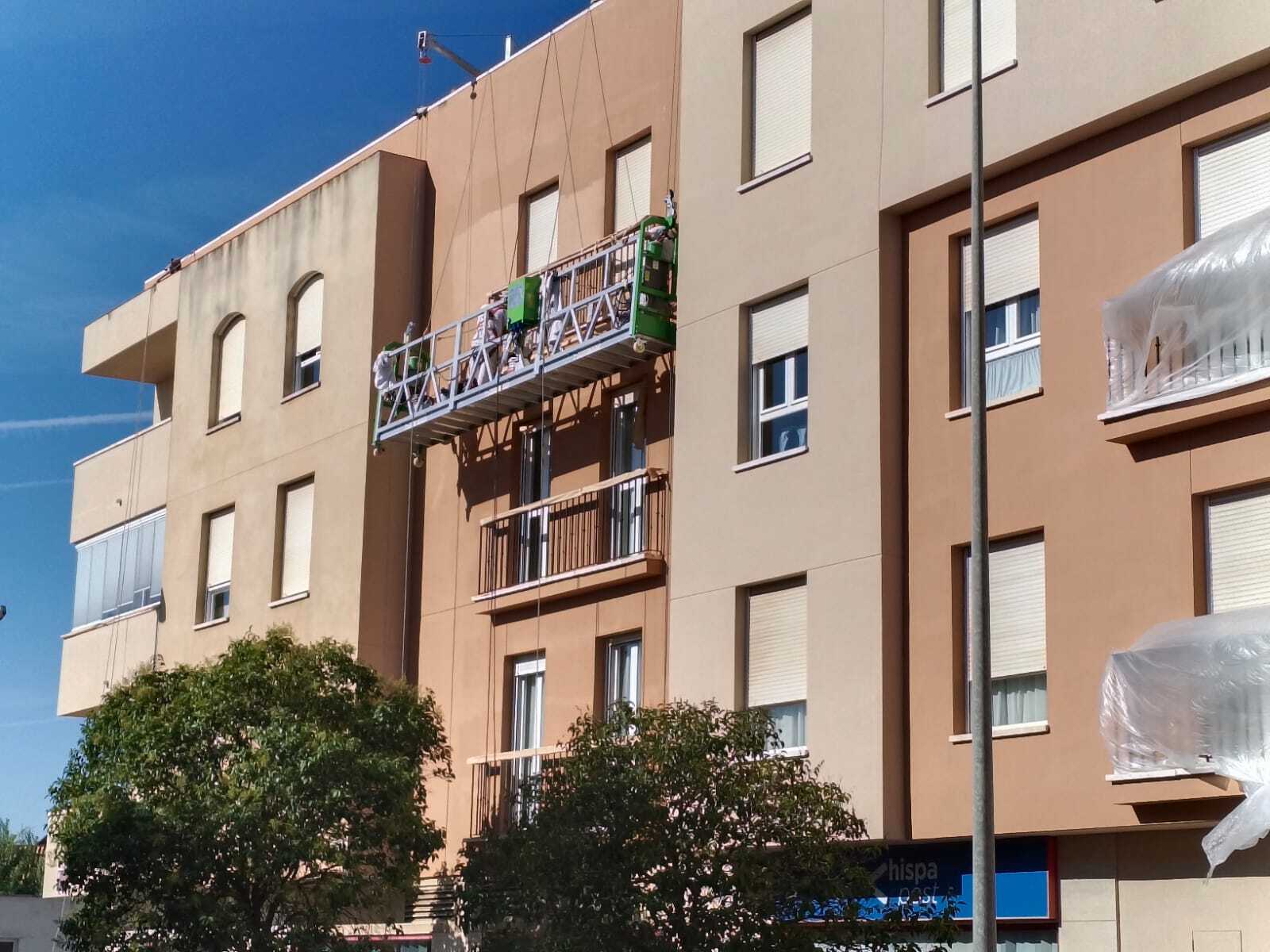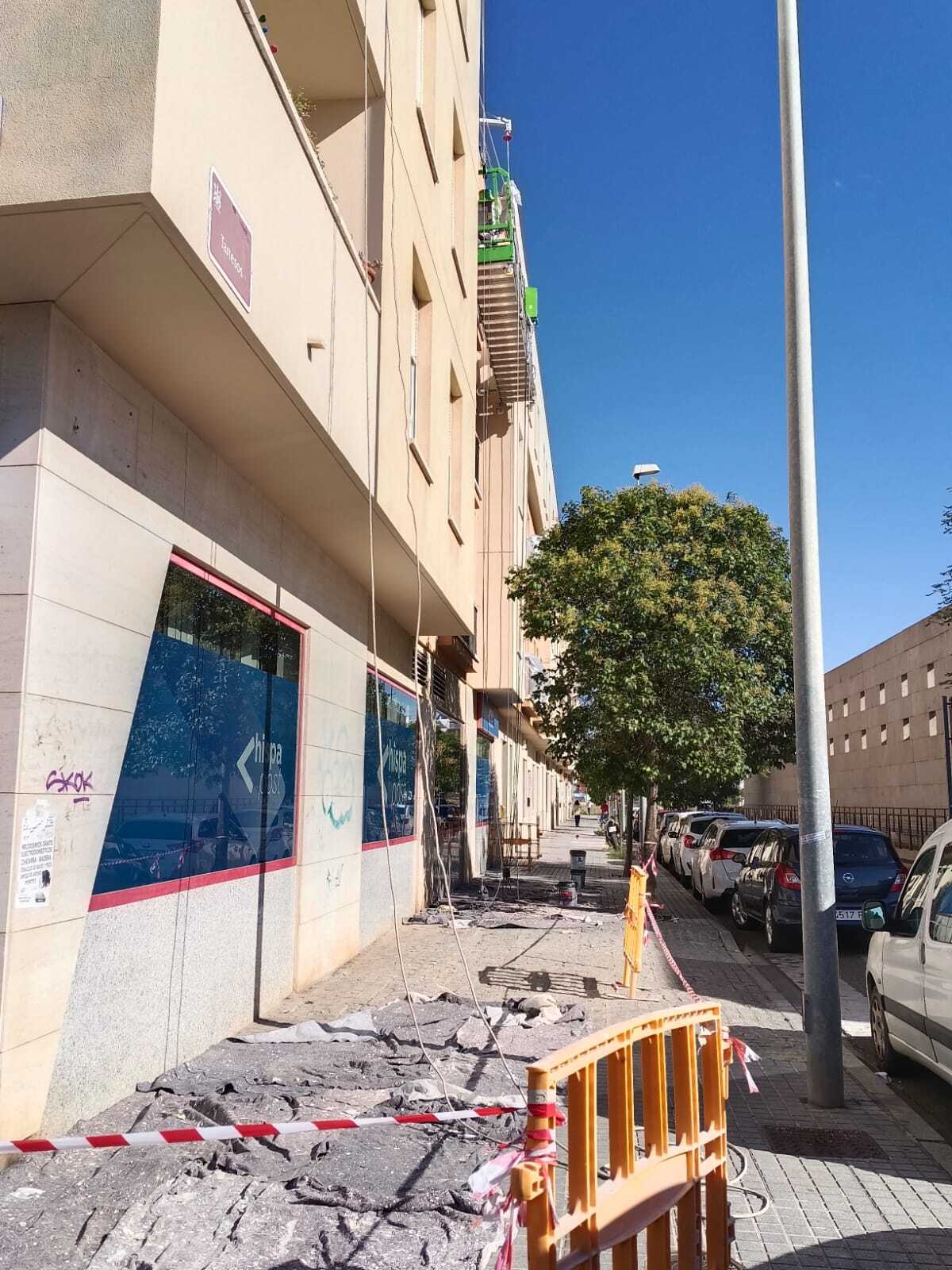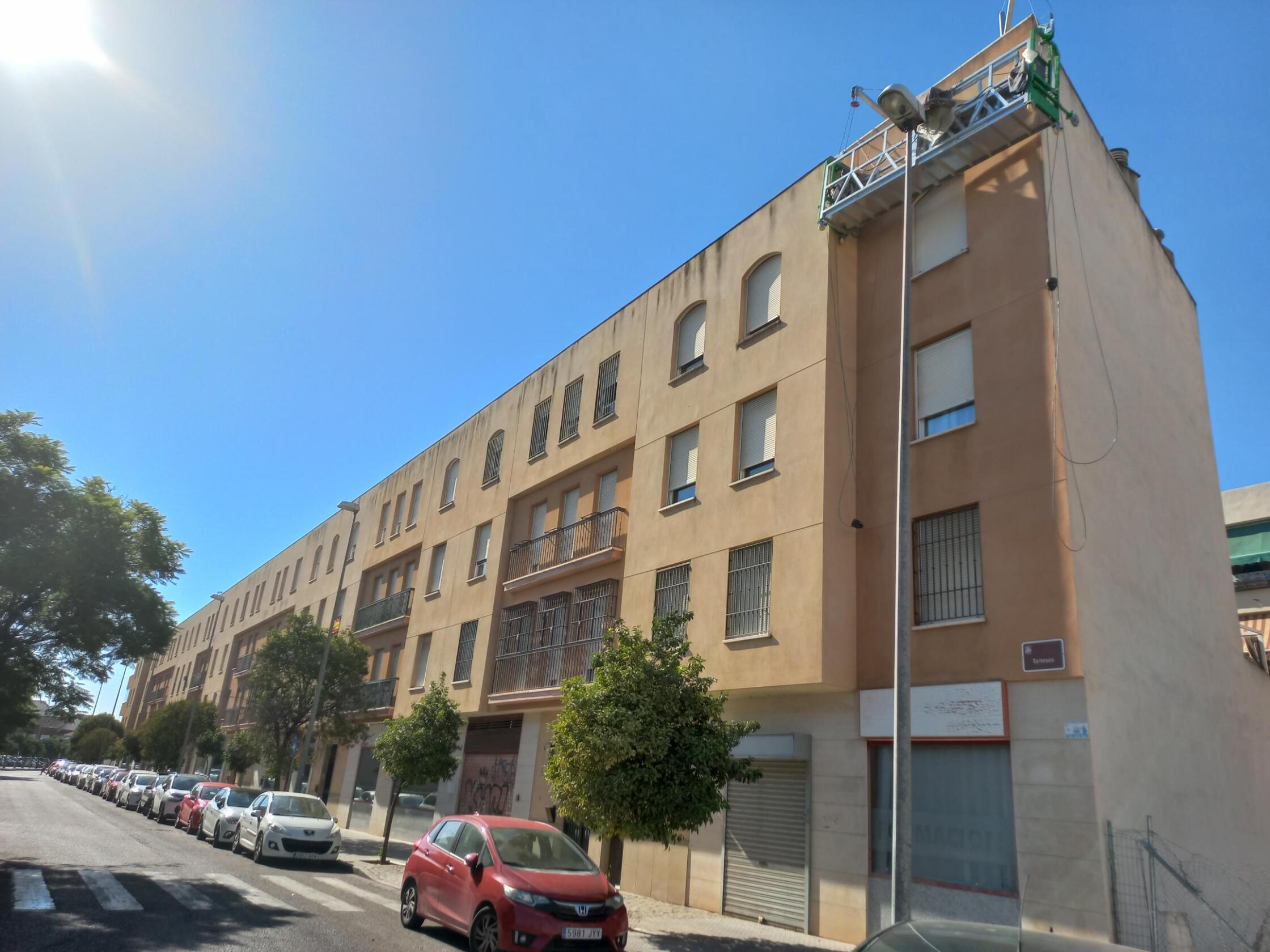 Rehabilitación de esta mancomunidad, en pleno centro de Córdoba, frente a la estación del AVE, en entorno urbano, se acomete este proyecto, combinando técnicas de altura, para zonas como los patios de luces y Andamios Colgantes , como medios auxiliares, se limpia con agua a presión todos los paramentos, se revoca dando la textura similar existente de mortero cotegram, alguna zona, afectada, con morteros R4, para dejar una superficie lisa, después sobre esta base portante, mano de ACRILFIX en dilución 30% para Saturar el poro, 2 Manos de PROCOTEX LISO COL. ARENA, PIEDRA y BLANCO MEDITERRANEO (Carta Colores RENOVA STDR). Este material y sistema, es el propio, por opacidad, grado de mate, para disimular reparaciones, y por sus excelentes cualidades excelentes de retención de color, y rendimiento.