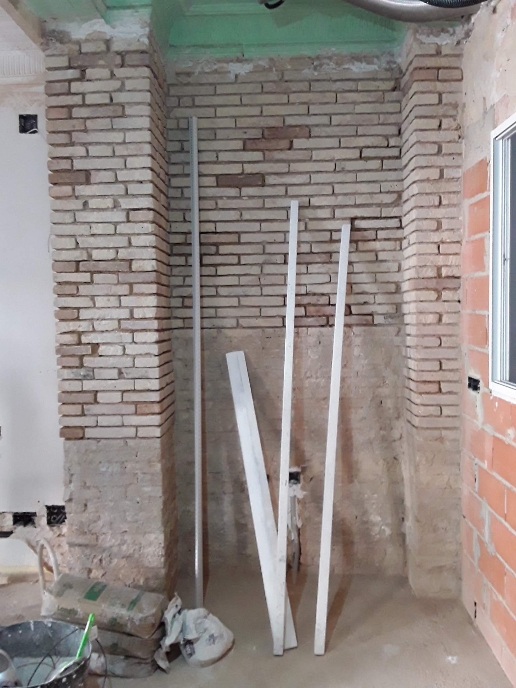 Limpieza del ladrillo original y aplicación de varias capas de imprimación HYDROPIMER para dar protección y resistencia.
