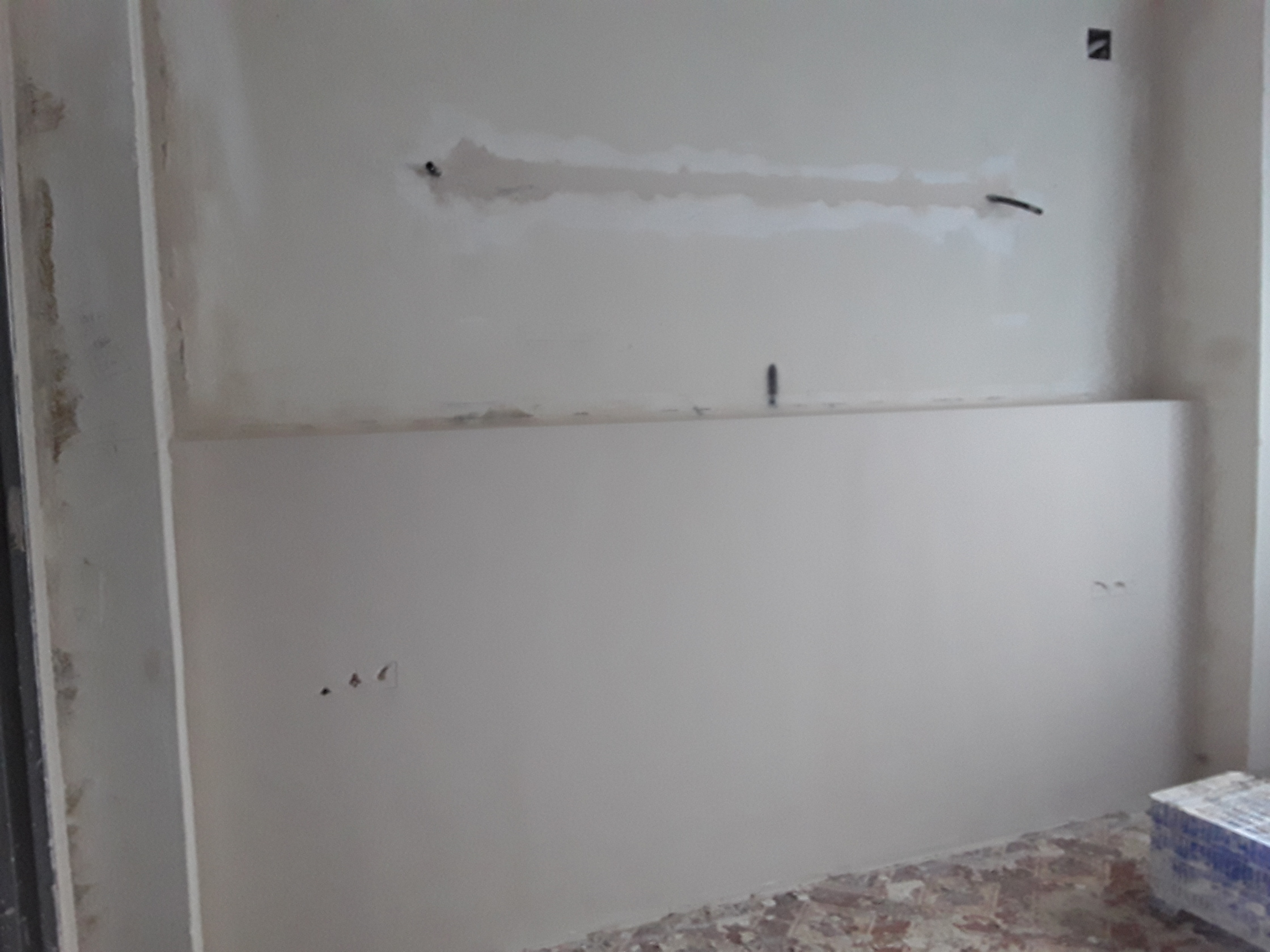 Proceso: Reparación de grietas y desperfectos mediante masilla elásticas y de renovación, alisado de los paramentos antiguos .