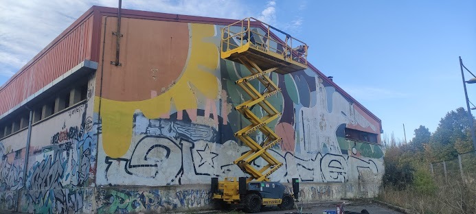 Restauración integral de un mural artístico antiguo,de 1980,