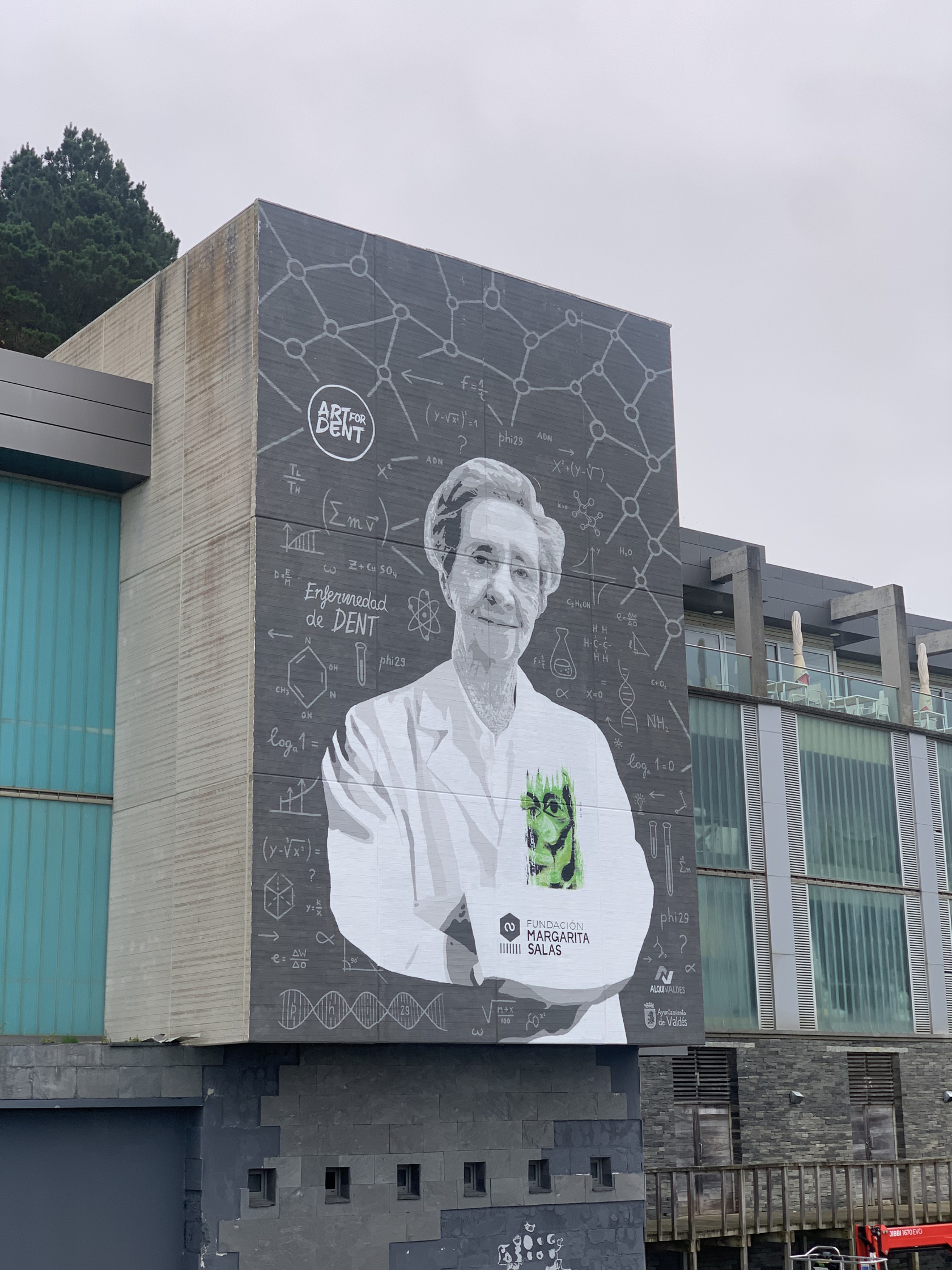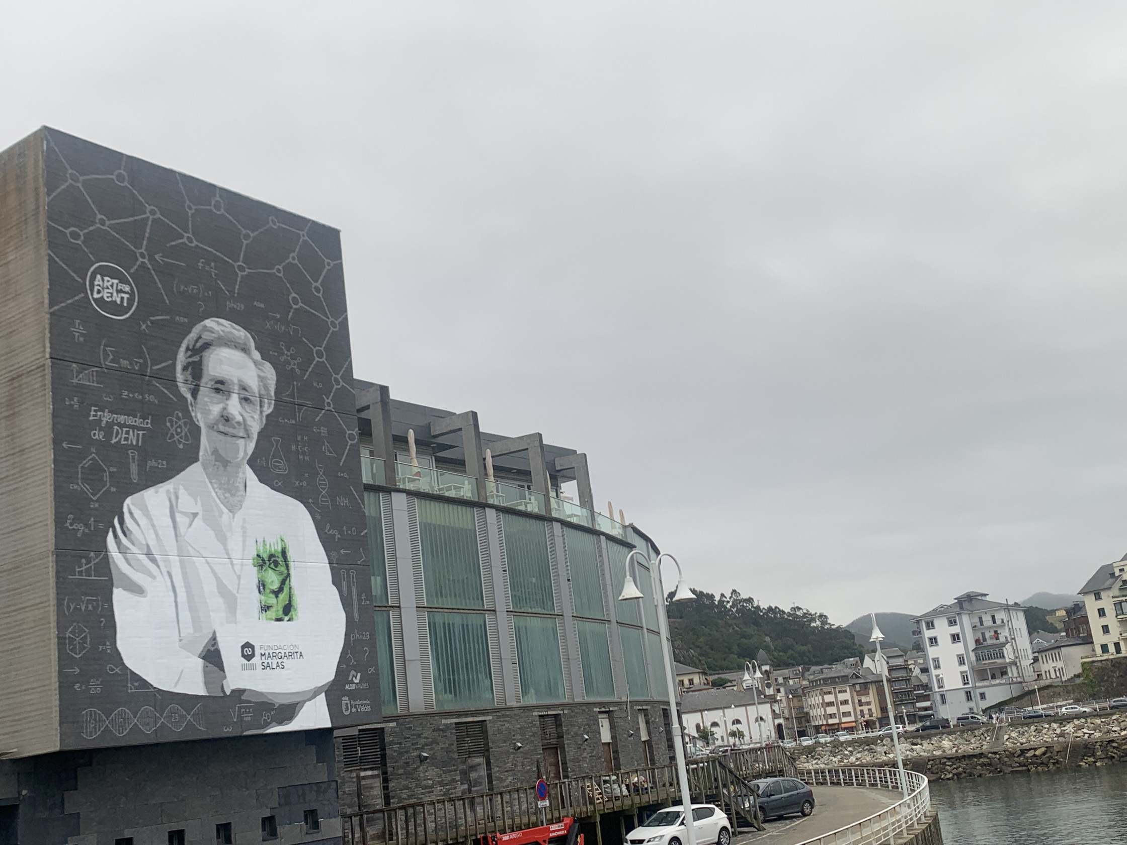 Proyecto mural en fachada de la científica MARGARITA SALAS, realizado en Luarca (Asturias), localidad de la cual es originaria.