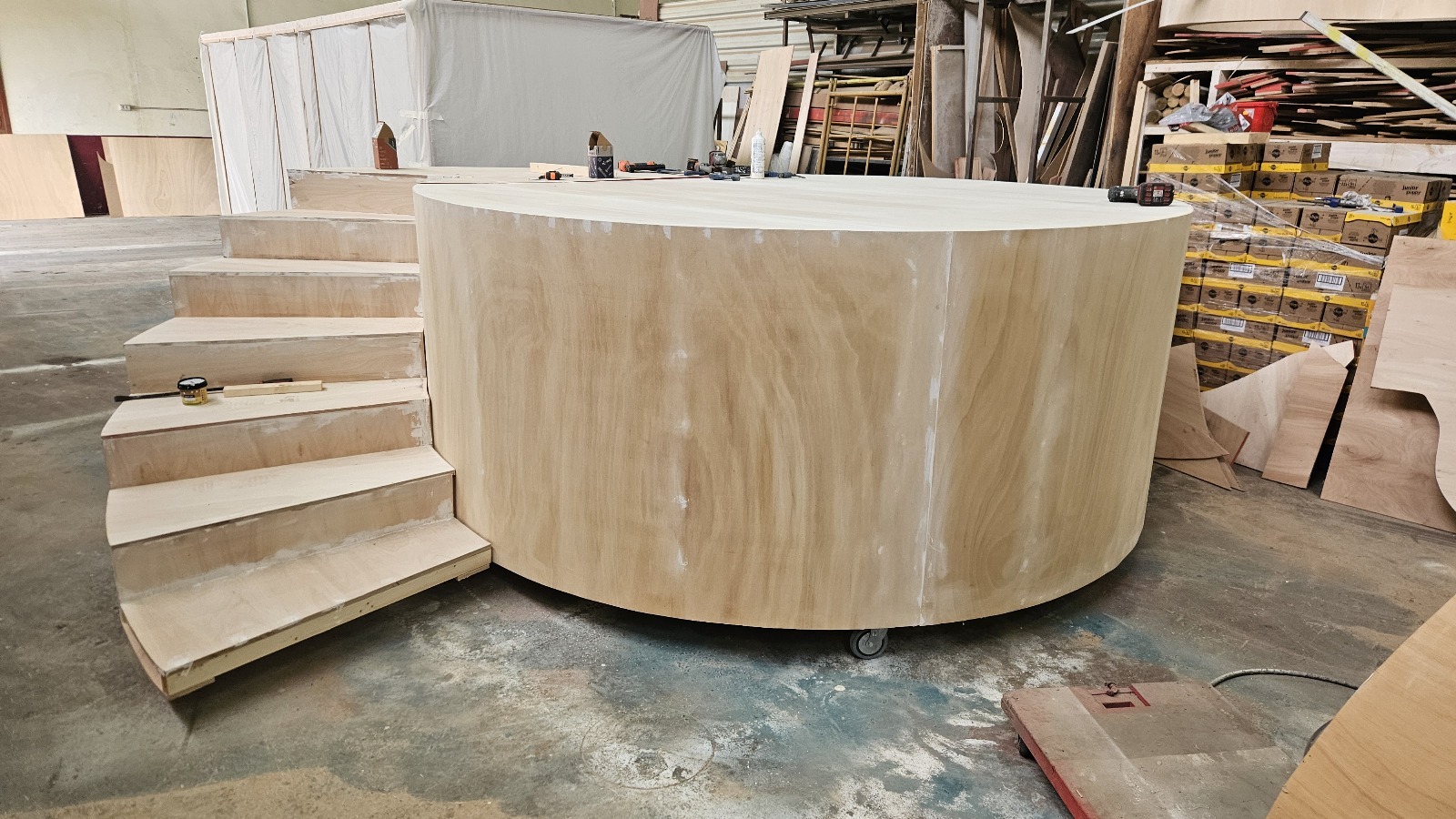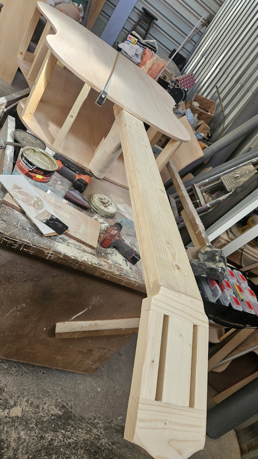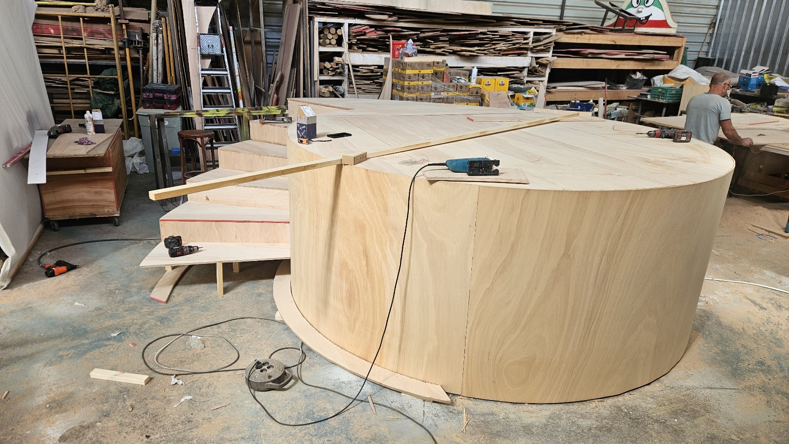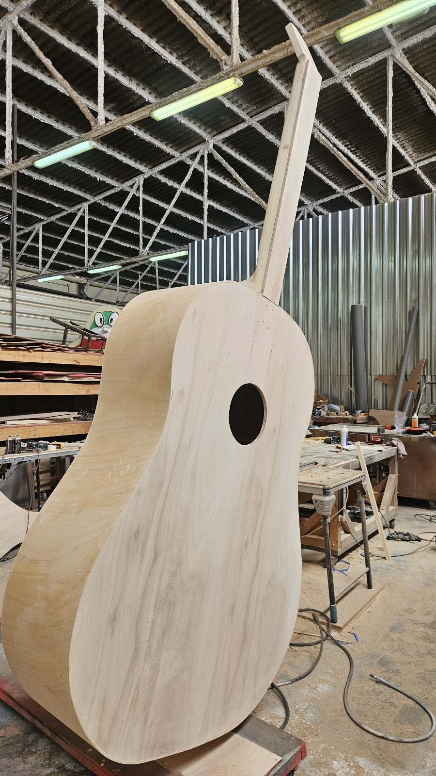 Creación de una carroza flamenca con una gran guitarra de madera y pintada con Esmate al Agua Acritec.