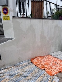 Se limpian los paramentos con Agua a presión, sellado de fisuras con masillas fibradas, Se hicieron, reparaciones, y tendidos con morteros R4, con grano fino, pasivado de alguna gavilla, con PROCOFER EXPERT CONVERTIDOR, posterior enfoscado de dichas, zonas, Se consolidan los soportes con PROCOFIX en dilución 6:1 con Agua, para uniformizar, superficies, y logran una mejor cubrición, y 2 manos de un clásico todoterreno PROEXIL LISO BLANCO.