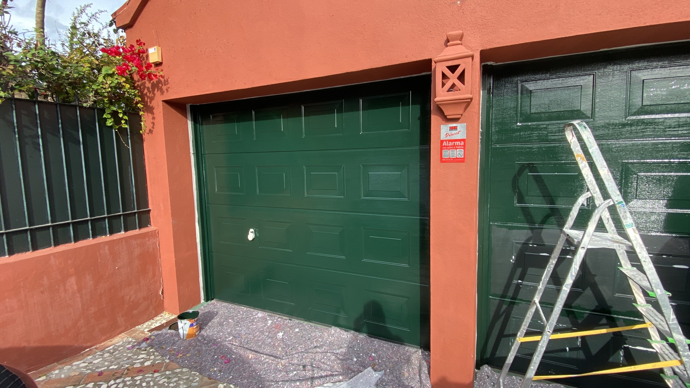 Pintado de herrajes y puertas, aplicando dos manos en tiempo y forma con Esmalte KILATE brillante color verde carta estándar.