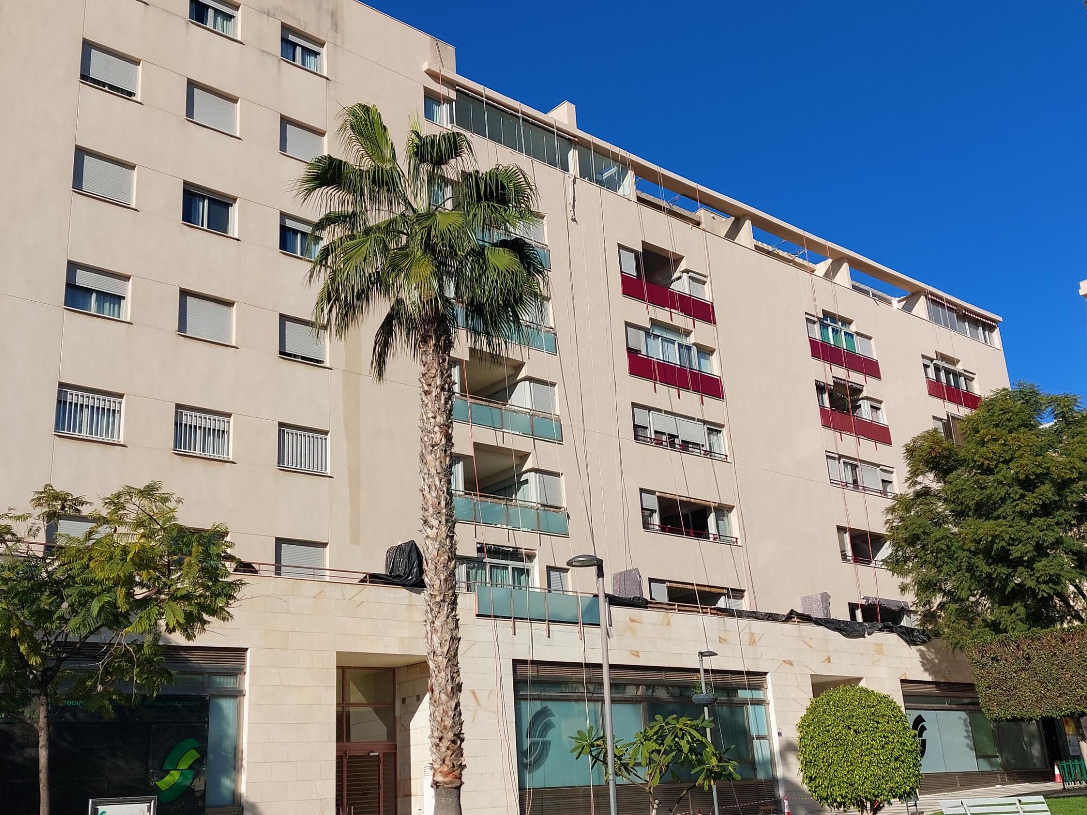 Rehabilitación de Inmueble en entorno urbano distrito de Teatinos, bajo prescripción Técnica, para la obtención de la garantía 7C RENOVA como aplicadores homologados por PROCOLOR, acometemos este proyecto de 8000 m2, Frente a los Juzgados de Málaga, como medios auxiliares, Andamios Colgantes y Tramos con técnicas de altura, se revoca dando la textura similar existente de mortero cotegram, alguna zona, afectada, con morteros R4, , para dejar una superficie lisa, después sobre esta base portante, mano de PROCOFIX en dilución 6:1 para Saturar el poro, 2 Manos de PROCOTEX LISO ARENAL (Carta Colores RENOVA STDR). Este material y sistema, es el propio, por opacidad, grado de mate, para disimular reparaciones, y por sus excelentes cualidades excelentes de retención de color, y rendimiento.