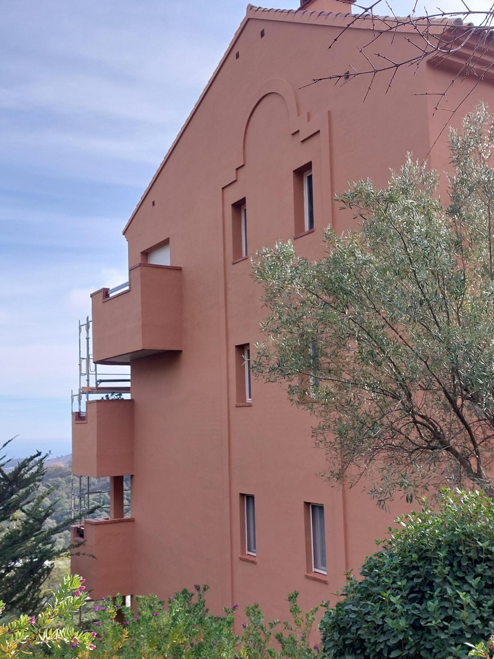 Rehabilitación de Comunidad de Propietarios de 14.000 m2 Paramentos exteriores en entorno rural, enfoscado general de revoco, Vaciado y condenado de jardineras, Bajo Prescripción Técnica, y en sintonía con la Dirección de Obra, Hicimos este proyecto de envergadura, mediante andamios, y técnicas verticales, de 15 meses de duración, para la obtención de la garantía 10C RENOVA como aplicadores homologados por PROCOLOR,