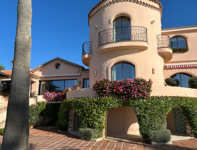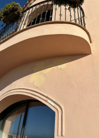 Presentamos este proyecto, de rehabilitación de la Villa Torre de Marfil, con estilo colonial y sita en Marbella, Se limpian los paramentos con Agua a presión, sellado de fisuras con masillas fibradas, Se hicieron, reparaciones, y tendidos con morteros R4, con grano fino, pasivado de alguna gavilla, con PROCOFER EXPERT CONVERTIDOR, posterior enfoscado de dichas, zonas, Se consolidan los soportes con ACRILFIX en dilución 30% con Agua, para uniformizar, superficies, y logran una mejor cubrición, y 2 manos de PROSILOX LISO BLANCO, (Paramentos Principales), y para (Resaltes) PROSILOX LISO MIX Col. S1015 Y60R (Carta NCS)