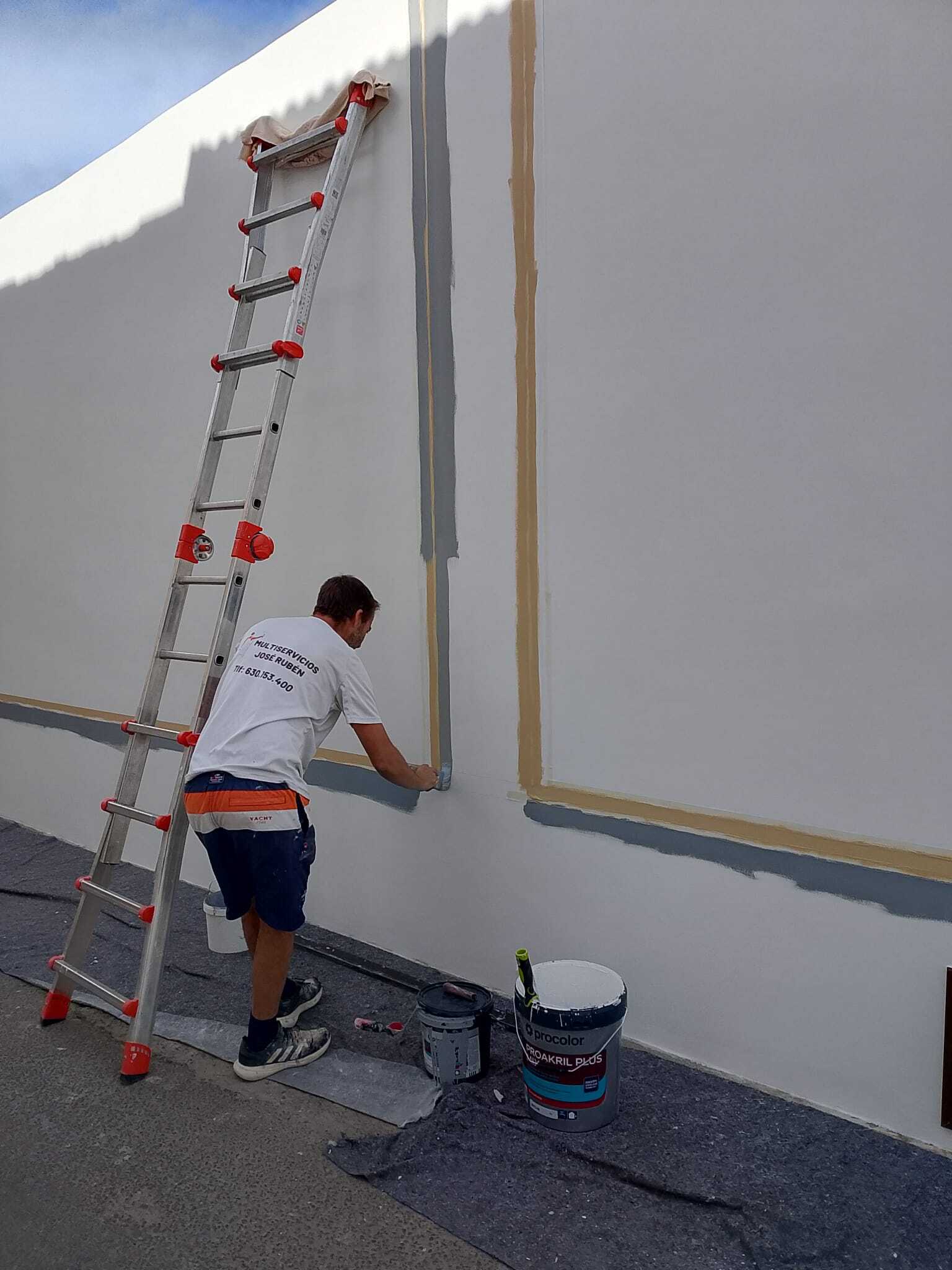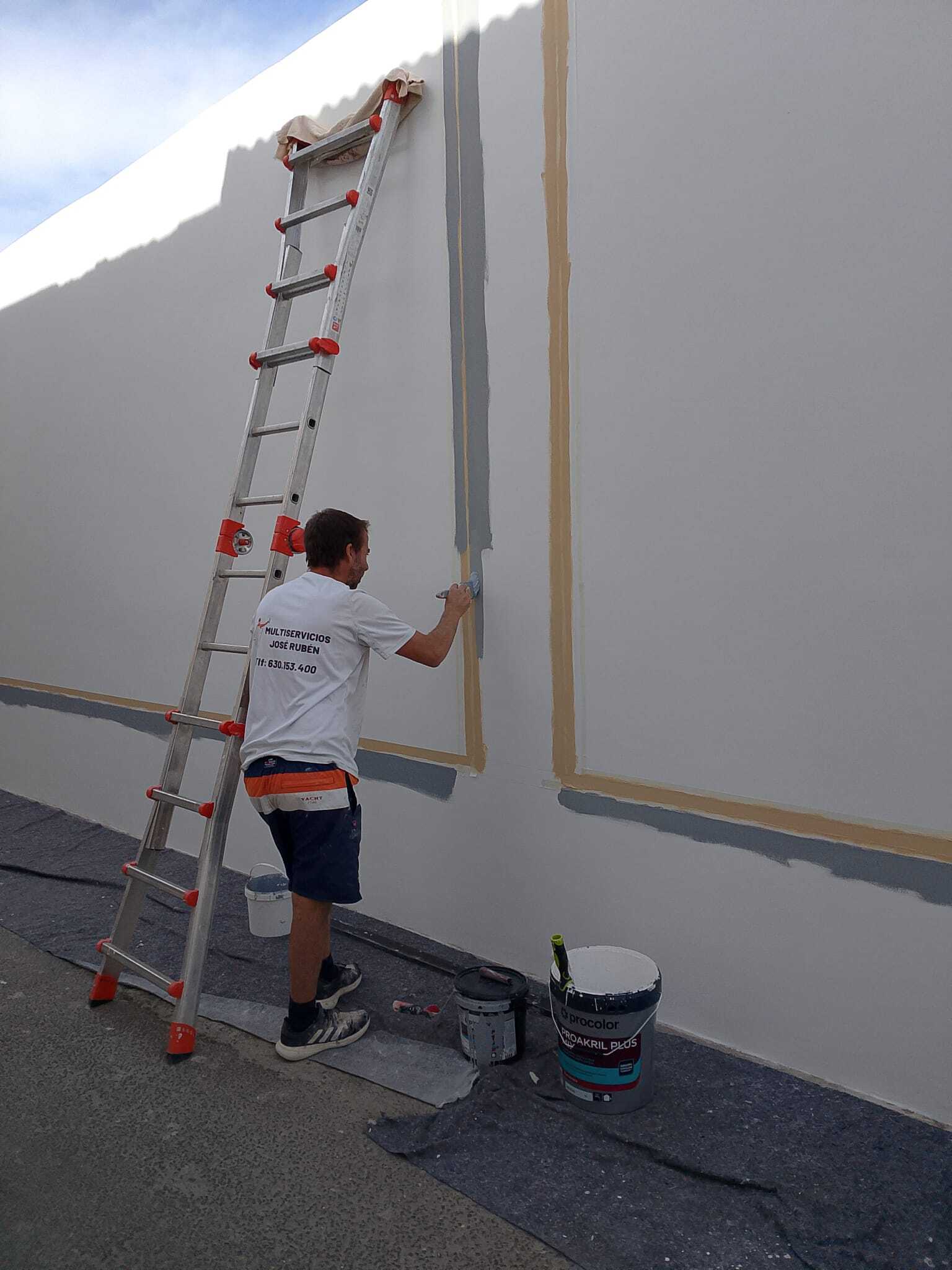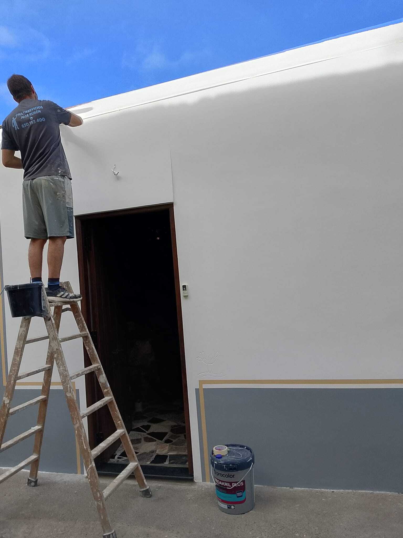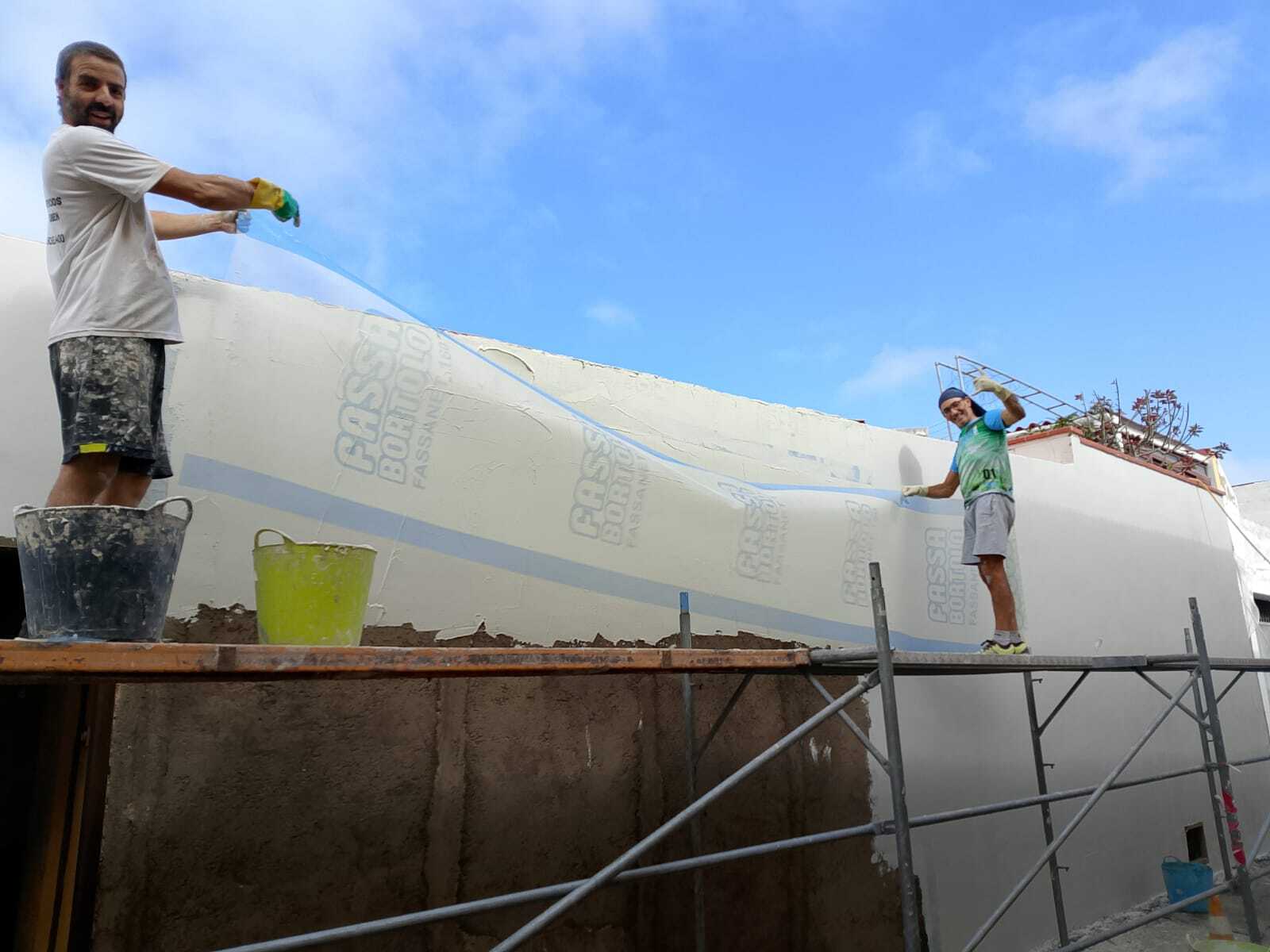 La Rehabilitación a consistido en reparar toda la fachada partes se ha llegado a quitar el enfoscado y volver a rehacer se imprima con hydroprimer y se acaba con dos manos de Proakril plus