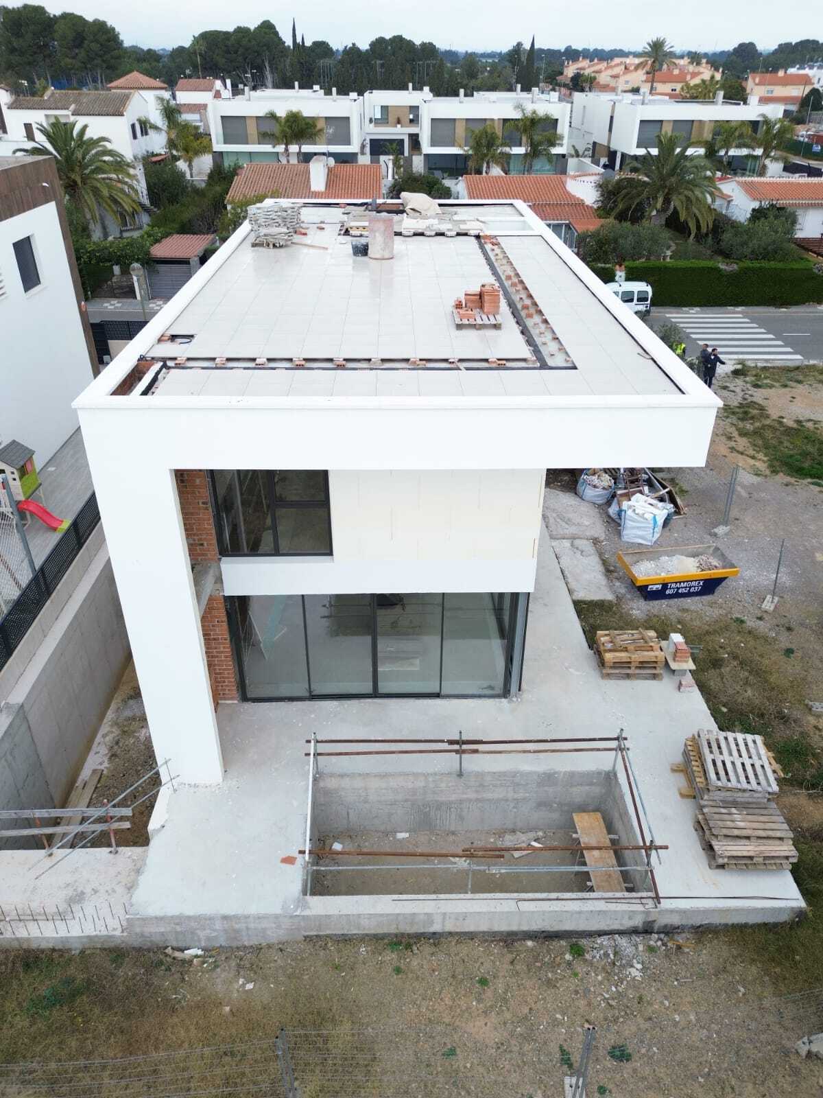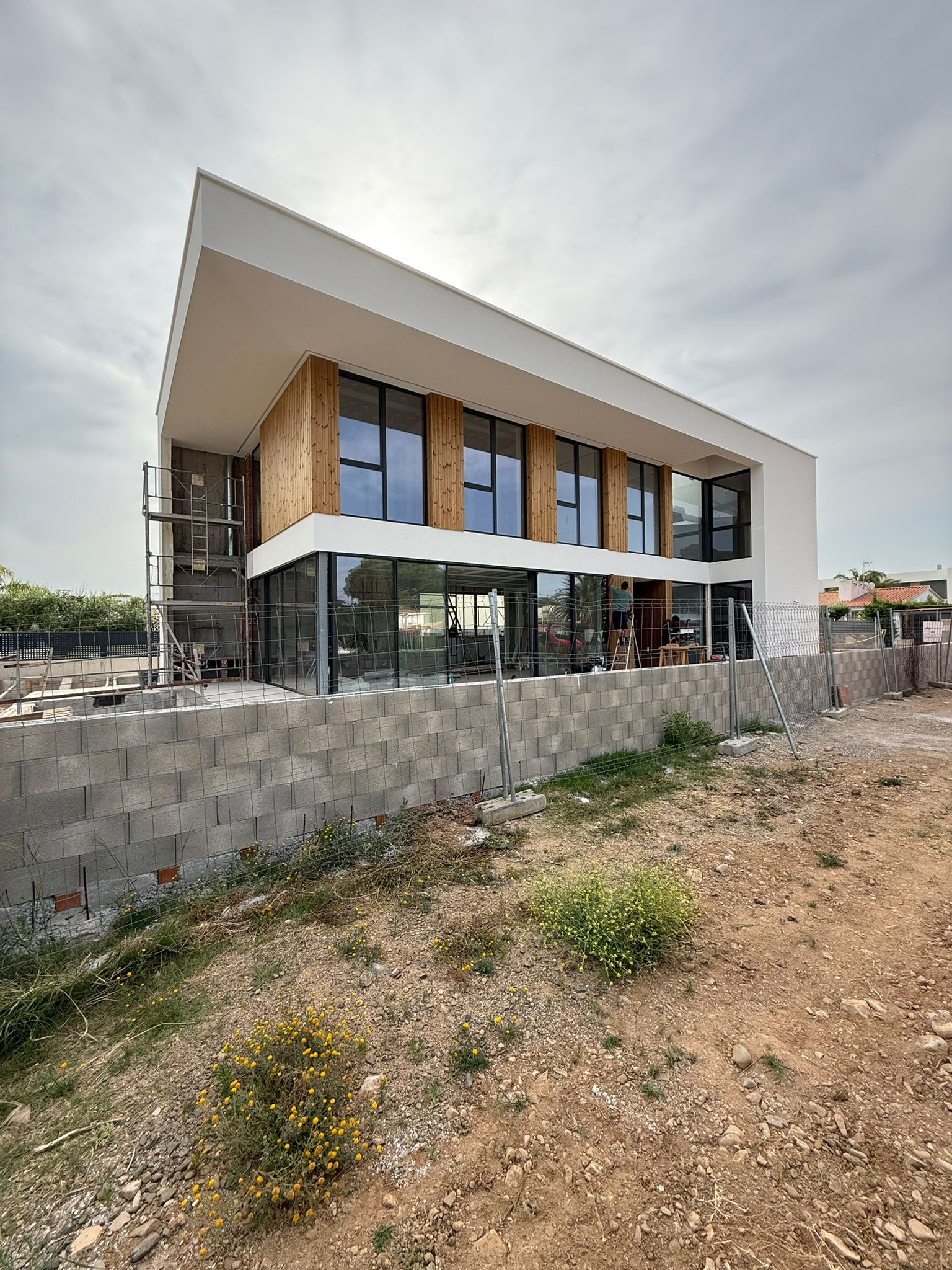 Se realiza un sistema de aislamiento por el exterior (SATE)a una casa unifamiliar CON PLACAS DE EPS DE 80MM fijado con mortero a la fachada y fijaciones mecanicas con taco de expansion de polipropileno, capa de regularizacion de mortero armado con malla de fibra de vidrio y terminado con mortero acrilico color blanco renovatherm 1.0 previa imprimacion acrilica renovatherm imprimacion.