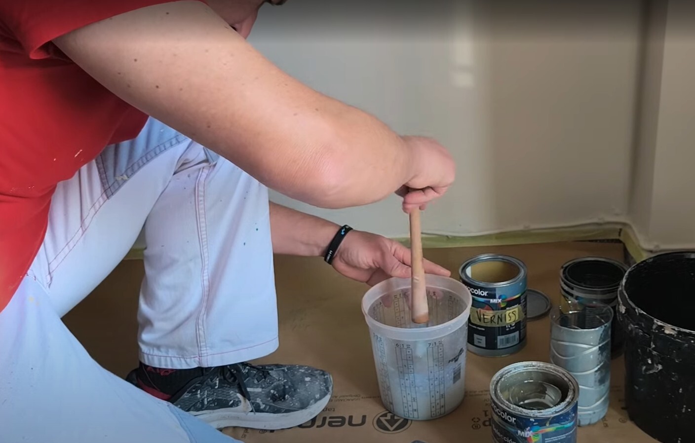 Los techos los acabamos con pintura plástica mate S 500 en color blanco y las paredes con esmalte al agua acritec mate en color de la carta NCS.