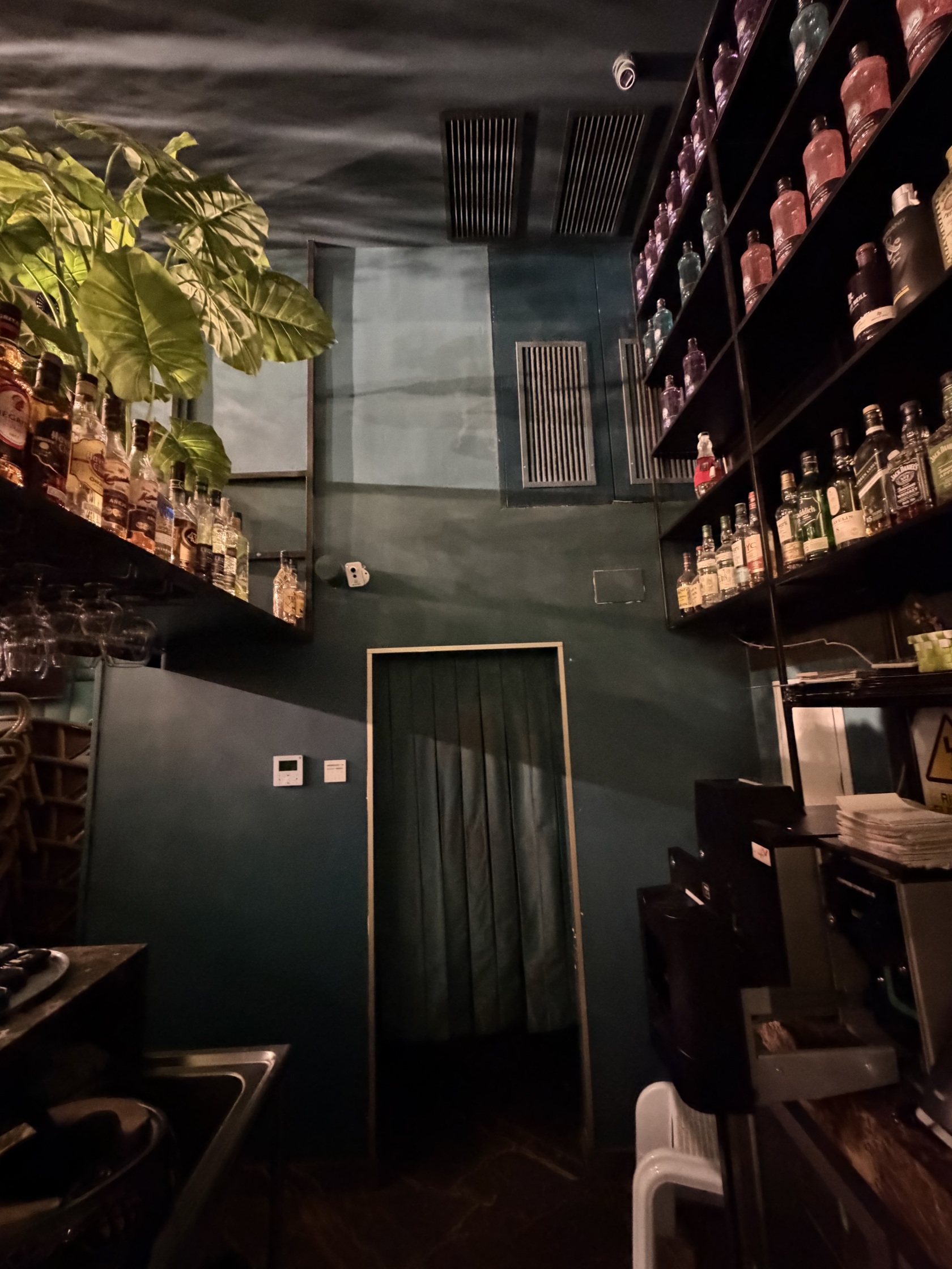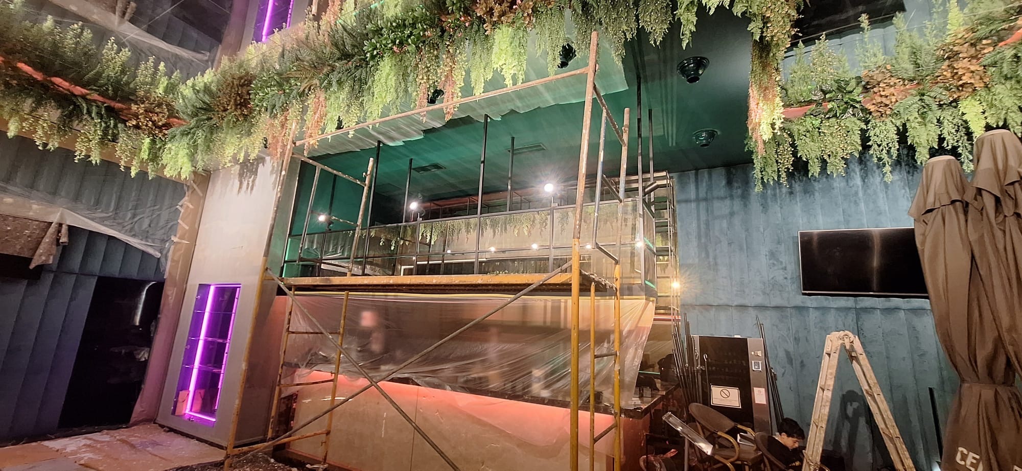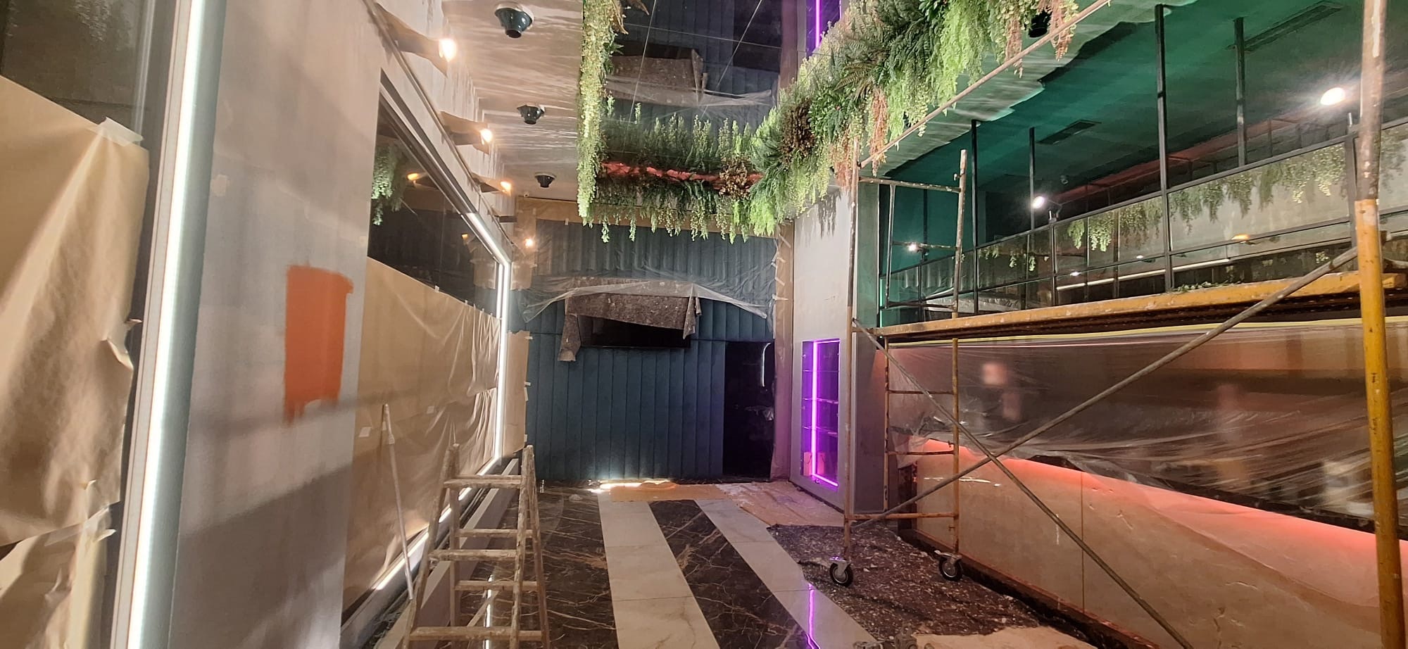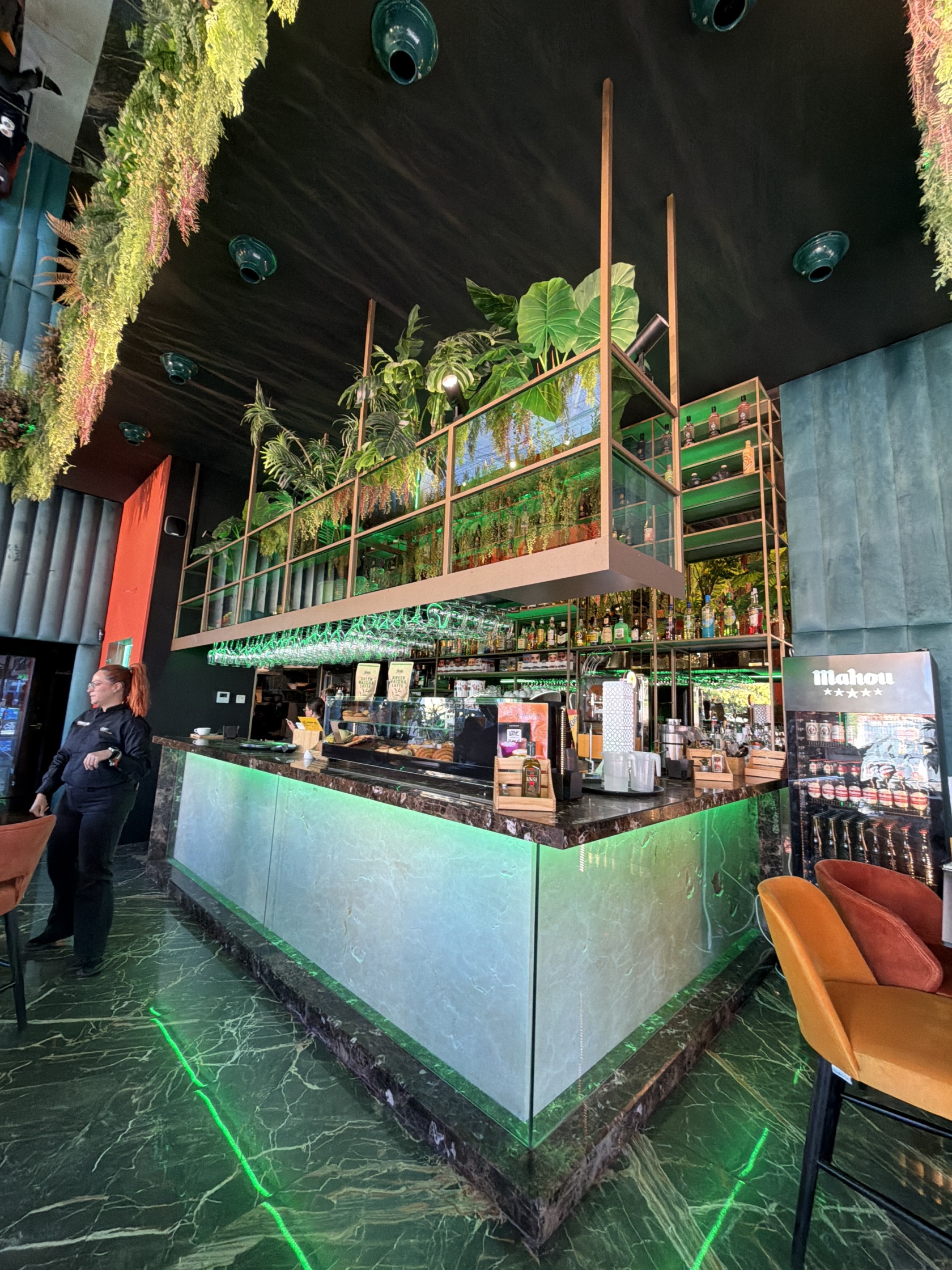 El establecimiento presentaba originalmente paredes en tonos gris azulado. El cliente solicitó una transformación completa hacia un color anaranjado-rojizo, similar al RAL 2001, con el objetivo de aportar mayor personalidad y calidez al espacio.
