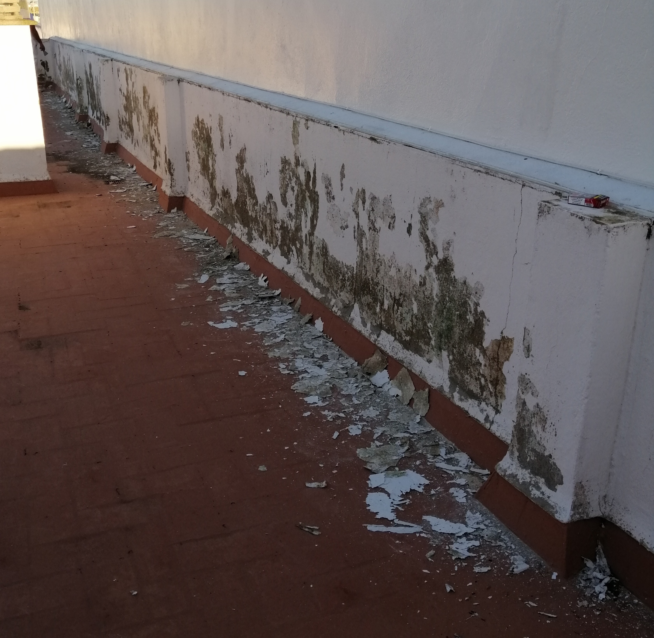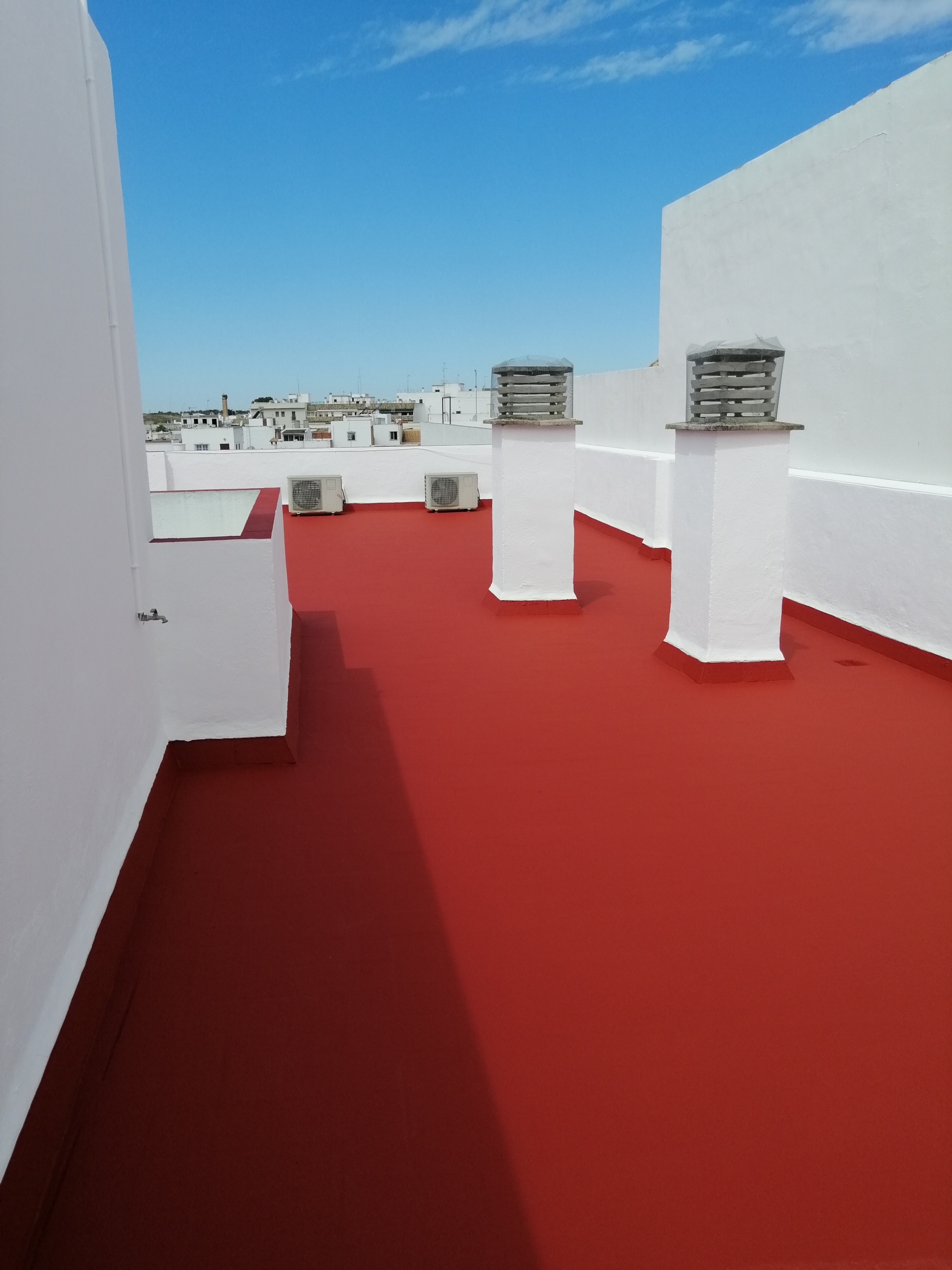 Pintado los banquillos de la azotea con proexil silicona do blanco . Saneado de la superficie ante del pintado se ha aplicado fijador