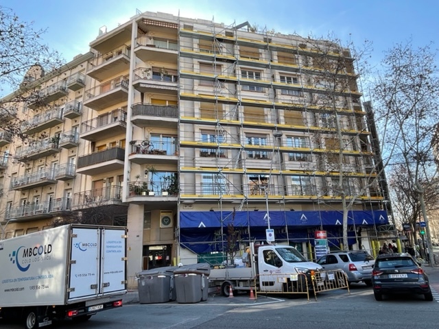 Rehabilitación de fachada de edificio del Eixample en C/ Villarroel nª149, Barcelona.