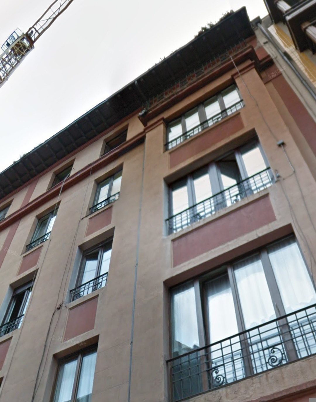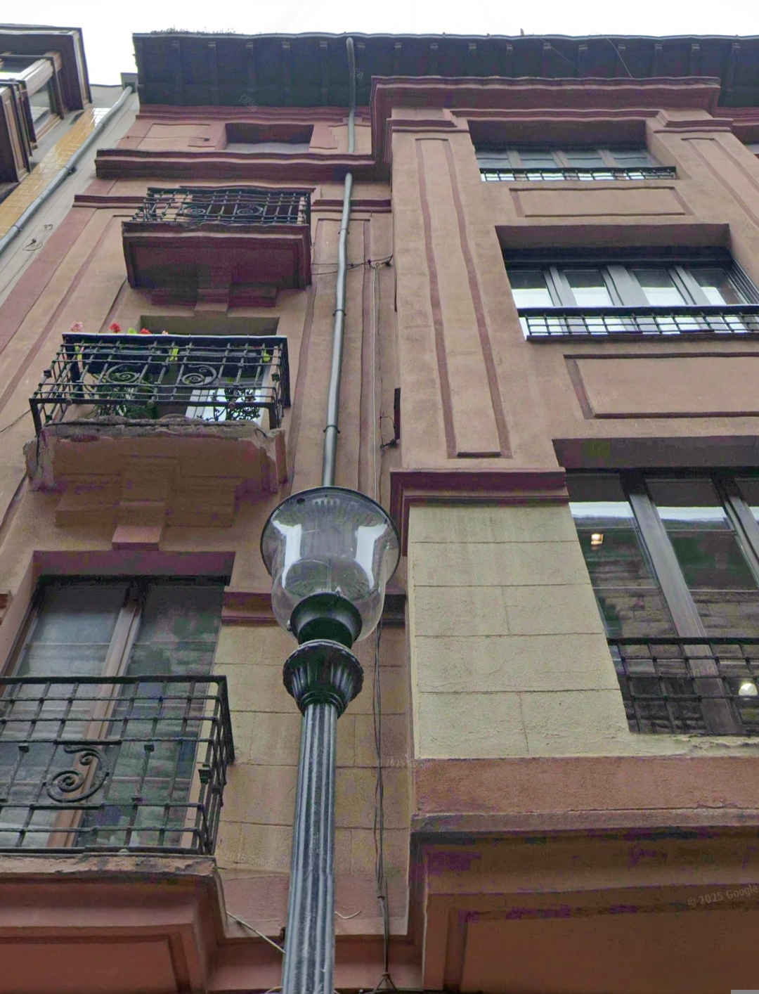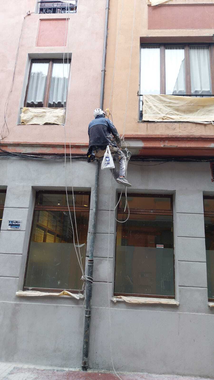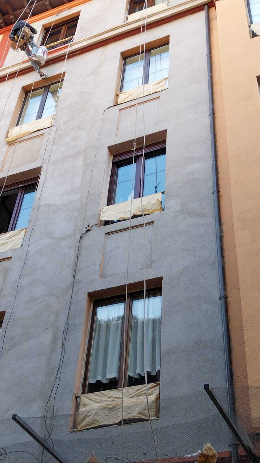 Fachada trasera y principal. Regionalista (1930) Completamente agrietada y con voladizos derruidos. Se reconstruyo con 1004 y se pintó en dos colores. Todo mediante trabajos verticales. Productos utilizados: