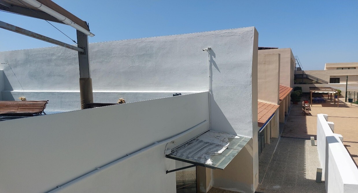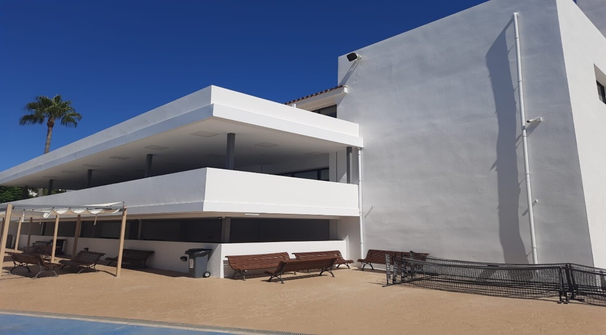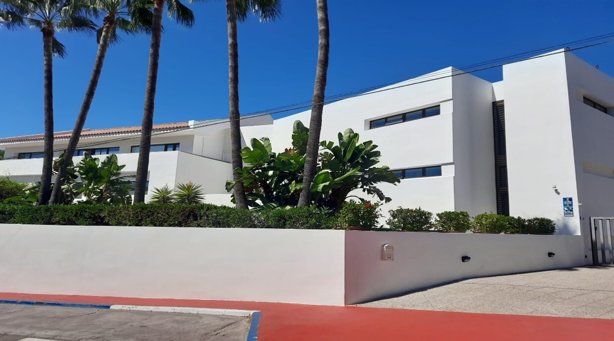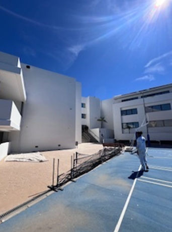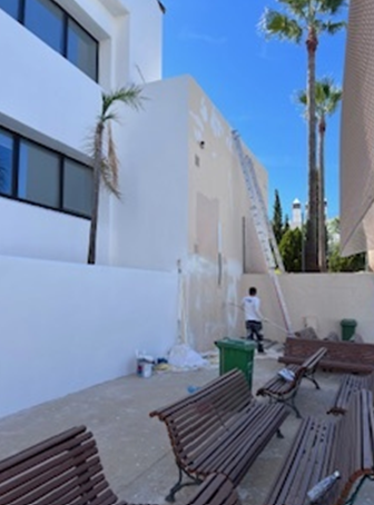 Presentamos este proyecto, de rehabilitación del Colegio SWANS, International SCHOOL de Marbella, Se limpian los paramentos con Agua a presión, sellado de fisuras con masillas fibradas, Se hicieron, reparaciones, y tendidos con morteros R4, con grano fino, pasivado de alguna gavilla, con PROCOFER EXPERT CONVERTIDOR, posterior enfoscado de dichas, zonas, Se consolidan los soportes con ALPHALOXAN PRIMER en dilución 30% con Agua, para uniformizar, superficies, y logran una mejor cubrición, y 2 manos de PROCOKRIL LISO MIX Ral 9016 (Paramentos de Fachada