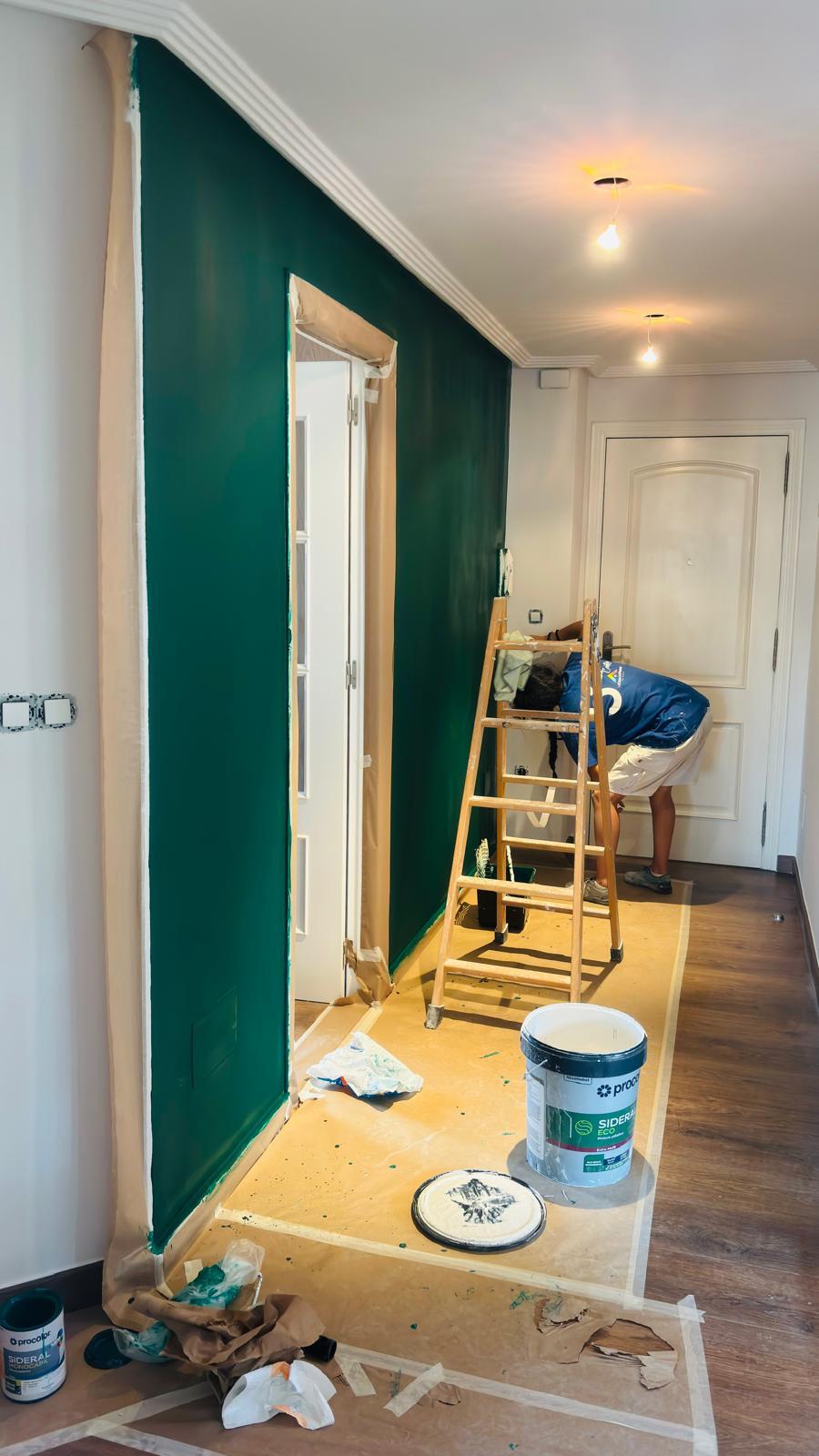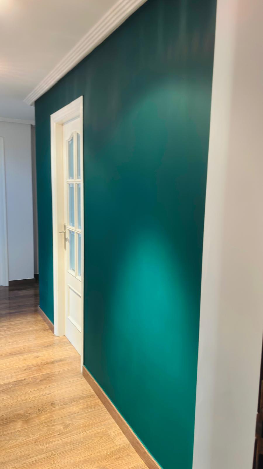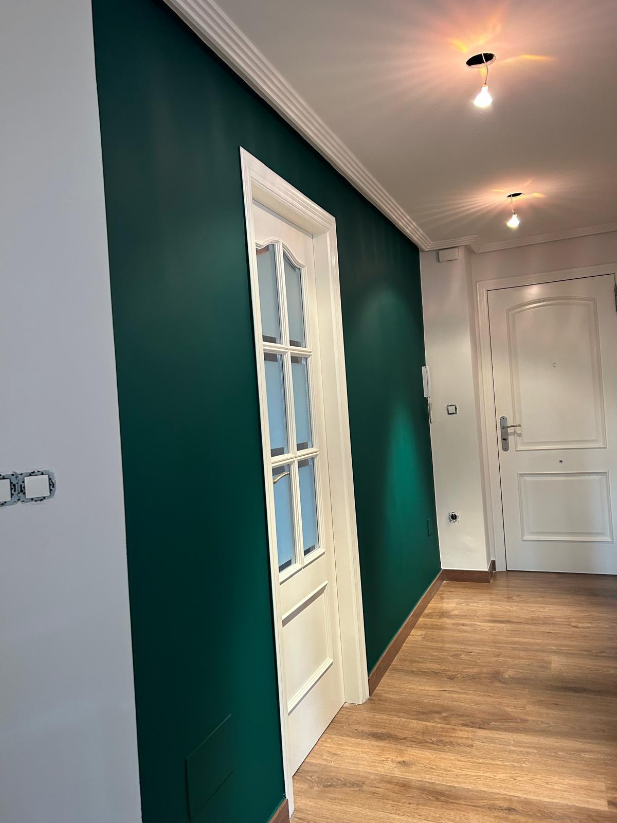 Aquí os presento este cambio de color en una pared de la entrada de una vivienda, los dueños han elegido este verde tan elegante y para ello, primero he reparado los desperfectos de la pared con masilla de renovación, lijado, y posteriormente he aplicado 3 capas de sideral eco monocapa. Gracias :)
