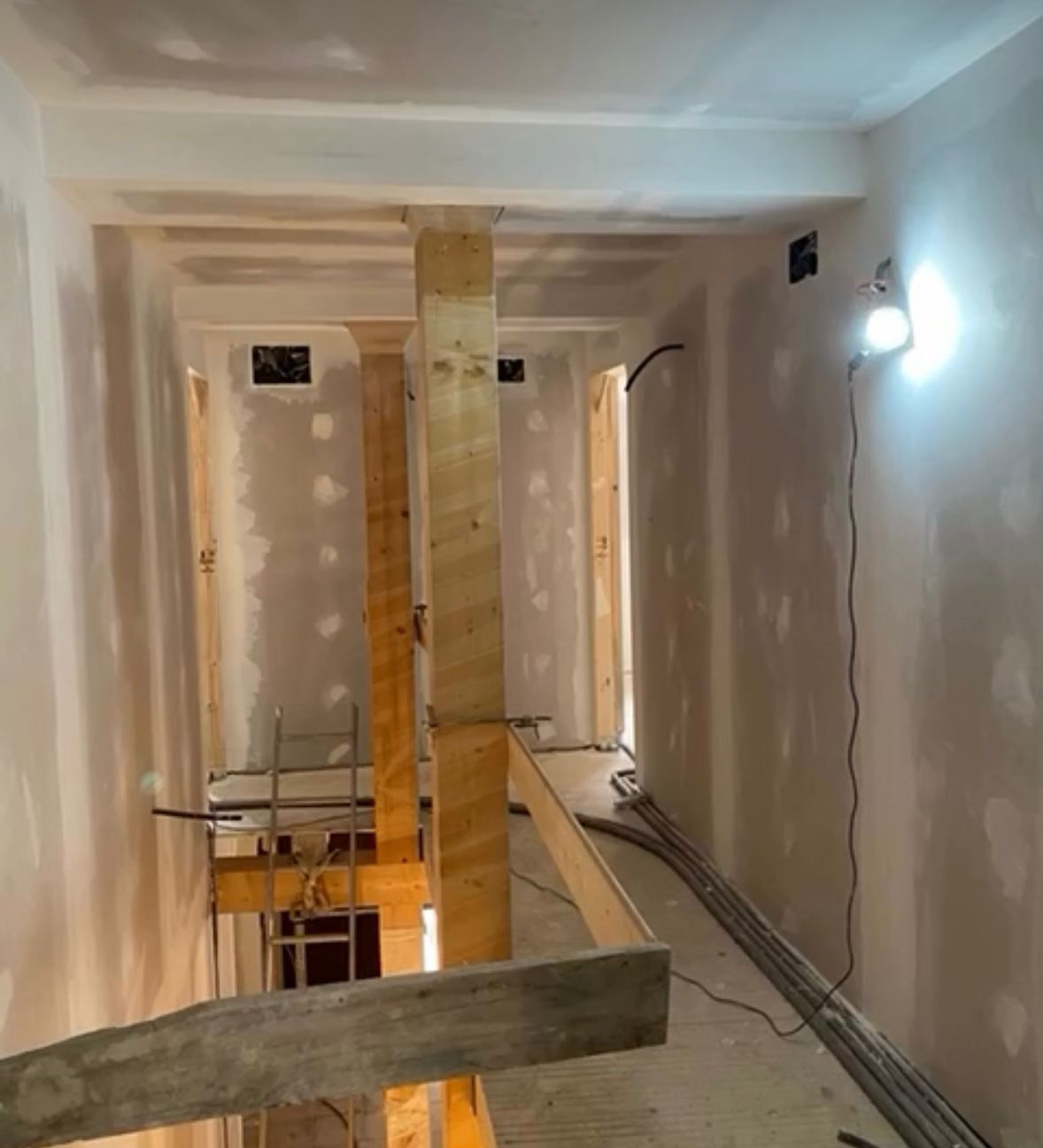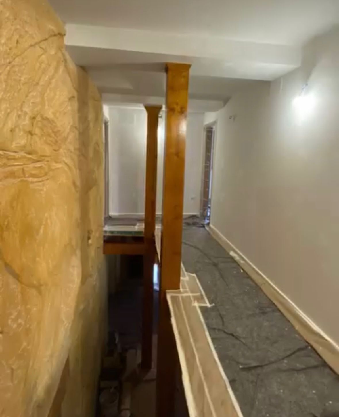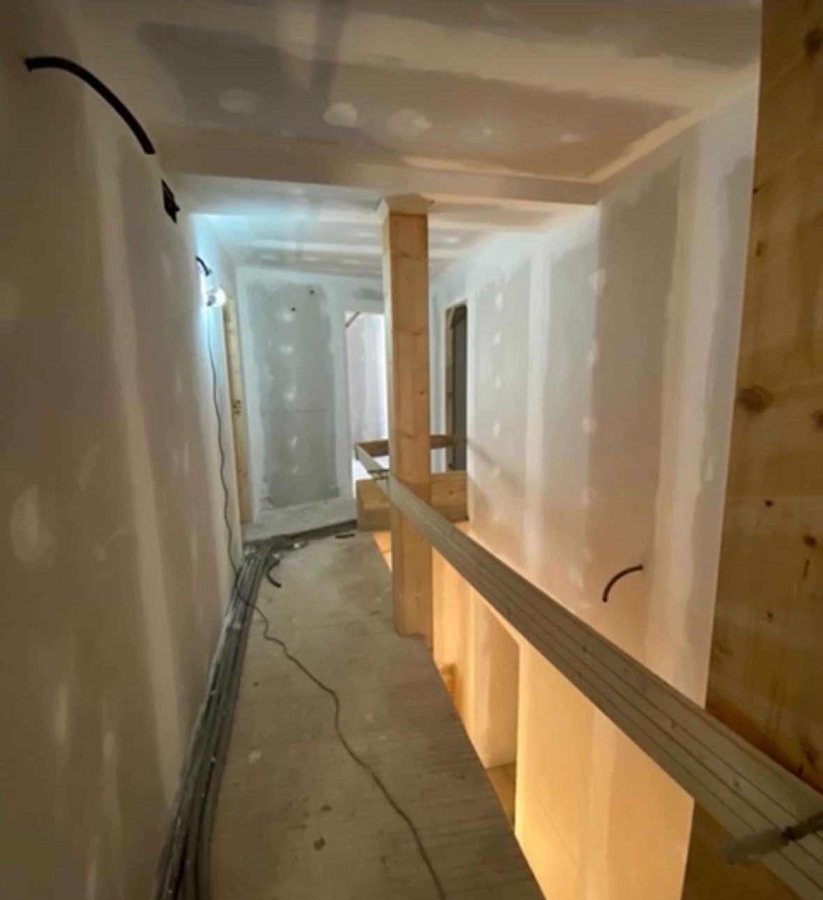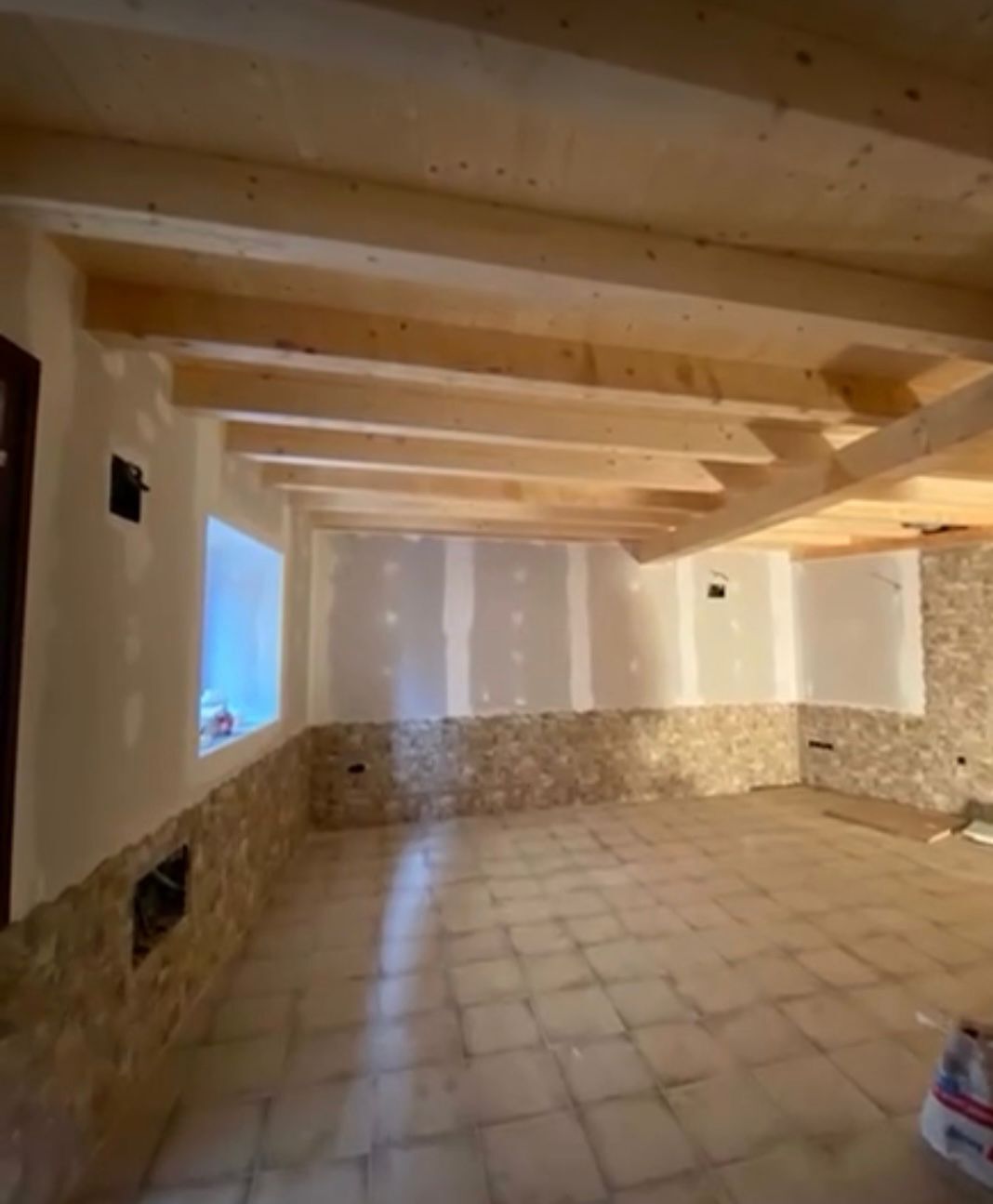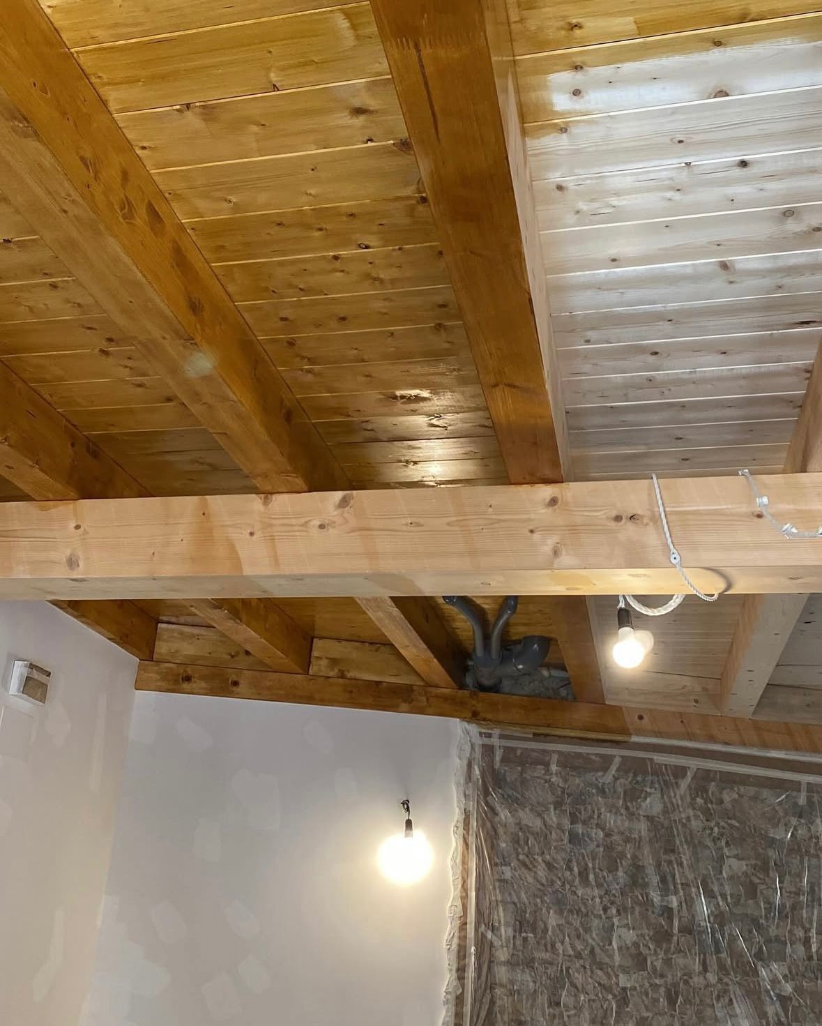 Mi intervención en el proyecto consistió en la ejecución integral de los trabajos de pintura interior de la vivienda, con especial énfasis en la protección y embellecimiento de las vigas de madera vista, elementos clave en la estética rústica y tradicional del futuro hotel.