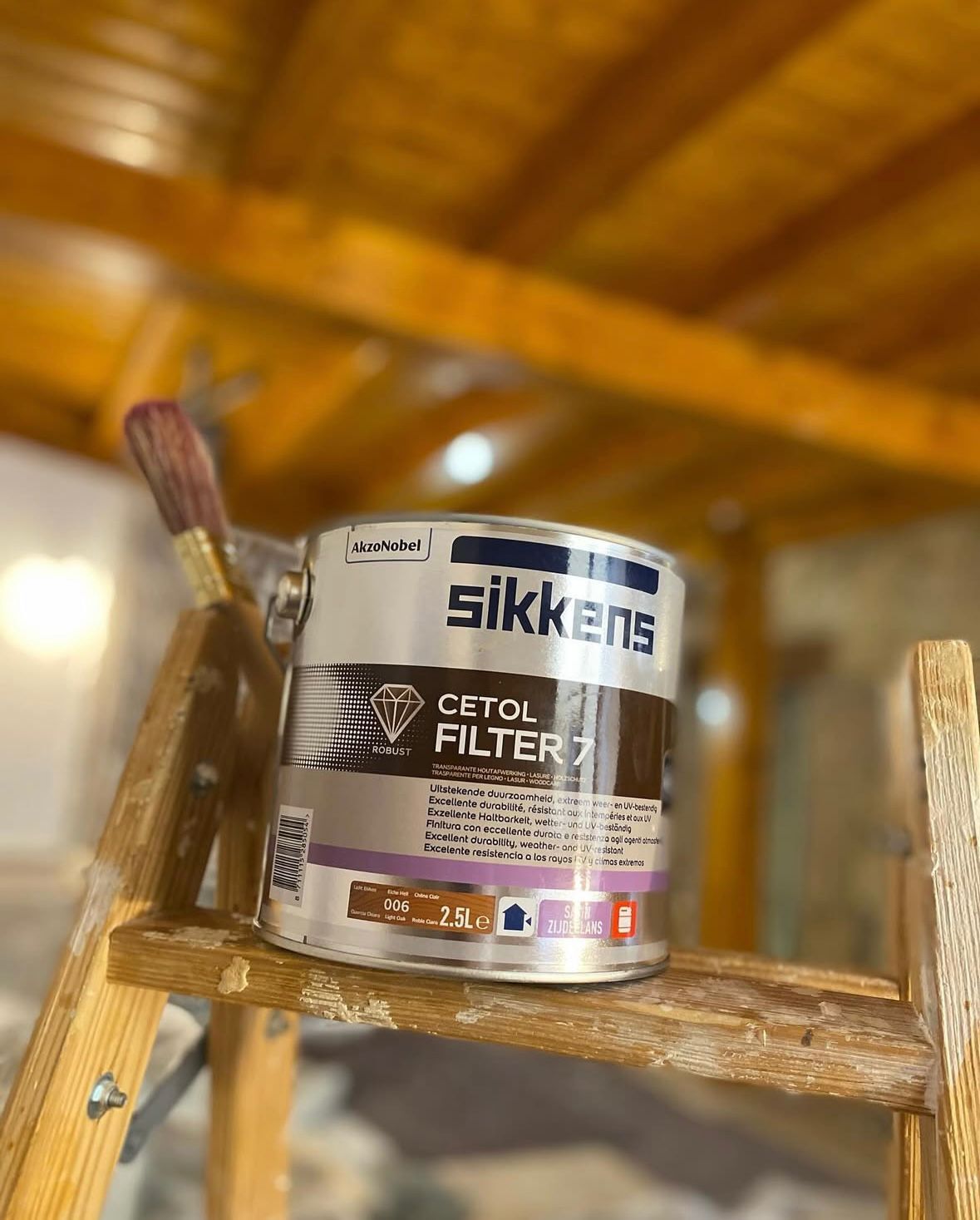Aplicación de lasur en vigas de madera :