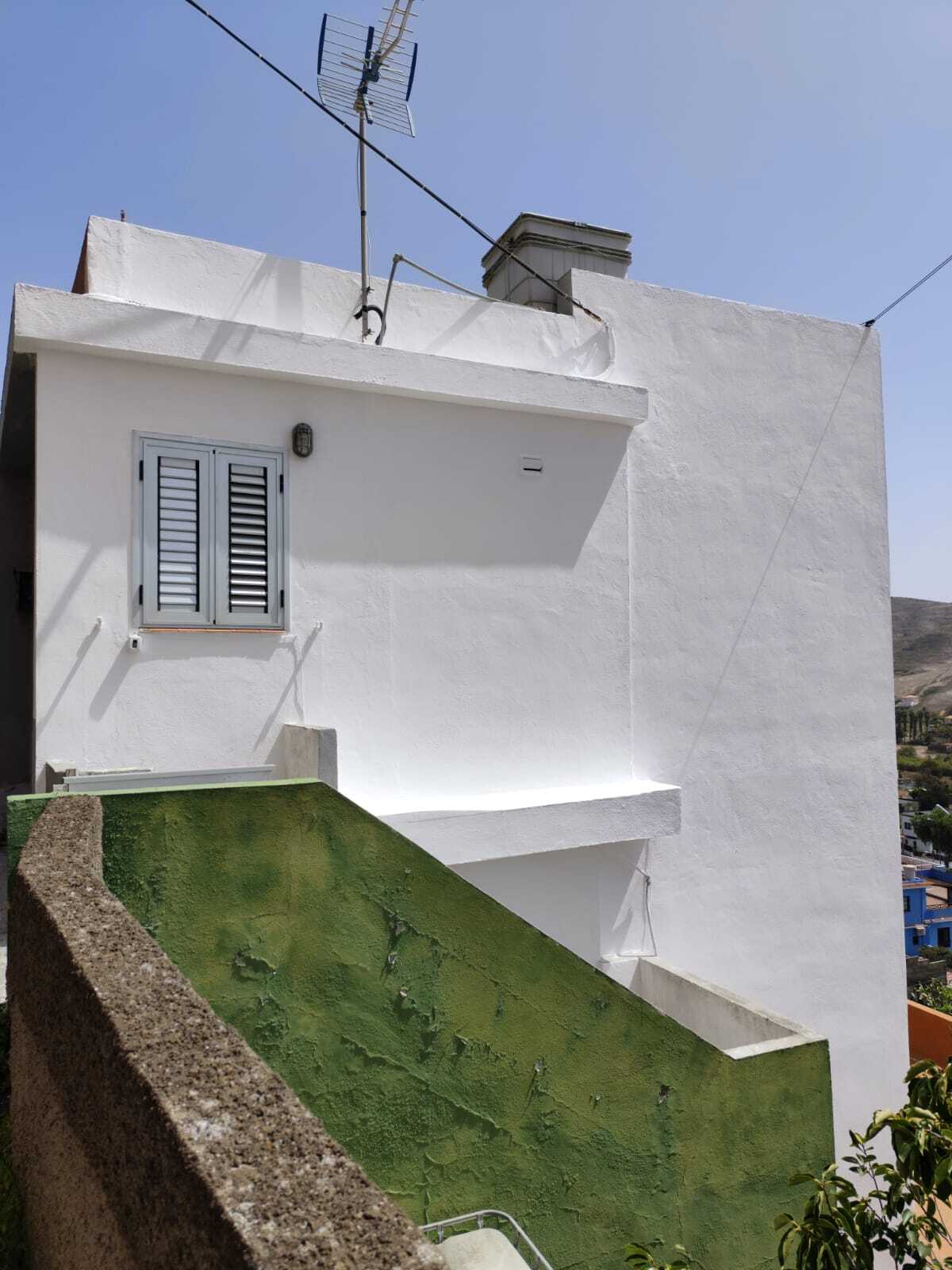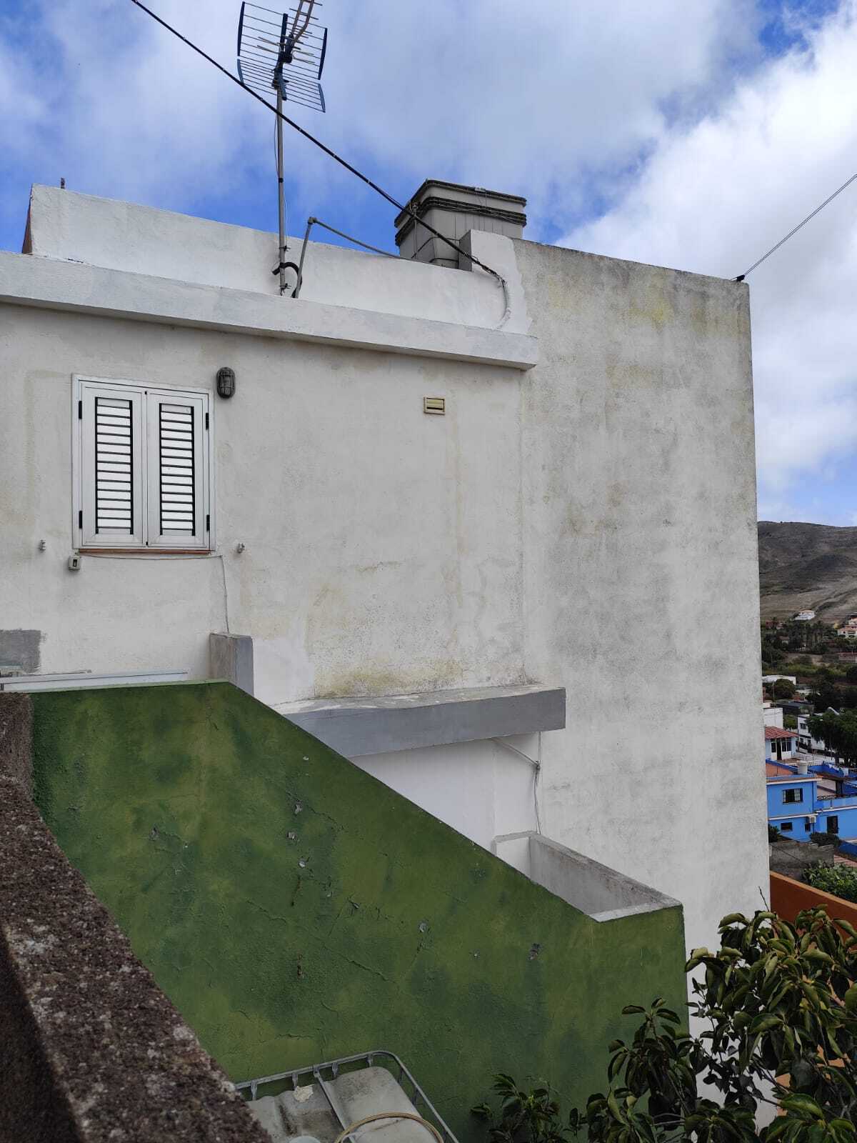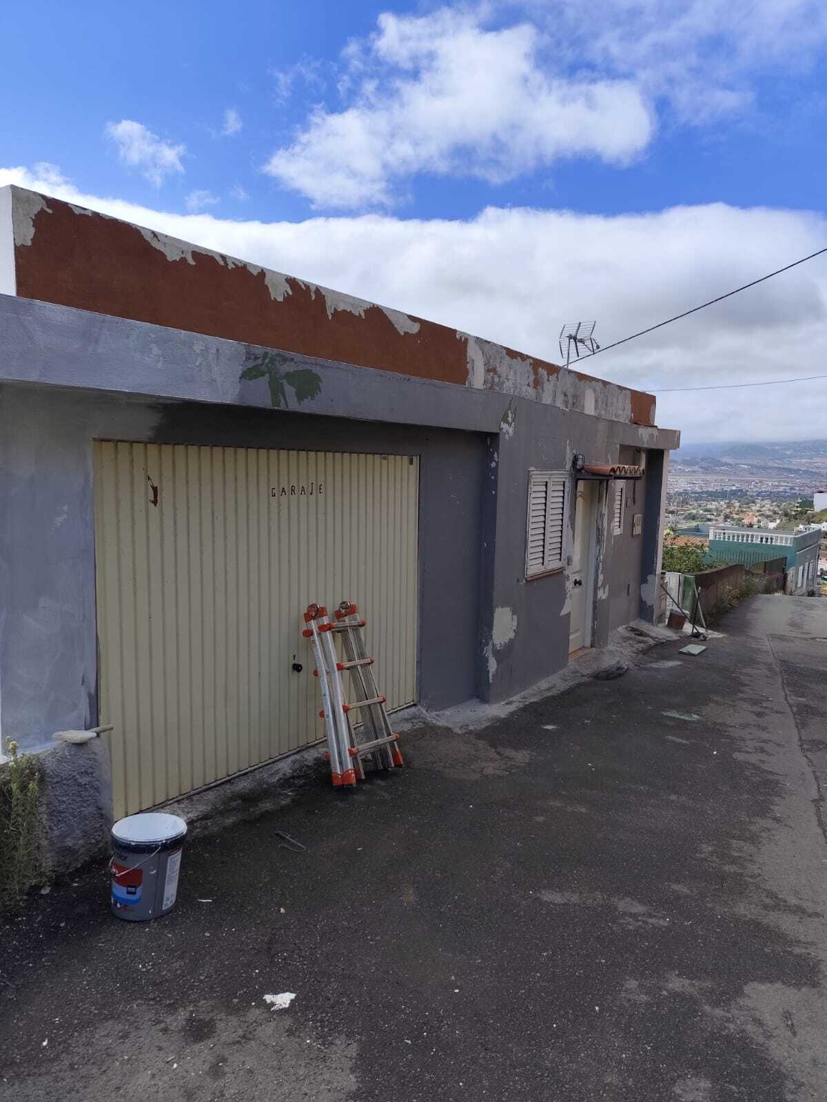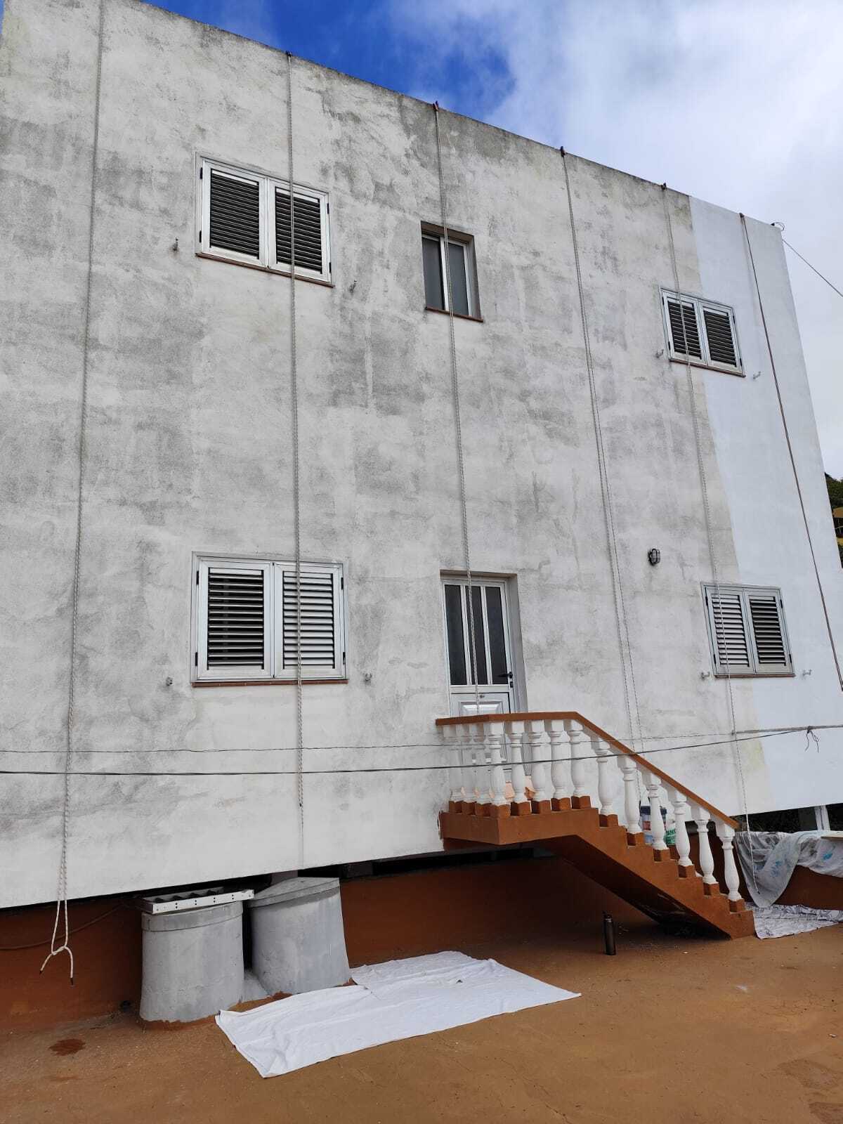 Rehabilitación de fachada deteriorada con el paso del tiempo y inclemencias del tiempo. Se retira todo el moho con hydrolimpiadora y nos ayudamos de Dique Antimoho. Se aplica masilla de fibra en grietas y desperfectos y se imprima con Hydroprimer y tres manos de Proexil.