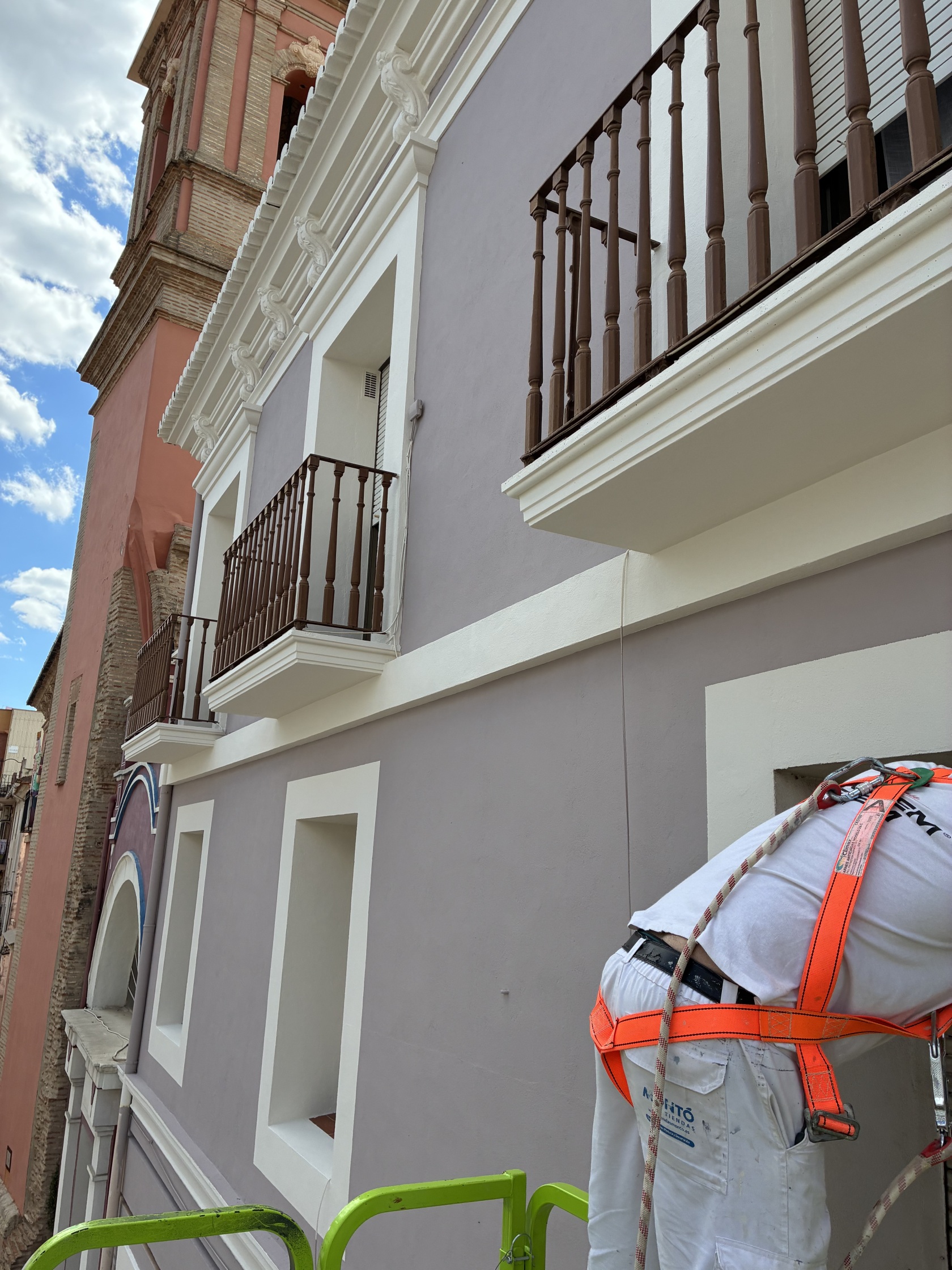 Aplicación de pintura en fachada de Residencia San Vicent Ferrer de Algemesí.