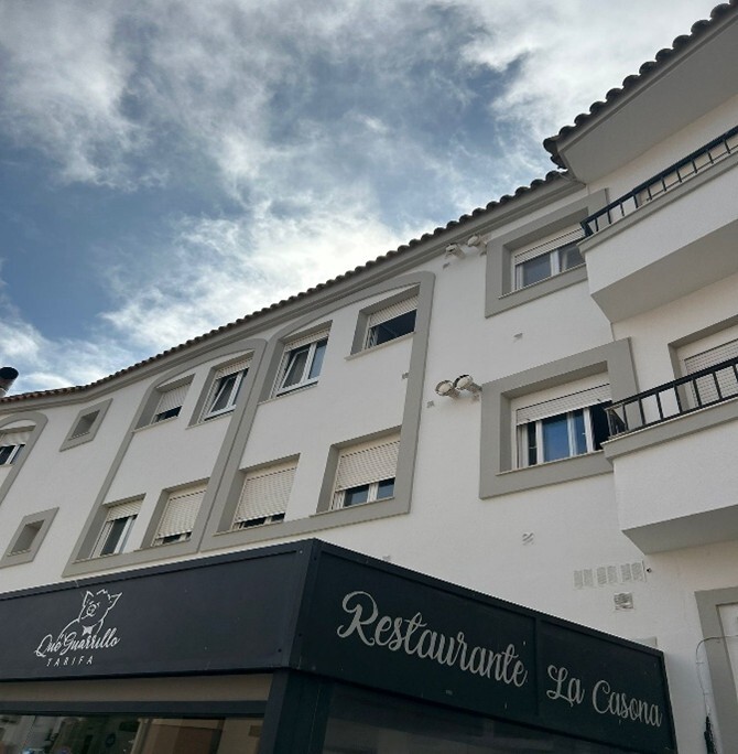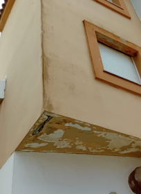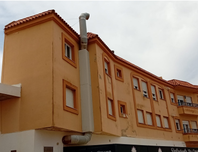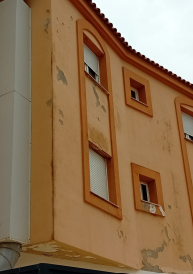 Rehabilitación en Tarifa (Cádiz), dada la falta de mantenimiento, y situación del inmueble a merced delas inclemencias climatológicas, se colocan bajantes, y canalones para que el agua drene de los tejados, se sanea con SOLUCIONES ANTIMOHO de Procolor