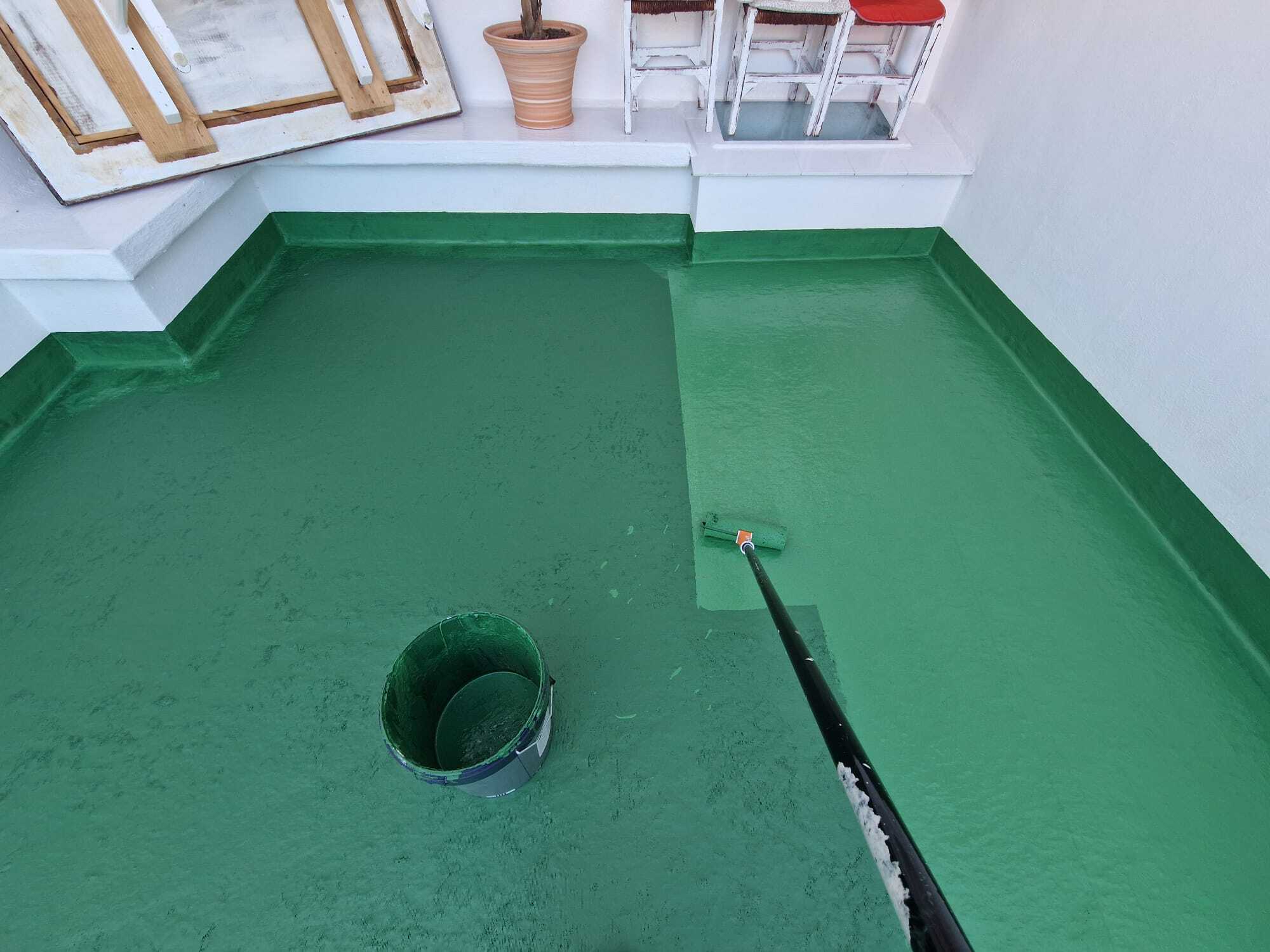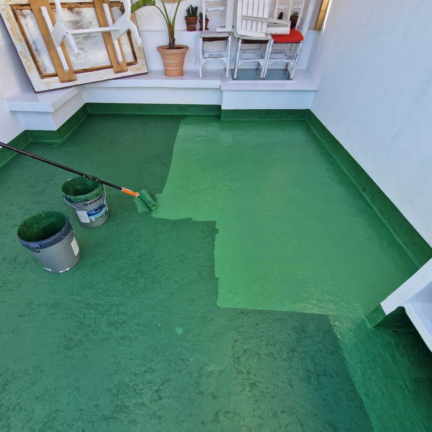 Posteriormente se instaló una malla de fibra en toda la superficie y se finalizó con el impermeabilizante Procolor Dique en color verde.