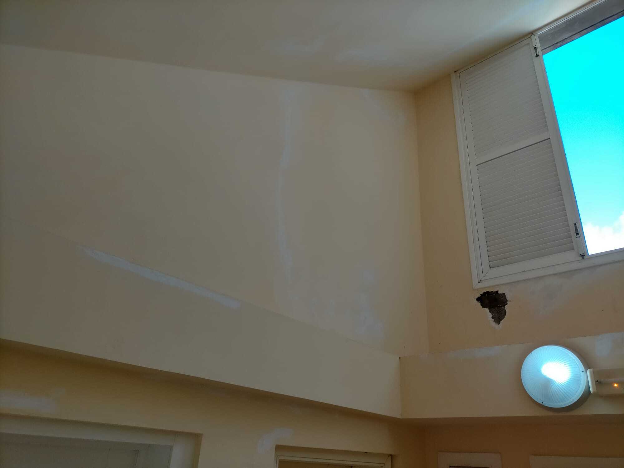 Nuestra intervención consistió en la limpieza de superficie, a continuación se resano la superficie de micro fisuras y golpes. Y para finalizar se aplicó 2 Capas de pintura Procolor Sideral 500 Color pastel.