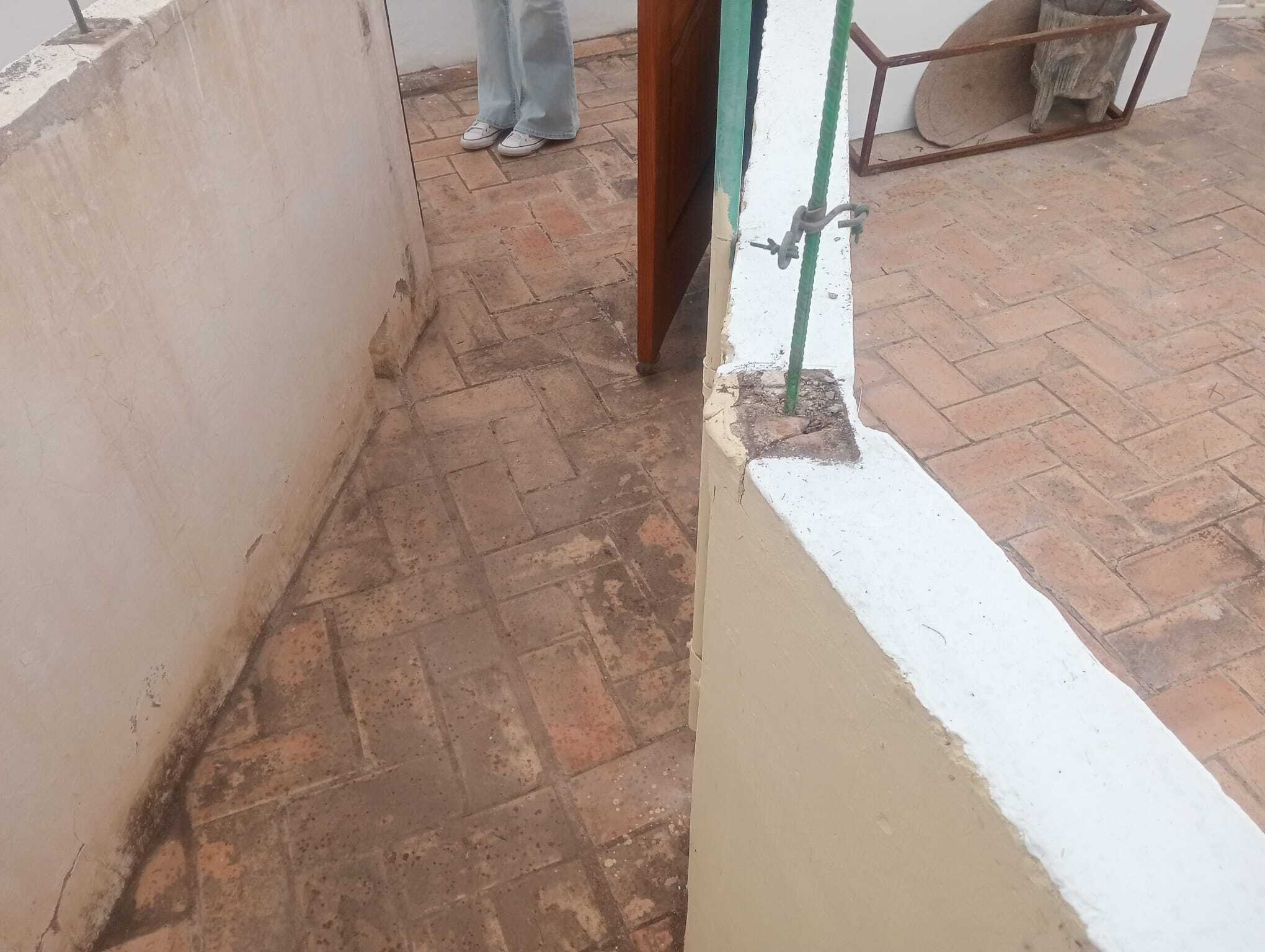 Nuestra intervención consistió en el raspado exhaustivo y limpieza de la superficie, se reparó con mortero R-4 y masillas de fibra,previa aplicación de capa de fijador Procolor Procofix y terminación con revestimiento Procolor Renovather color Blanco.