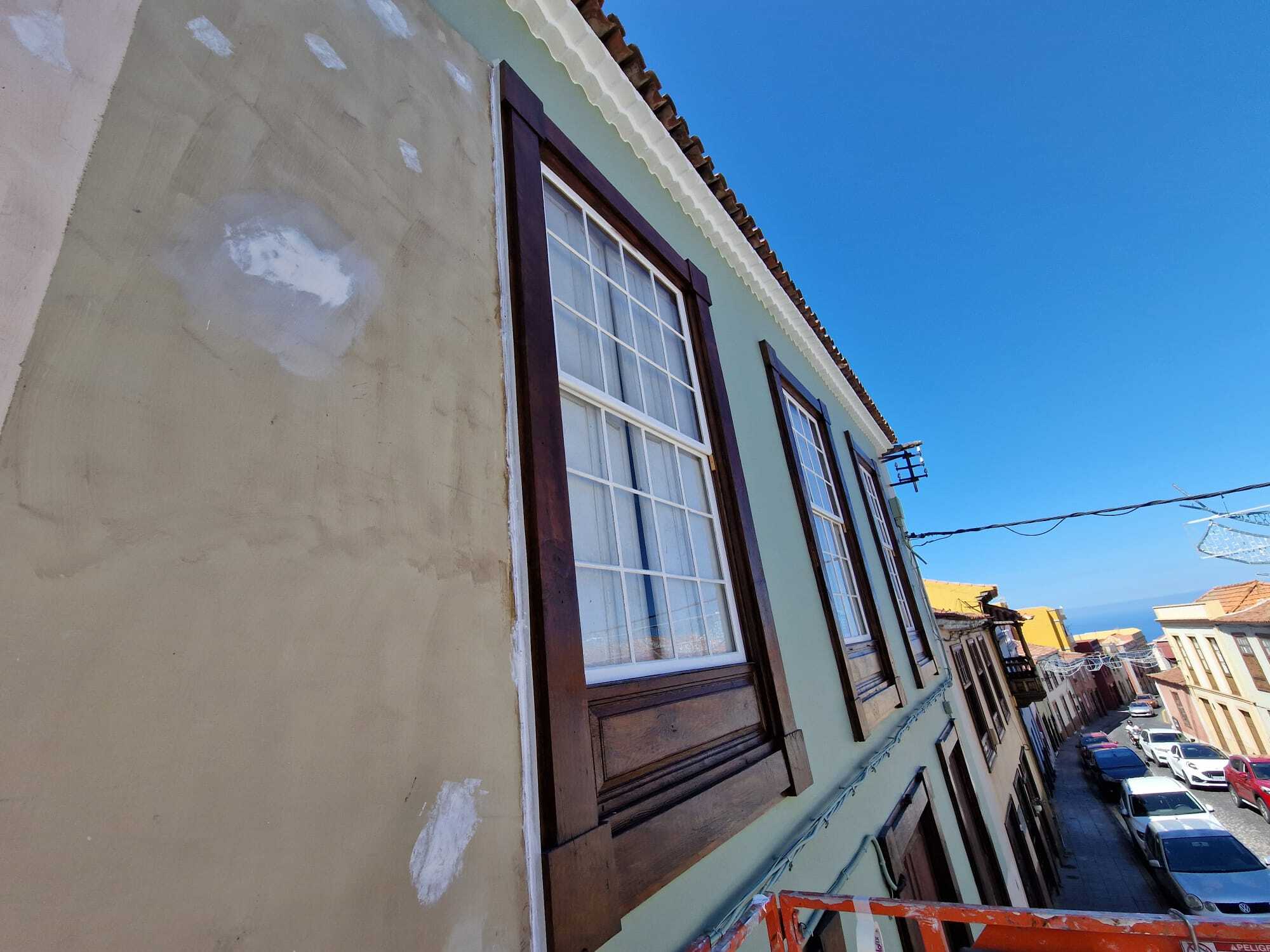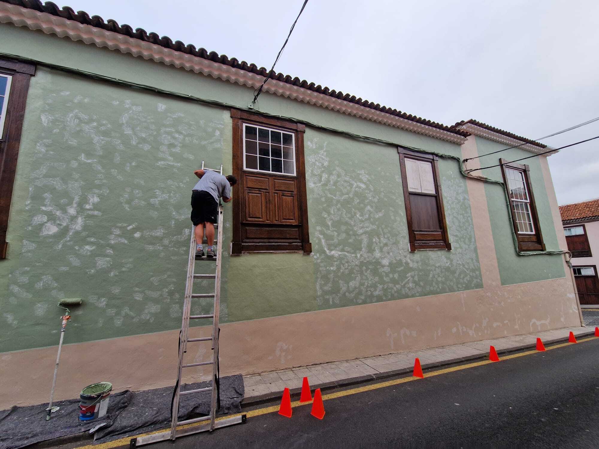 Esta fachada histórica ubicada en el casco antiguo del municipio se requería la renovación completa de la misma mantenimiento su originalidad lo máximo posible. Por eso el cliente eligió una paleta de colores acorde a los que se utilizaban en su época.