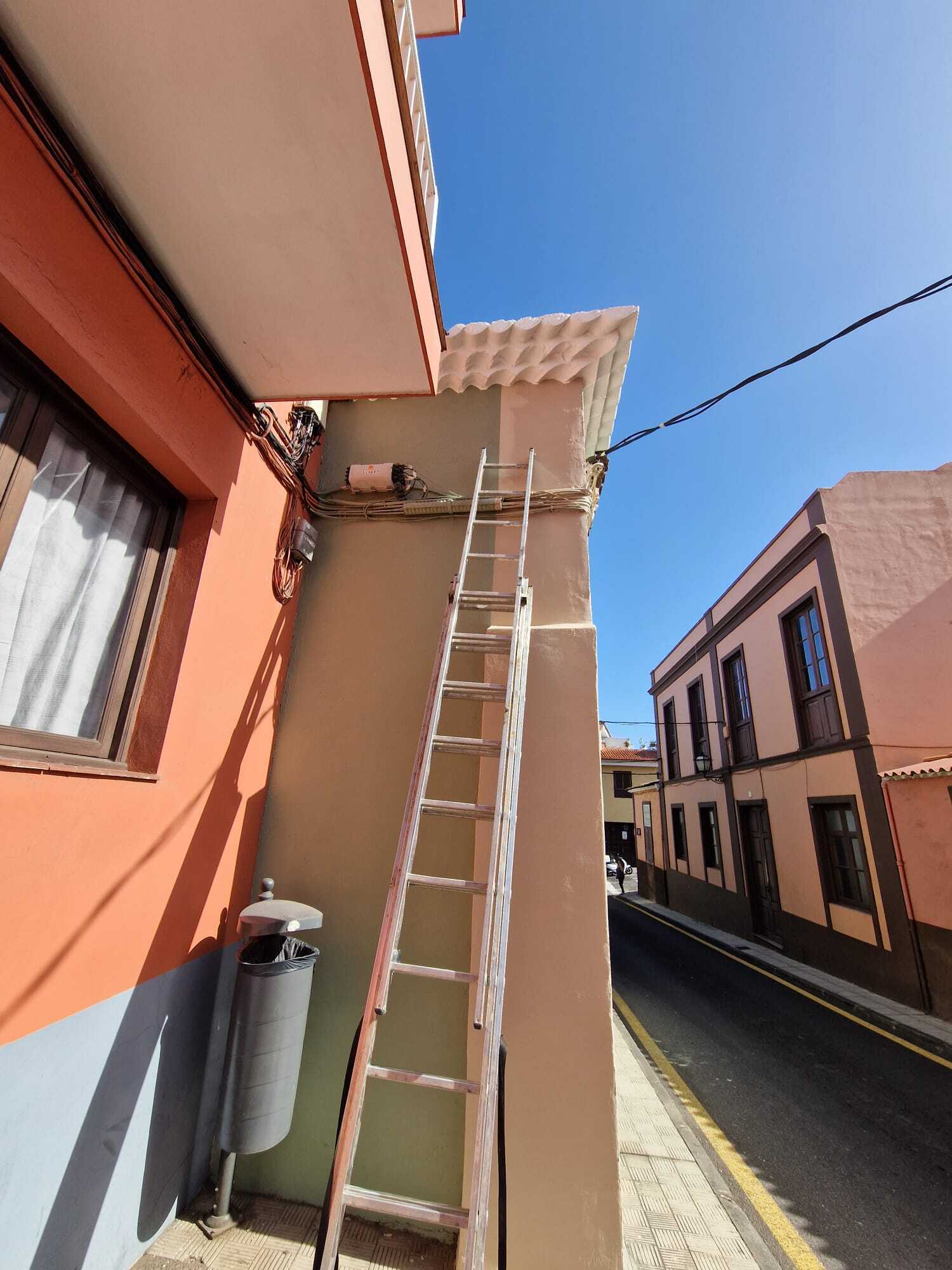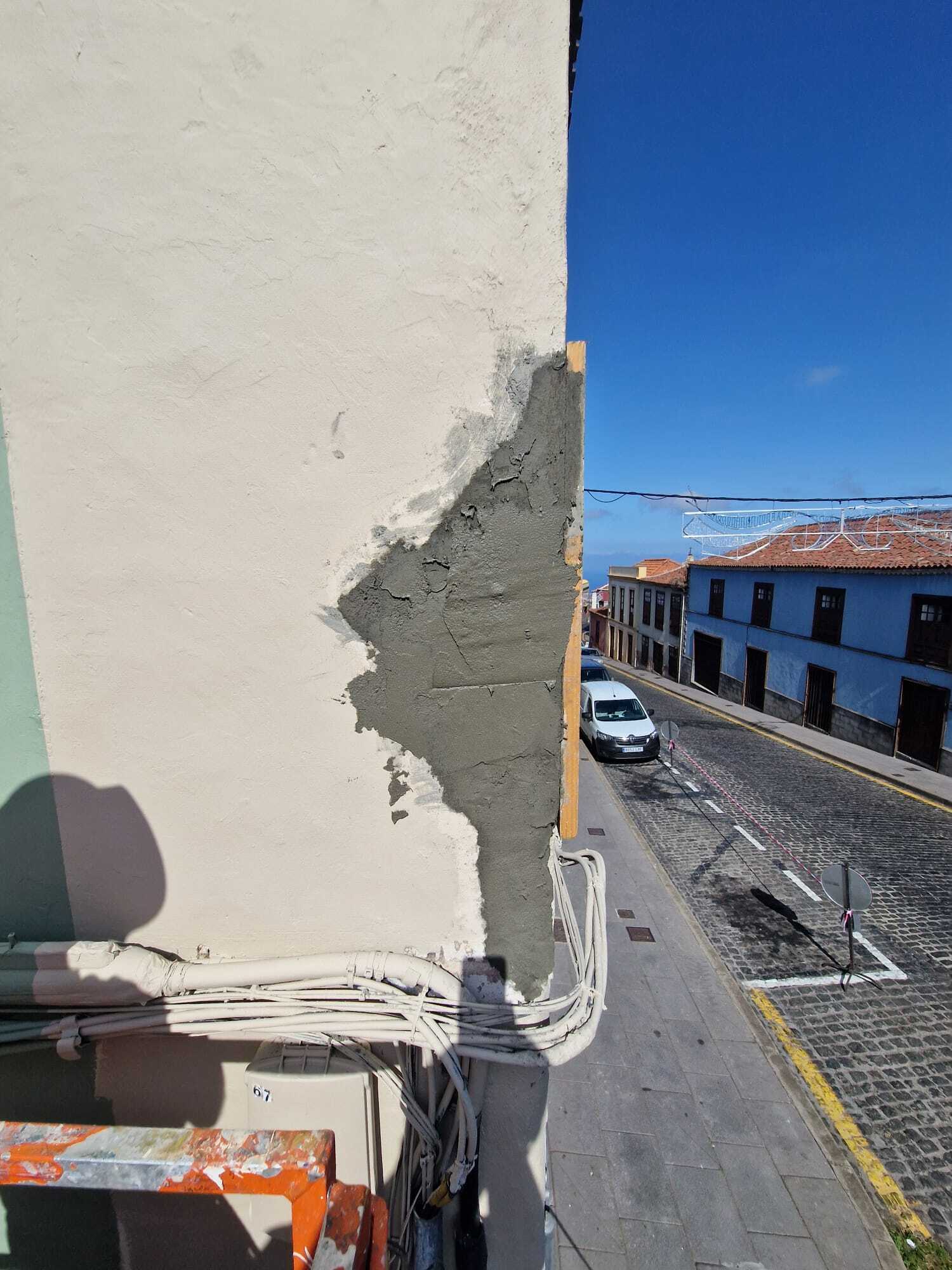 Nuestra intervención consistió en la limpieza de superficie, a continuación se aplicó una capa de fijador Procofix. En el alero se aplicó 2 capas de Procolor Renovatherm color blanco. Trabajos previos de reparación con masillas de fibra se realizó la finalización con el revestimiento Procokril mate.