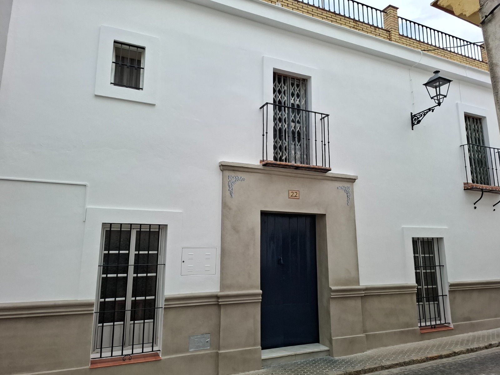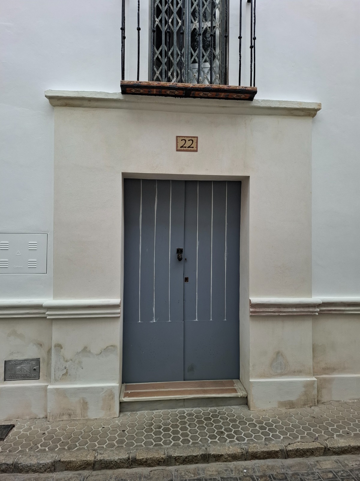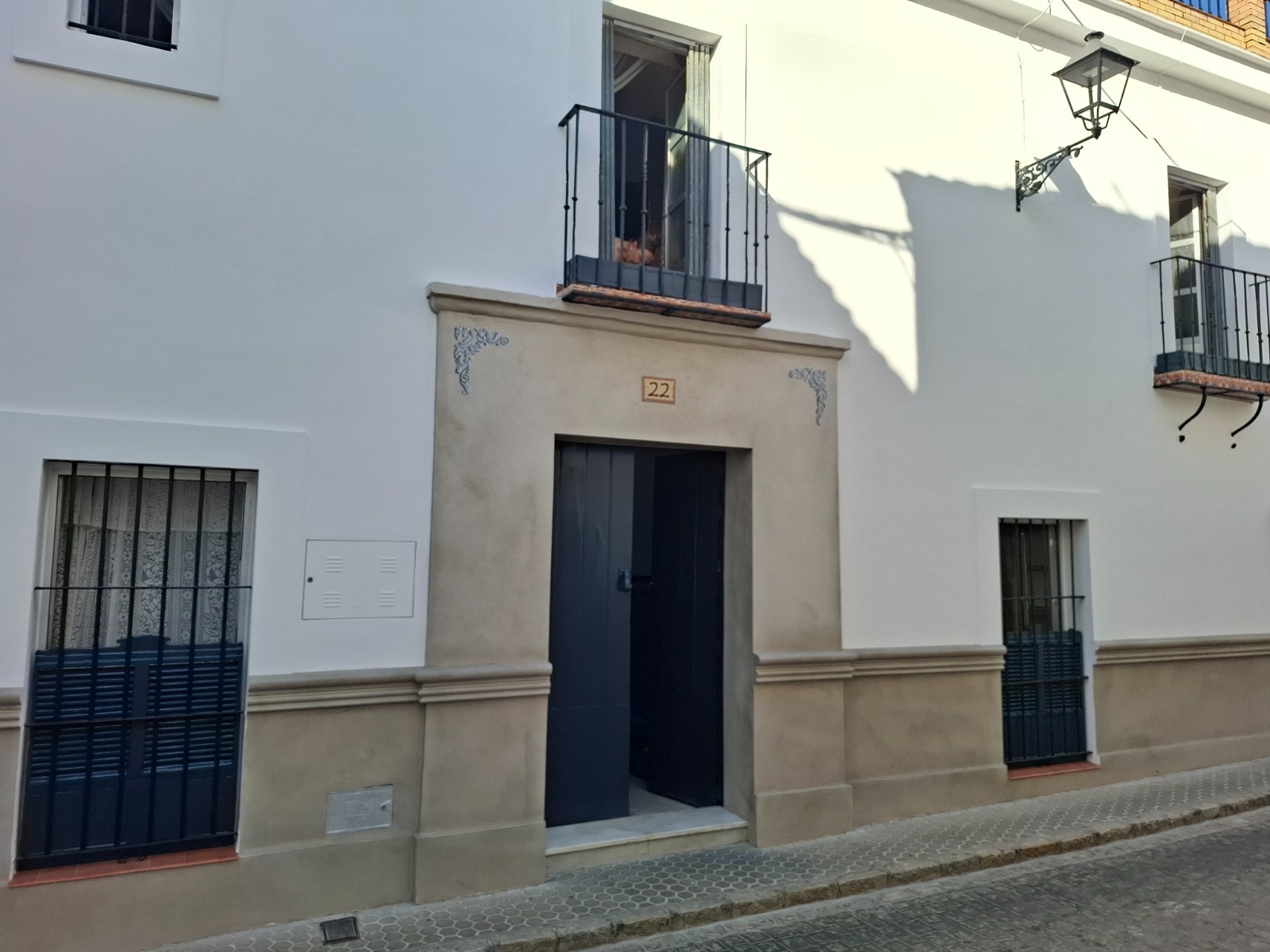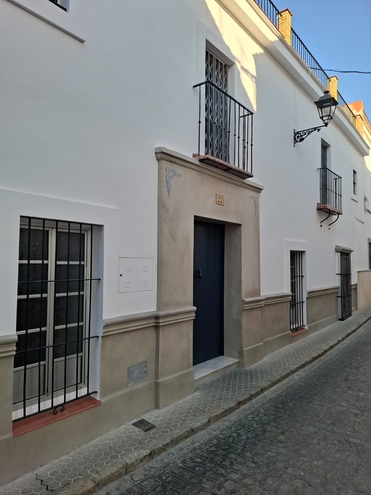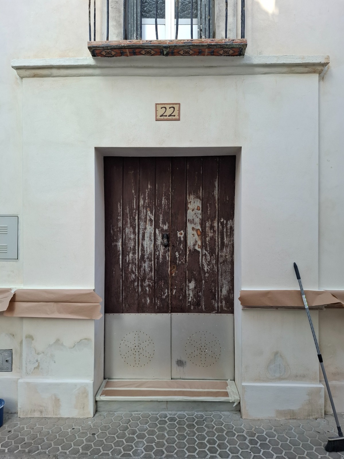 5- Aplicación de mortero de cal Alhíja en zócalo y mocheta entrada para posteriormente proteger y envejecer mediante barniz acrílico satinado tinte Procobar.