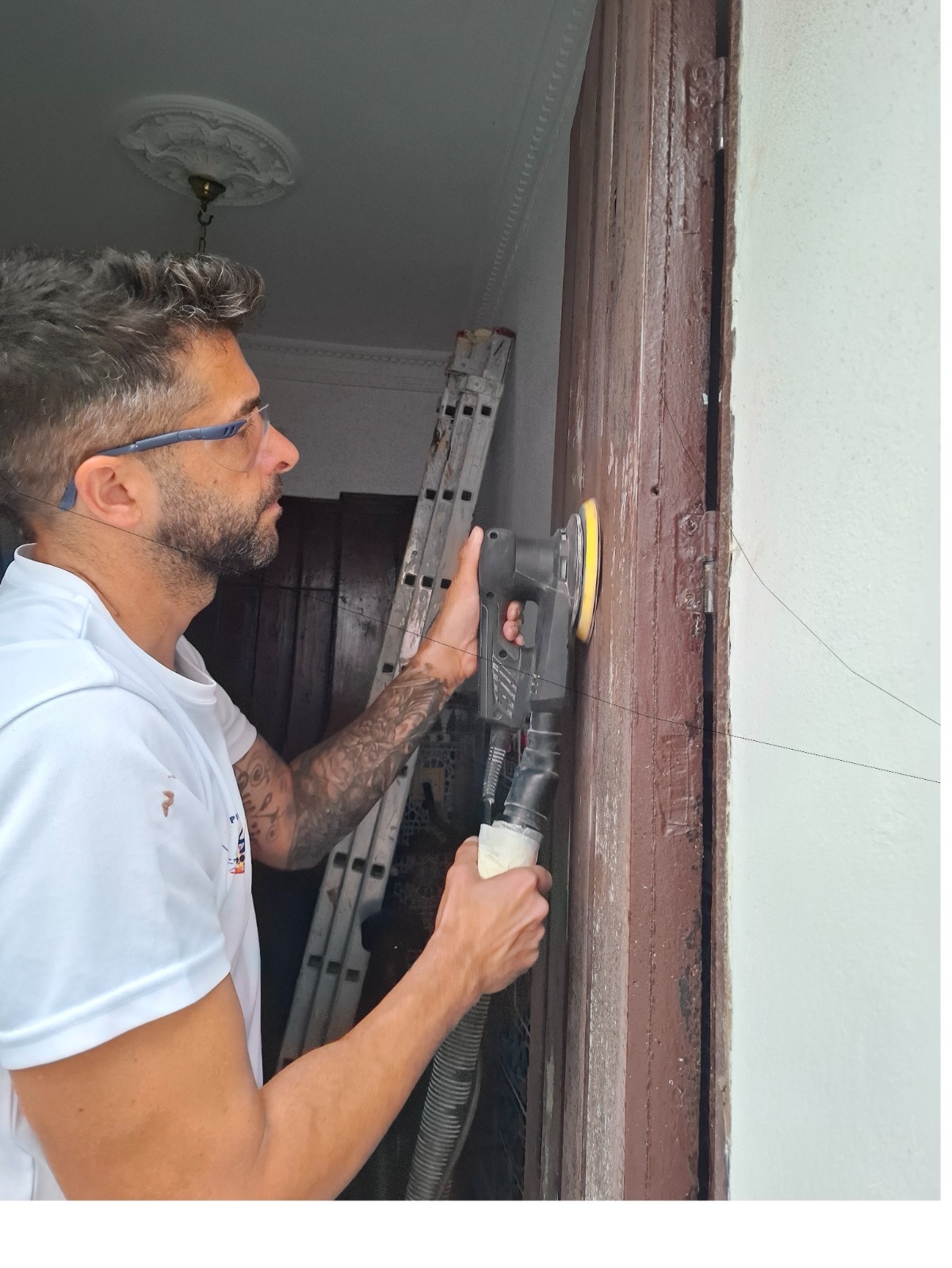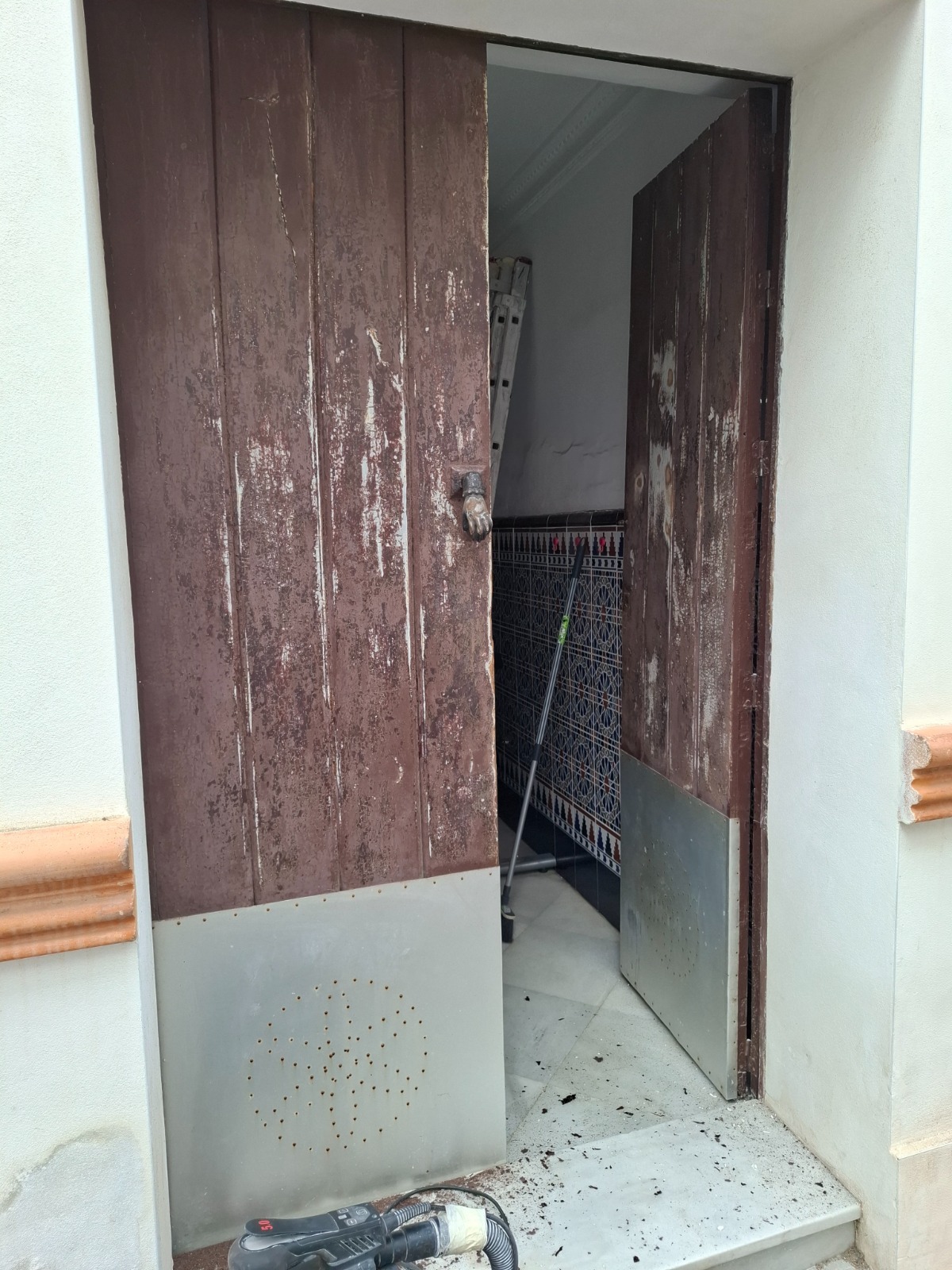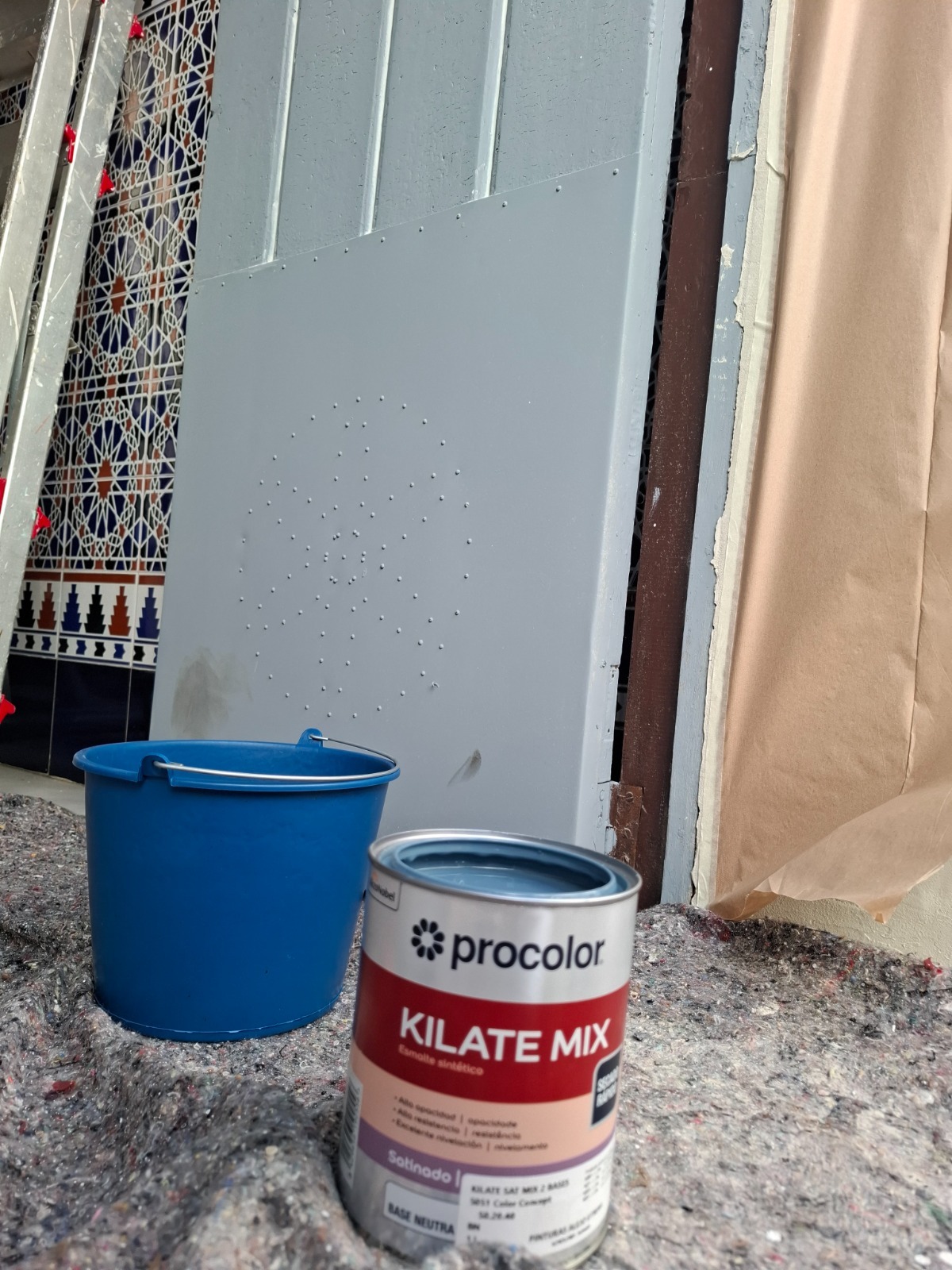 4- Reparación y pintura de puerta entrada mediante esmalte sintético satinado color referencia kiate.