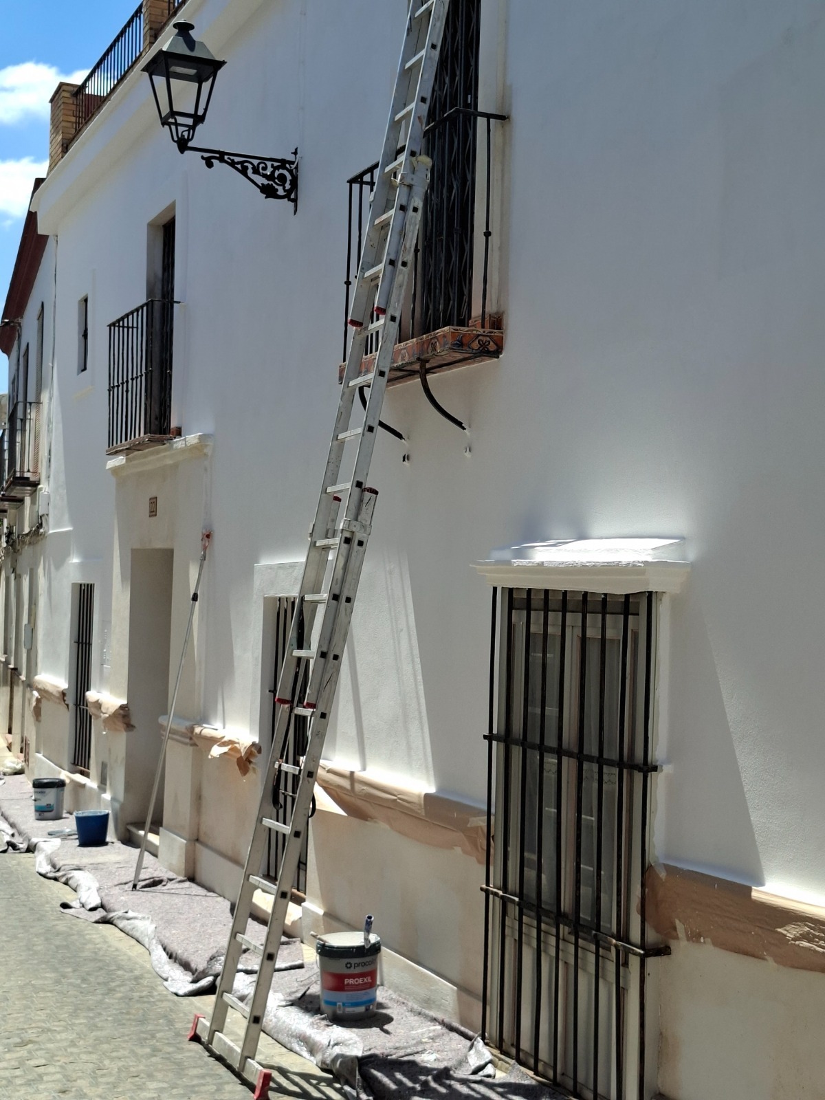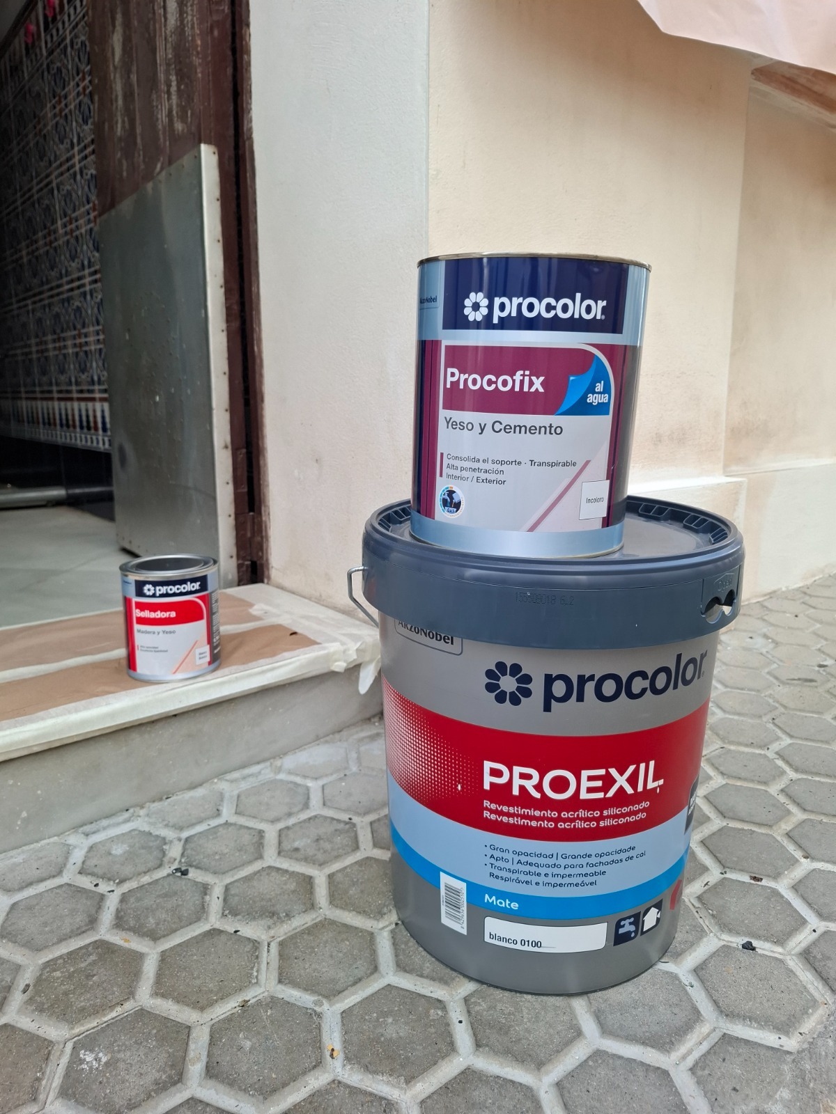Pintura completa de fachada mediante revestimiento siliconado proexil de Procolor blanco.