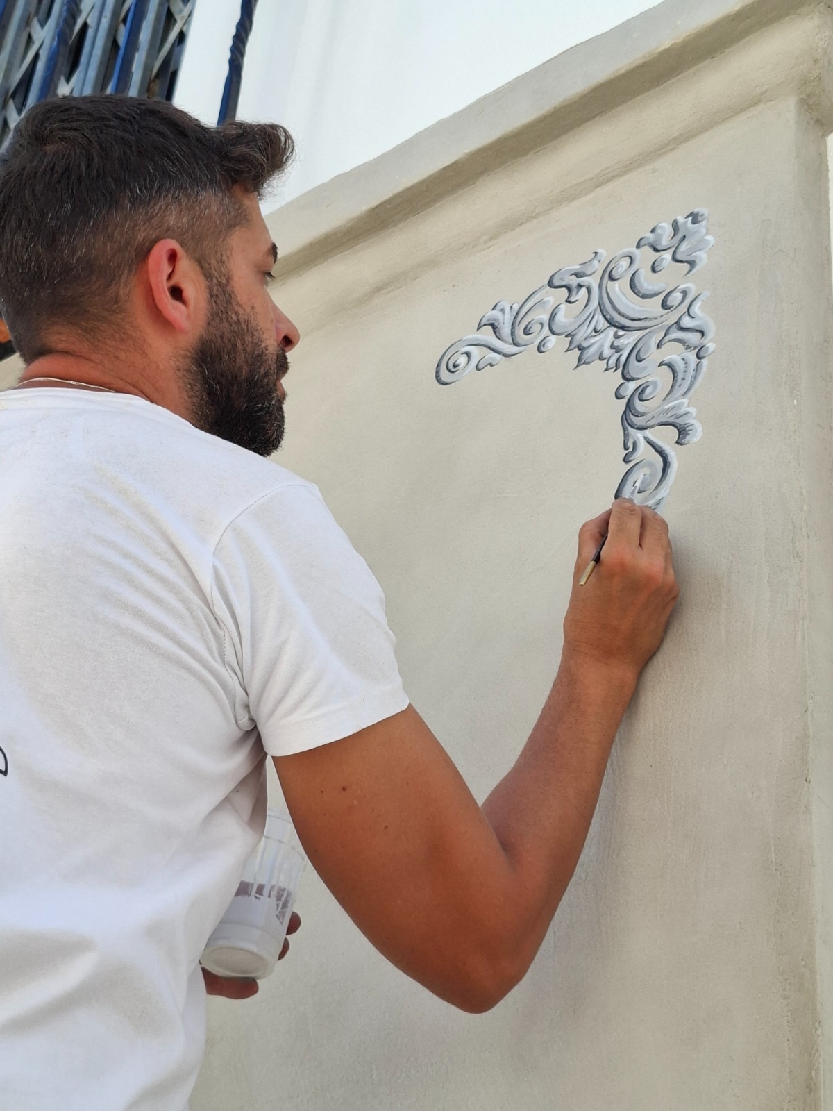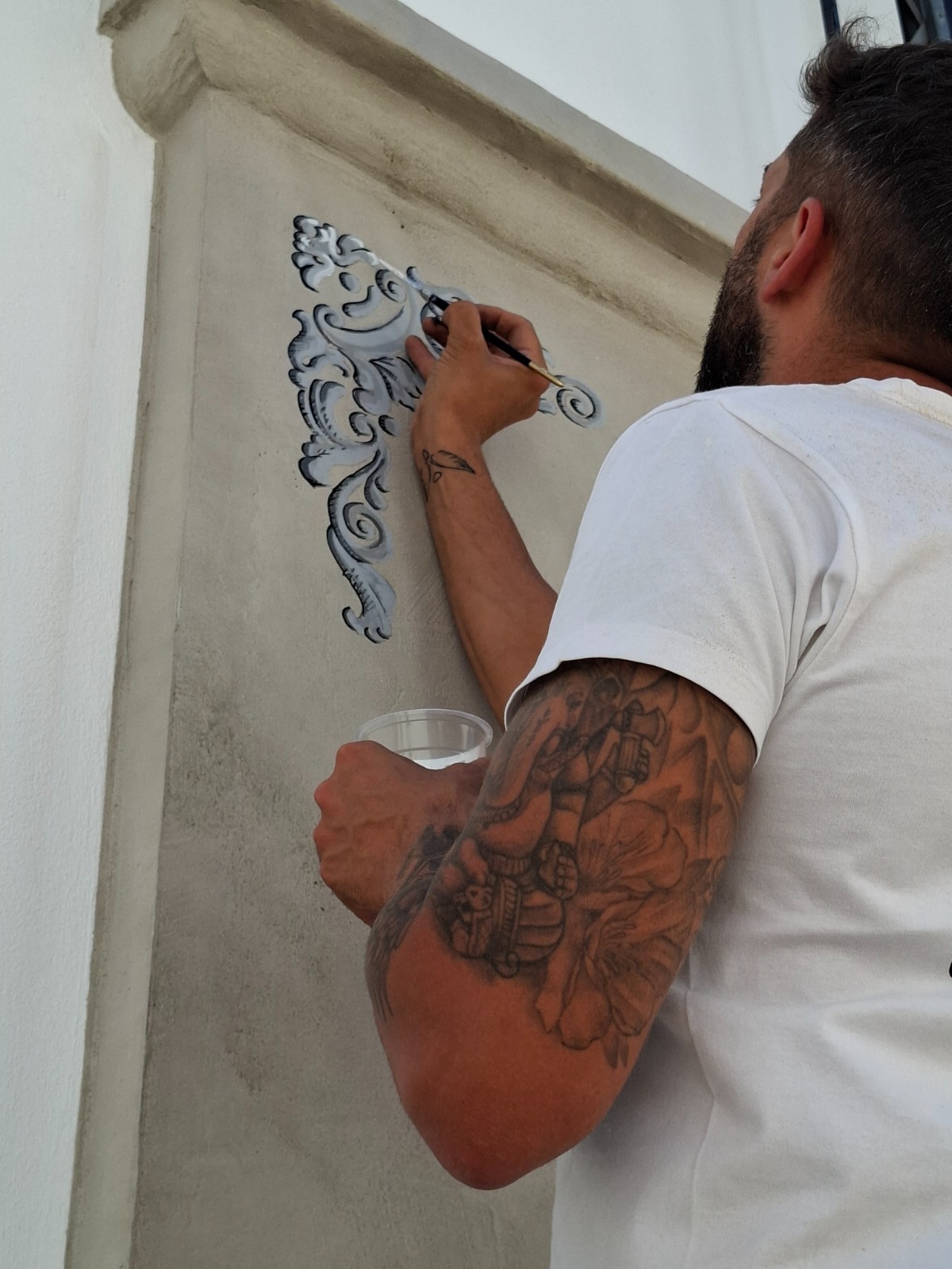 6- Por último decoración de mocheta principal mediante grisallas realizadas con esmalte acrílico Acritec de Procolor.