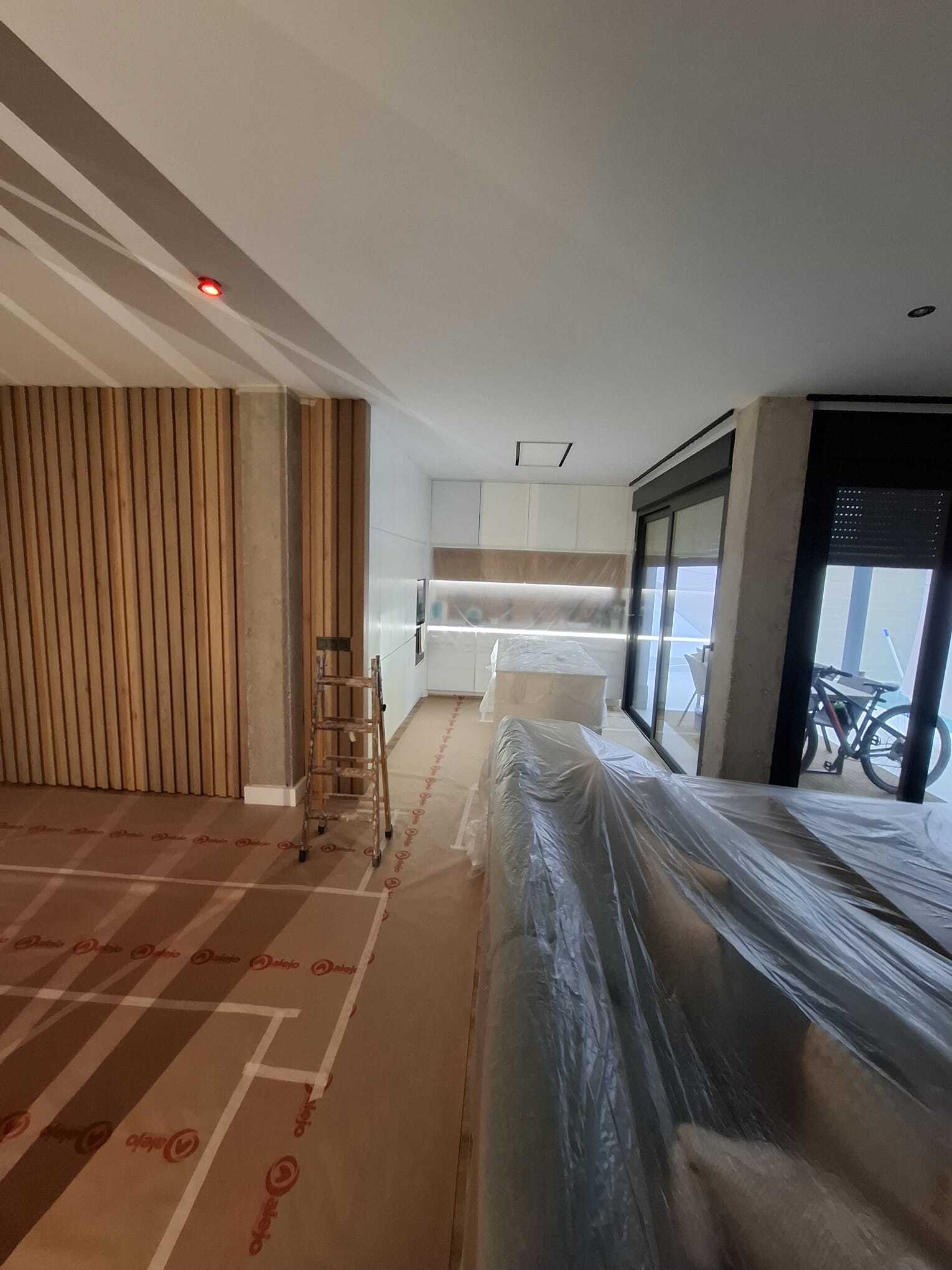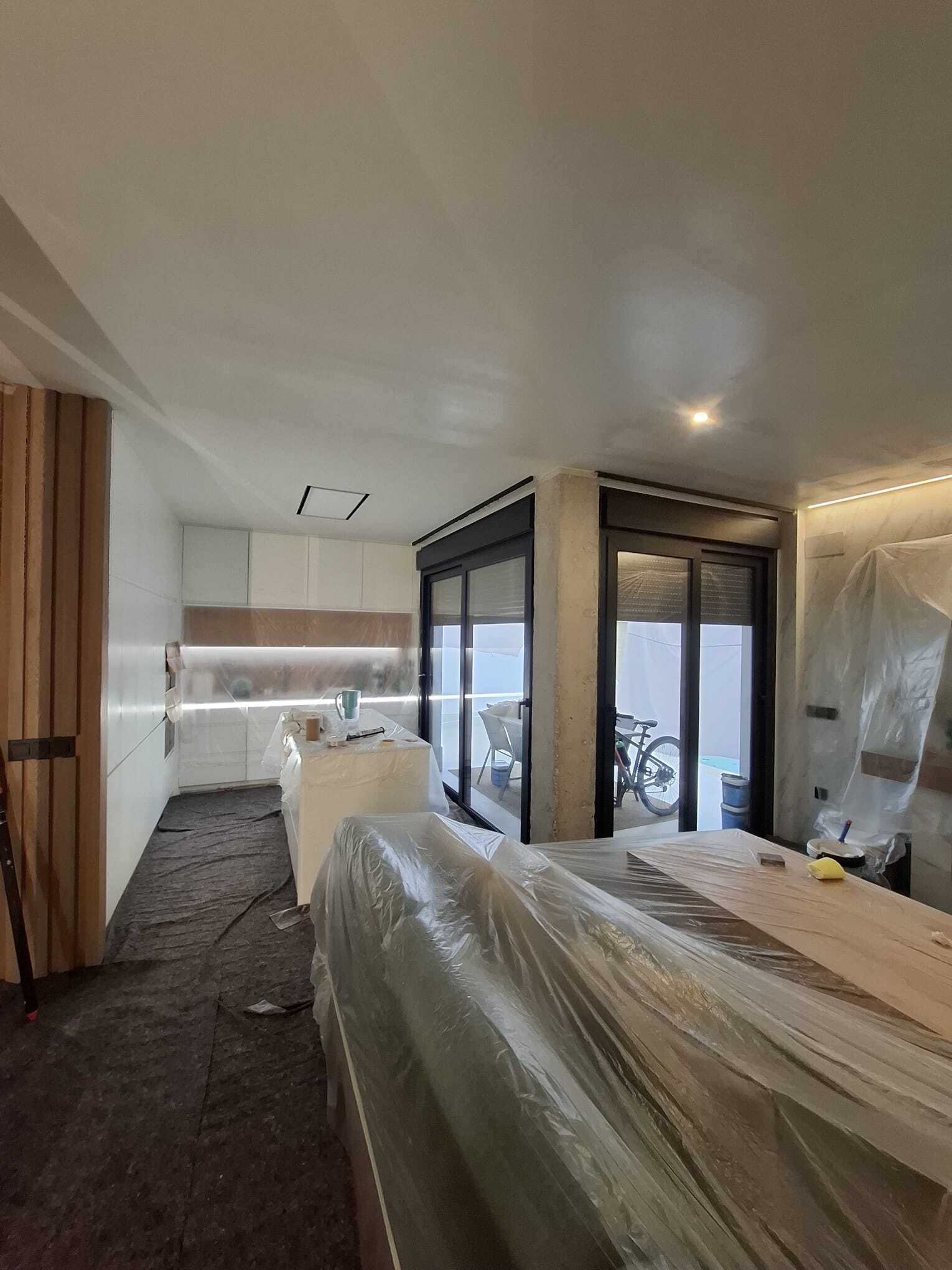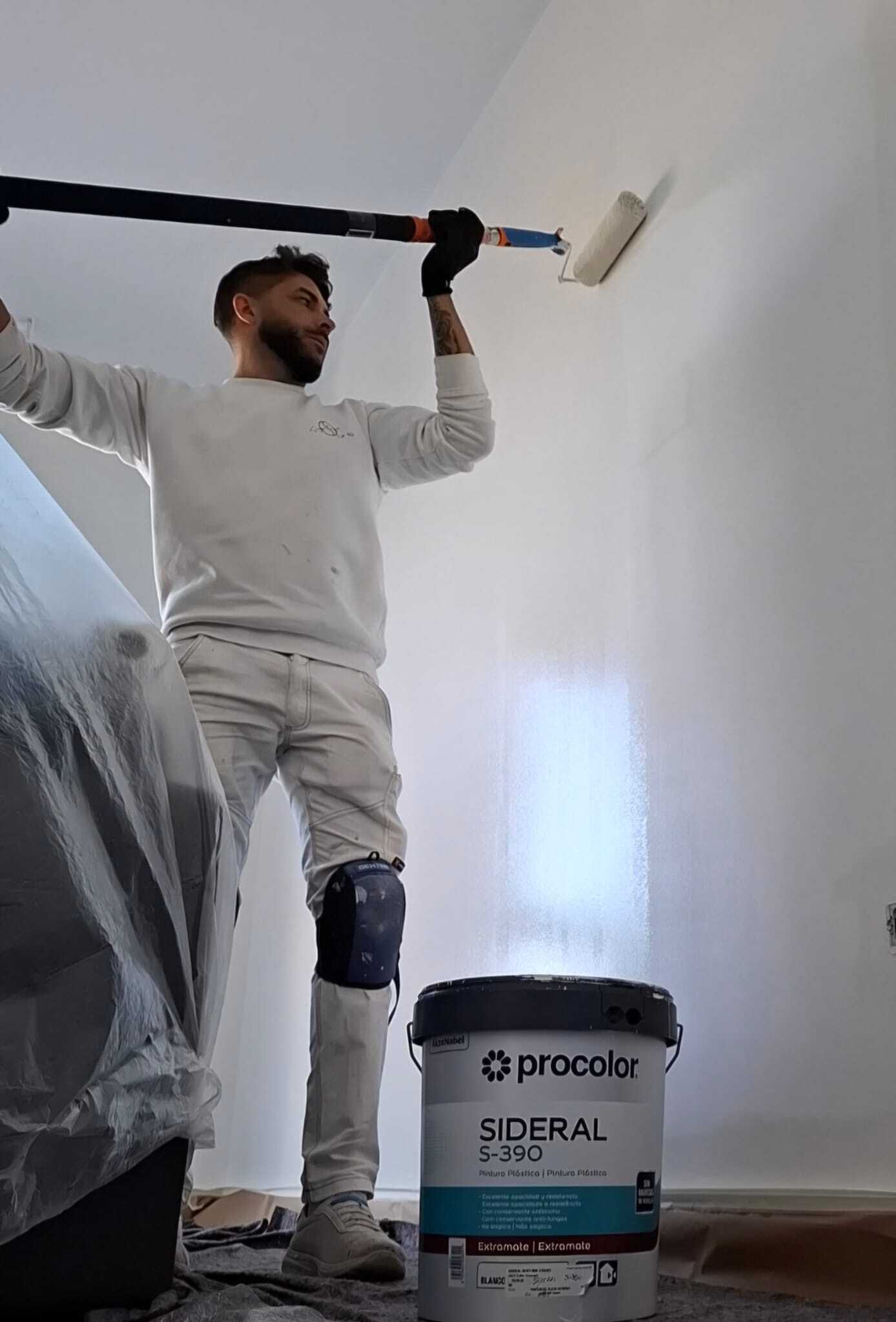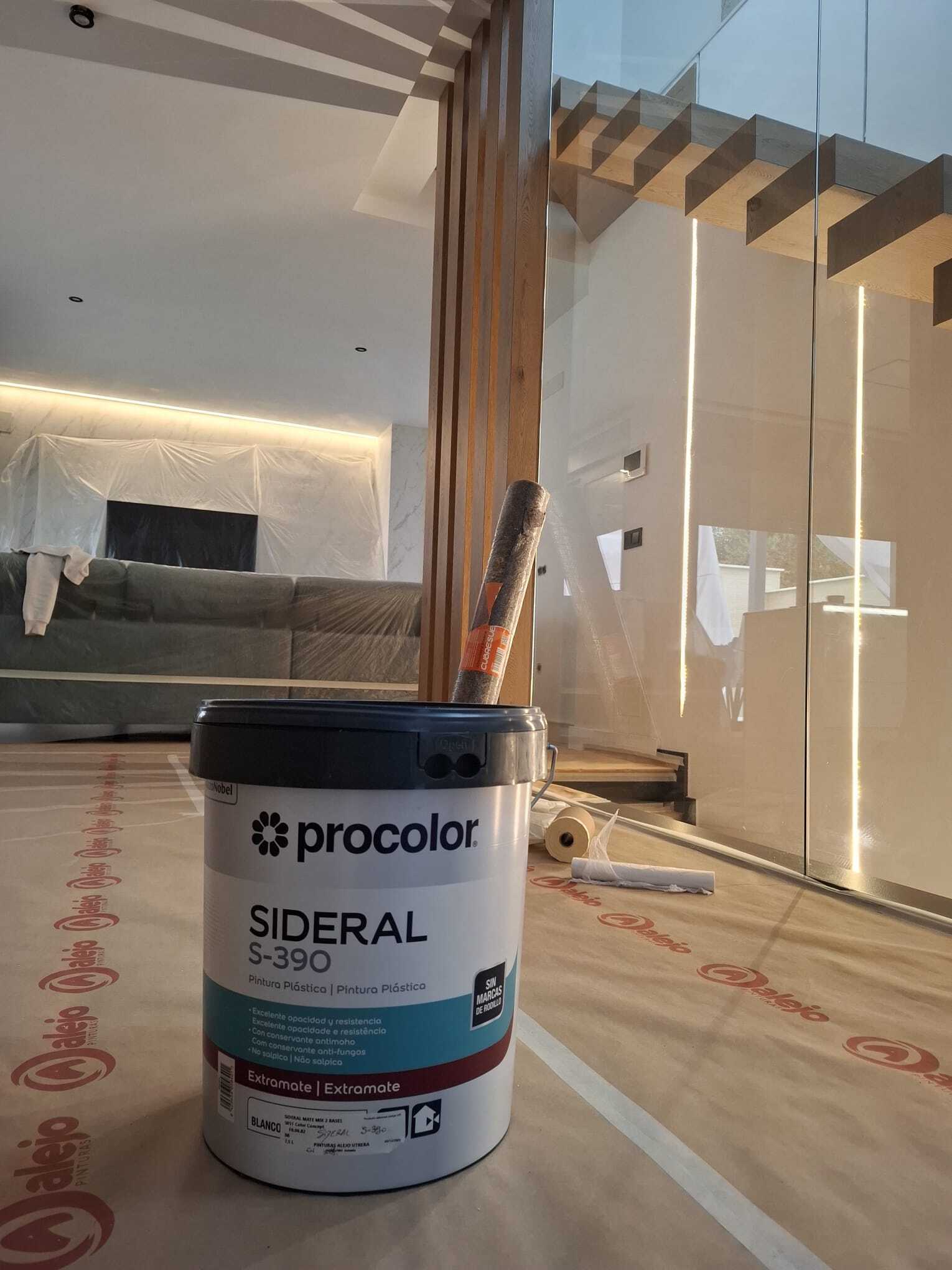 3- pintura completa de vivienda mediante Sideral 390 de Procolor en blanco roto para todas las superficies v así resaltar las diferentes decoraciones como Estucco veneciano marmoleado en escalera además de limpieza y aplicación de tratamiento hidrofugo en hormigón visto.