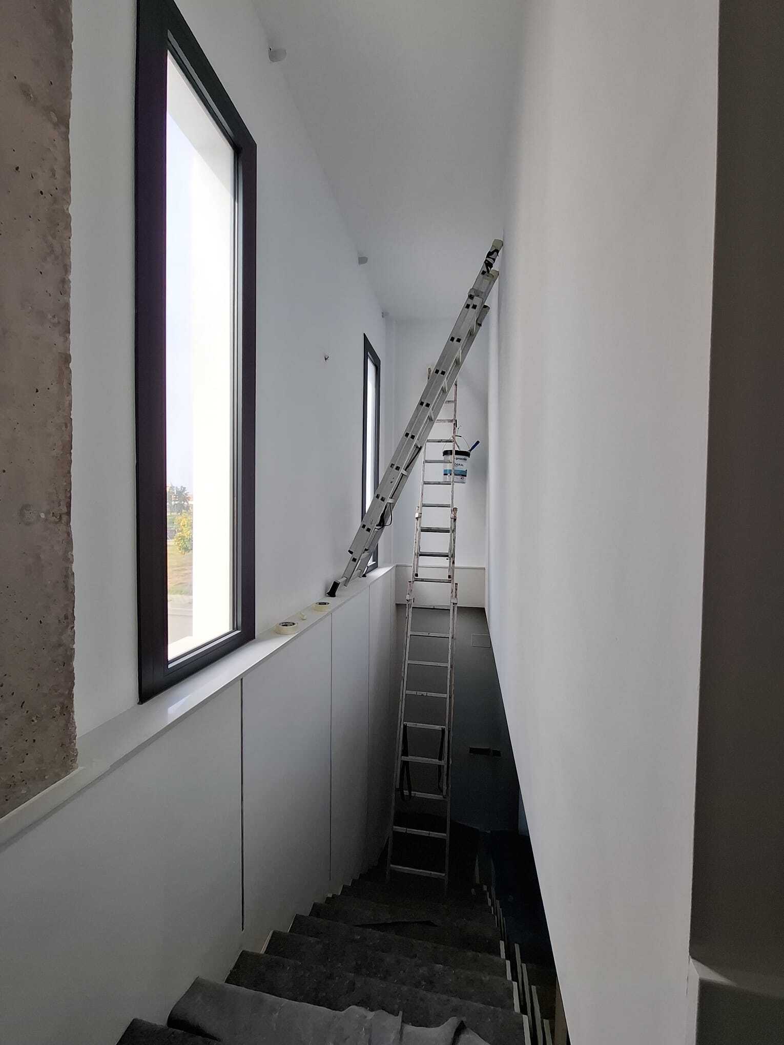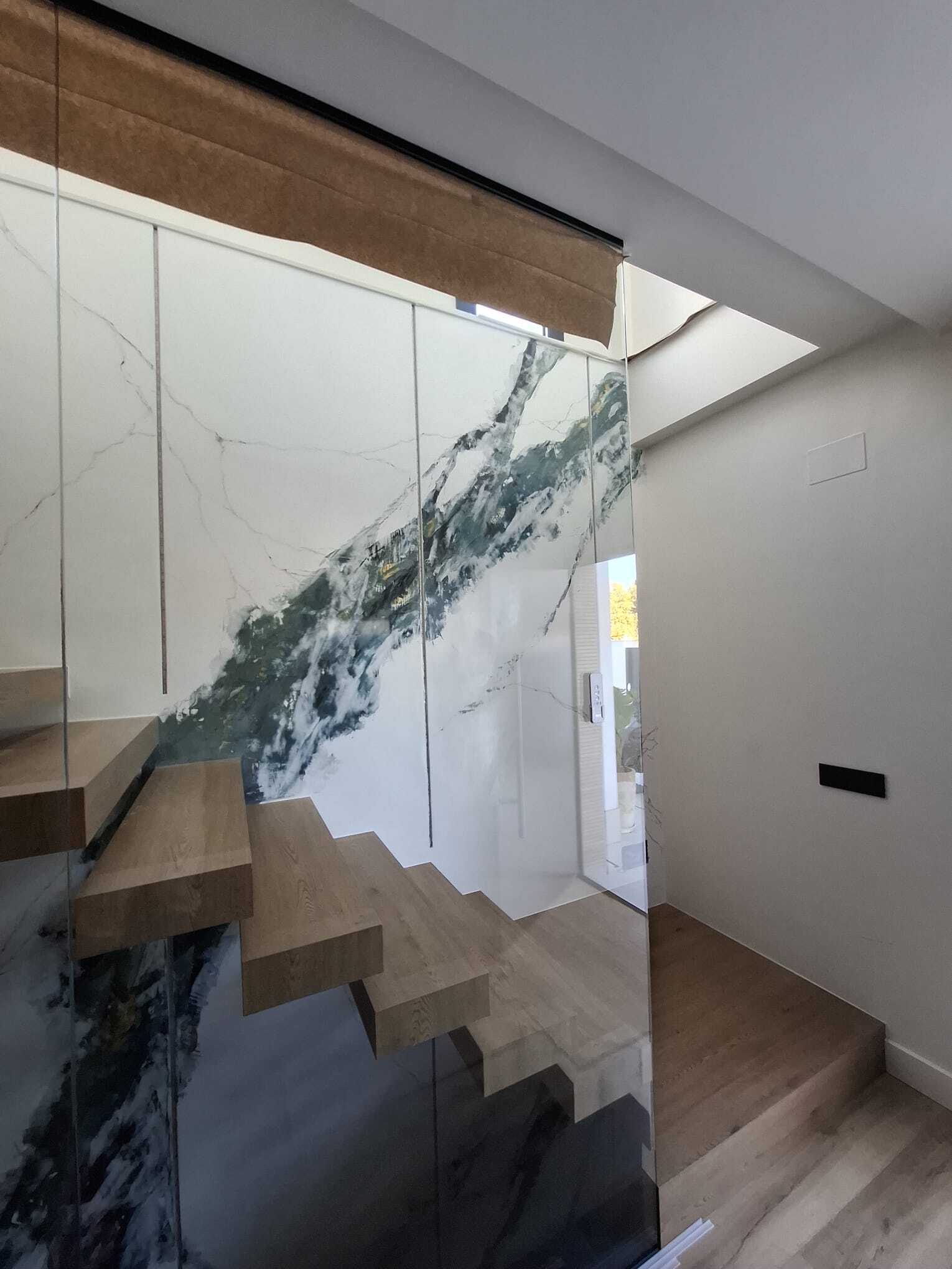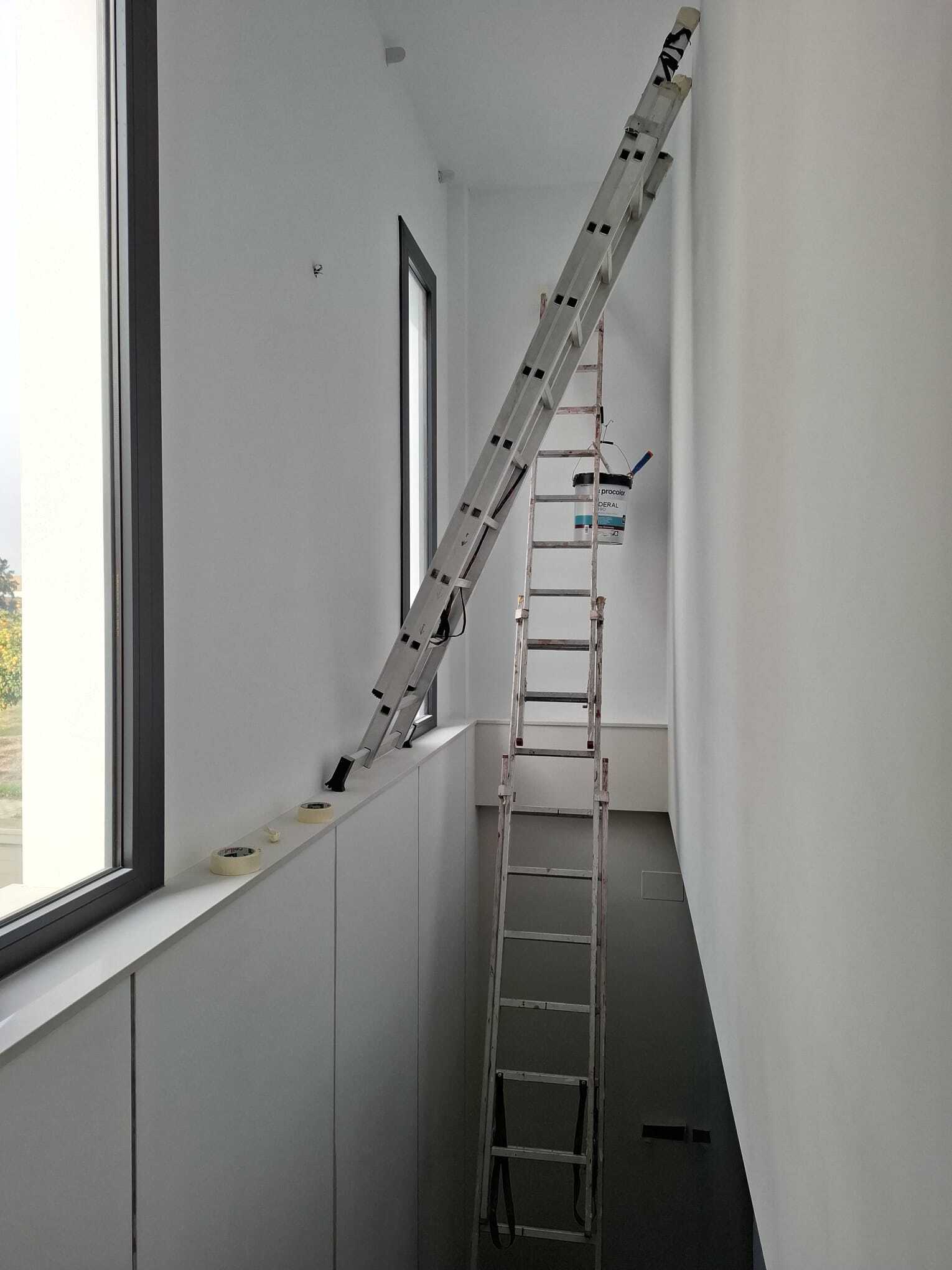 3- pintura completa de vivienda mediante Sideral 390 de Procolor en blanco roto para todas las superficies v así resaltar las diferentes decoraciones como Estucco veneciano marmoleado en escalera además de limpieza y aplicación de tratamiento hidrofugo en hormigón visto.