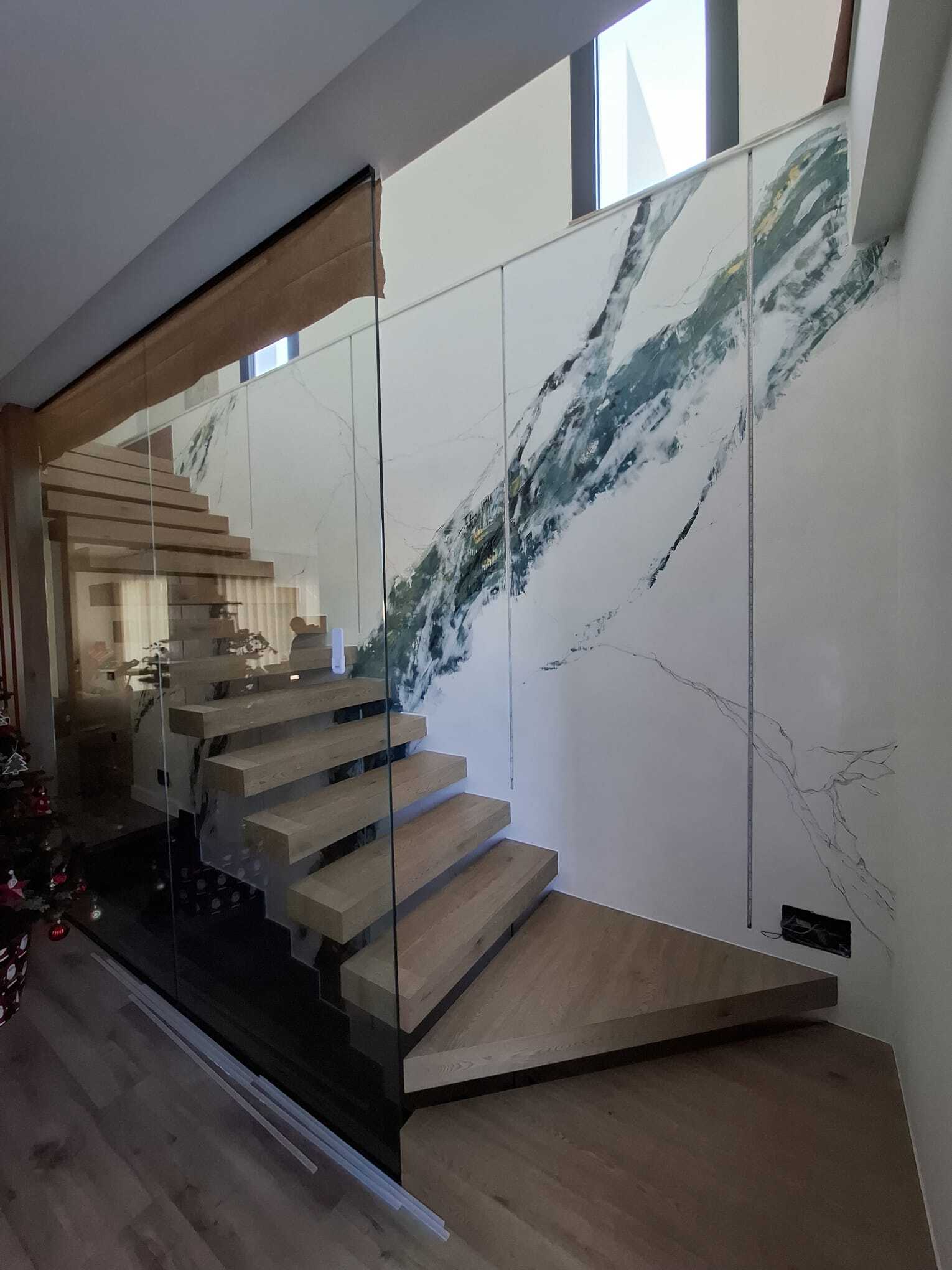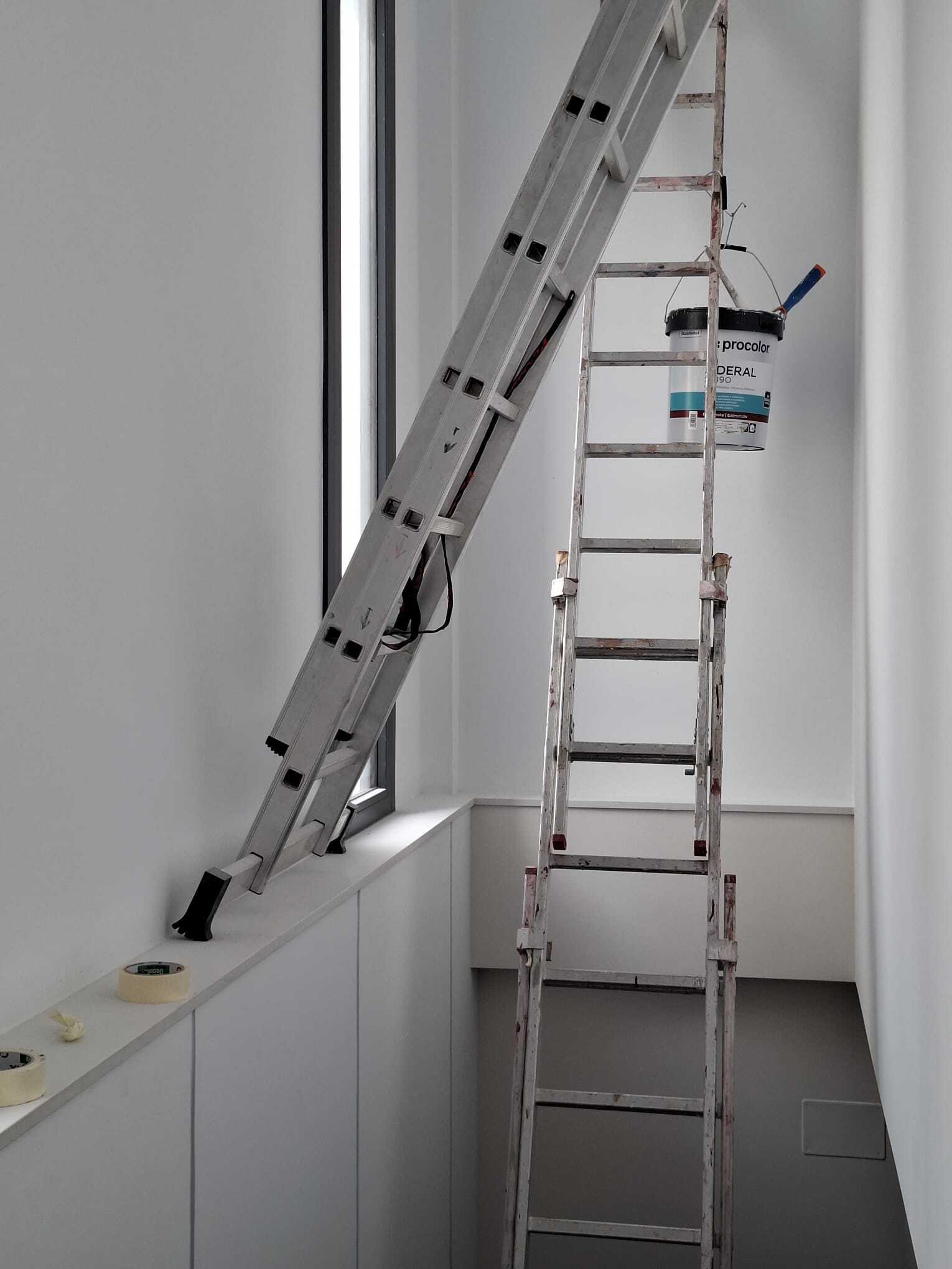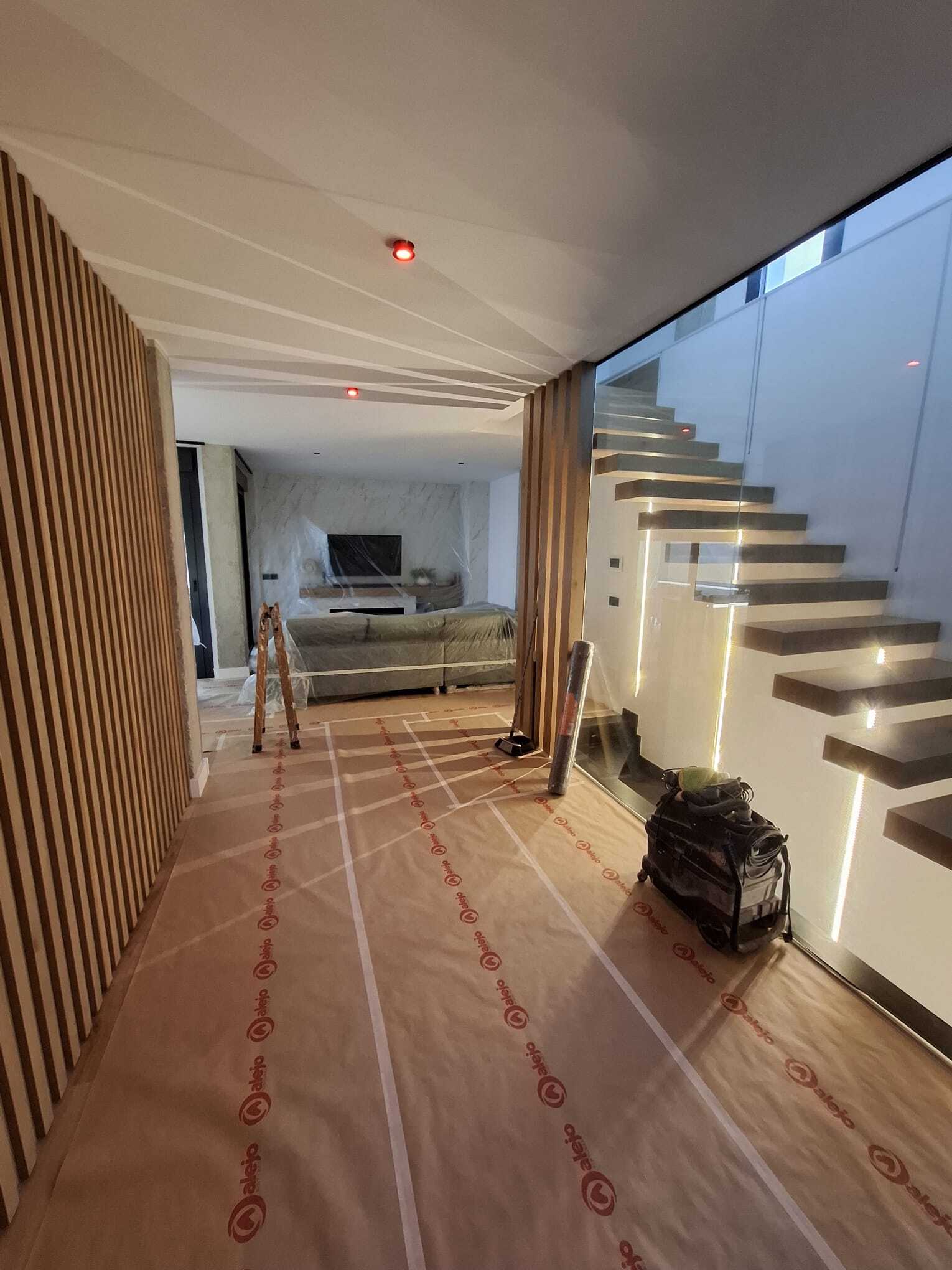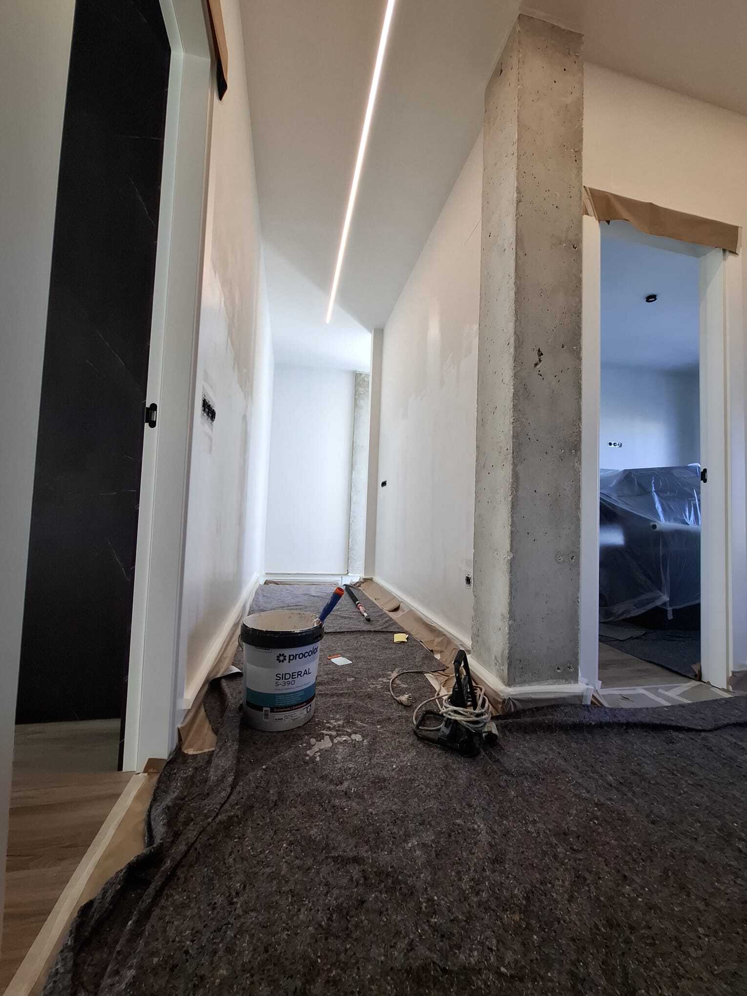 3- pintura completa de vivienda mediante Sideral 390 de Procolor en blanco roto para todas las superficies v así resaltar las diferentes decoraciones como Estucco veneciano marmoleado en escalera además de limpieza y aplicación de tratamiento hidrofugo en hormigón visto.